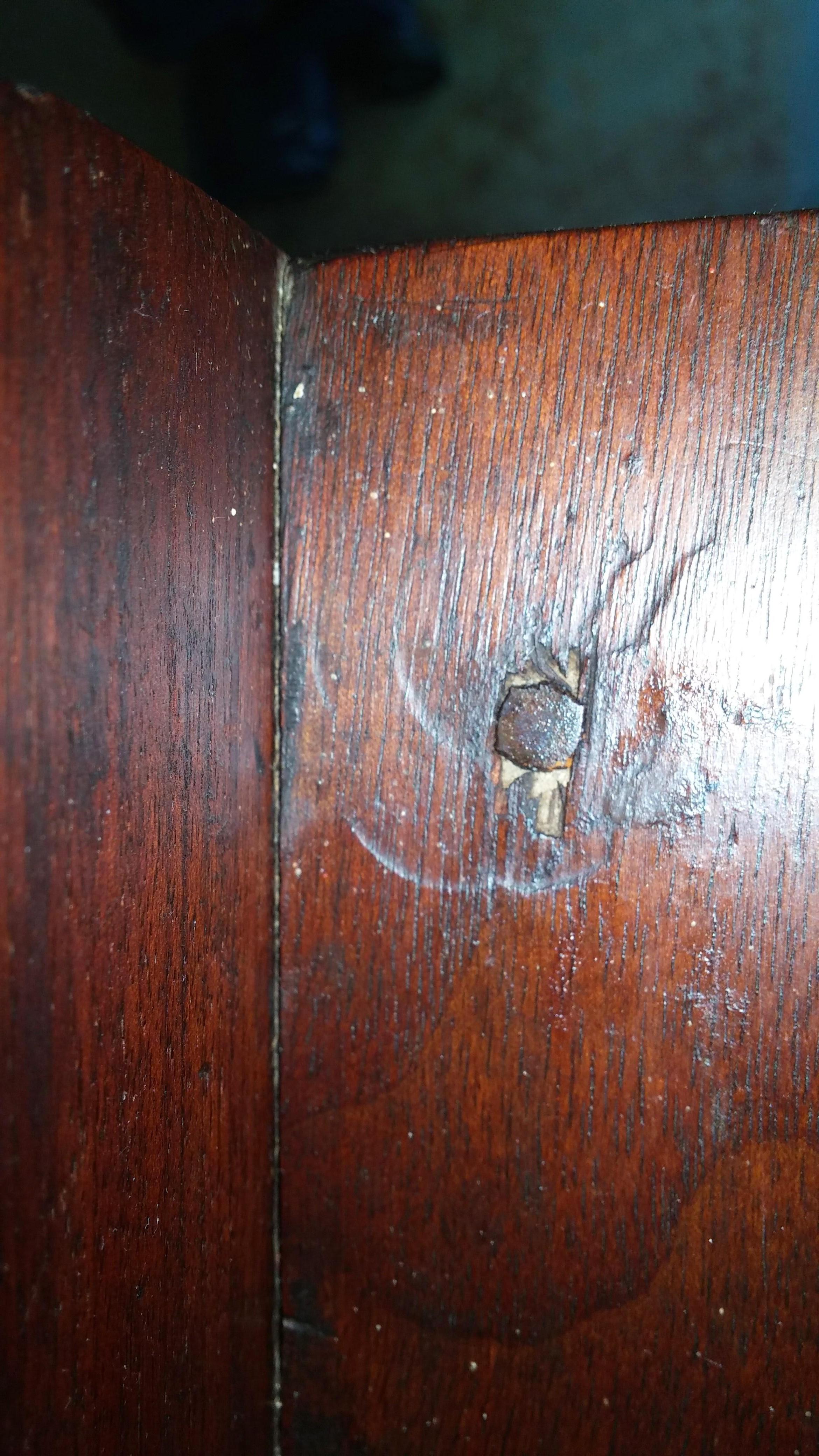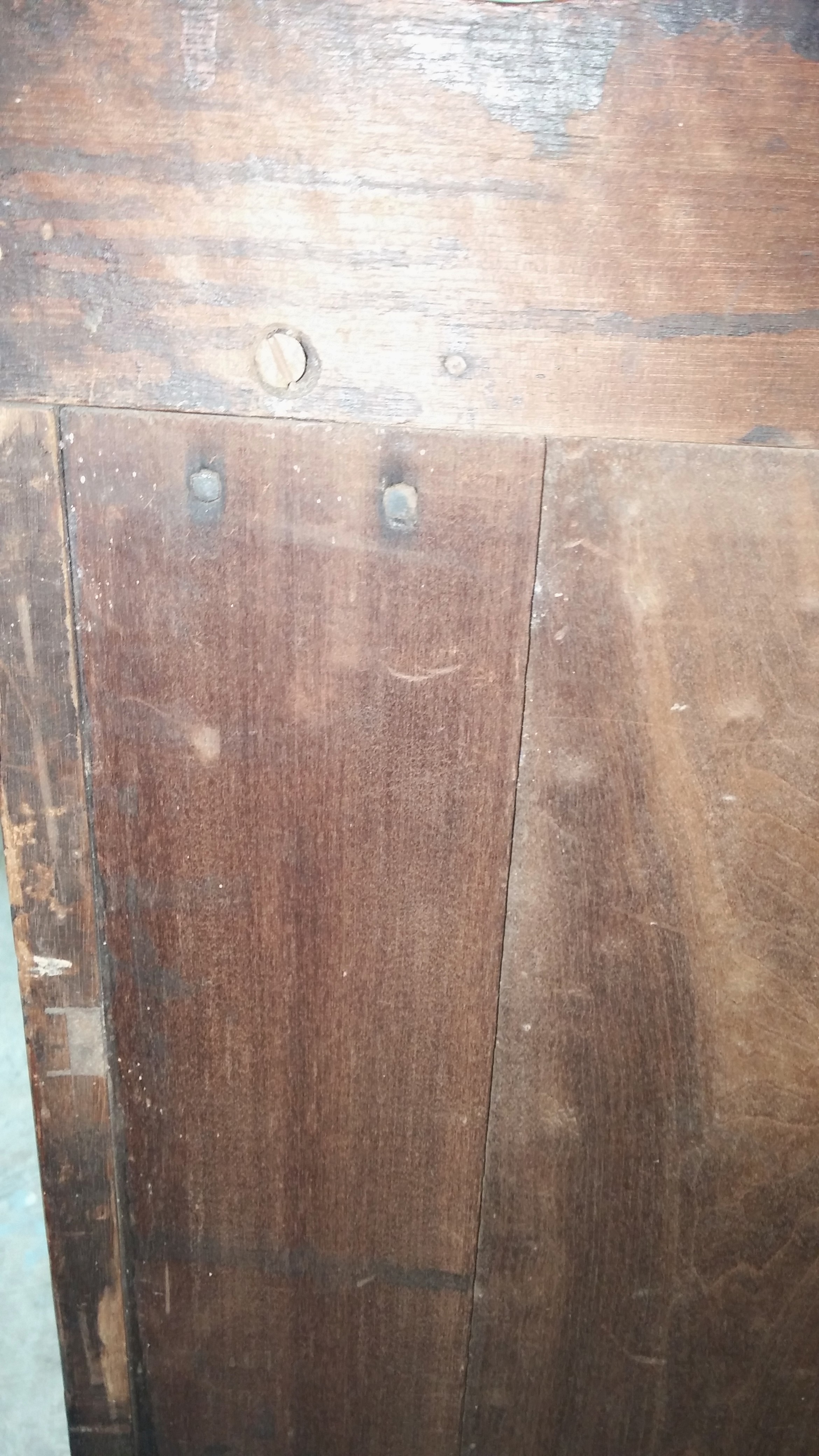 Appears to be made by hand as the dovetailing is sparse and not even. There are square nails and nick marks around them. I do not see any circular marks as if cut by a circular saw. Most of the handles were broken off but were secured with wood screws. Other than that, I have no more information. There are no stamps or marks present.