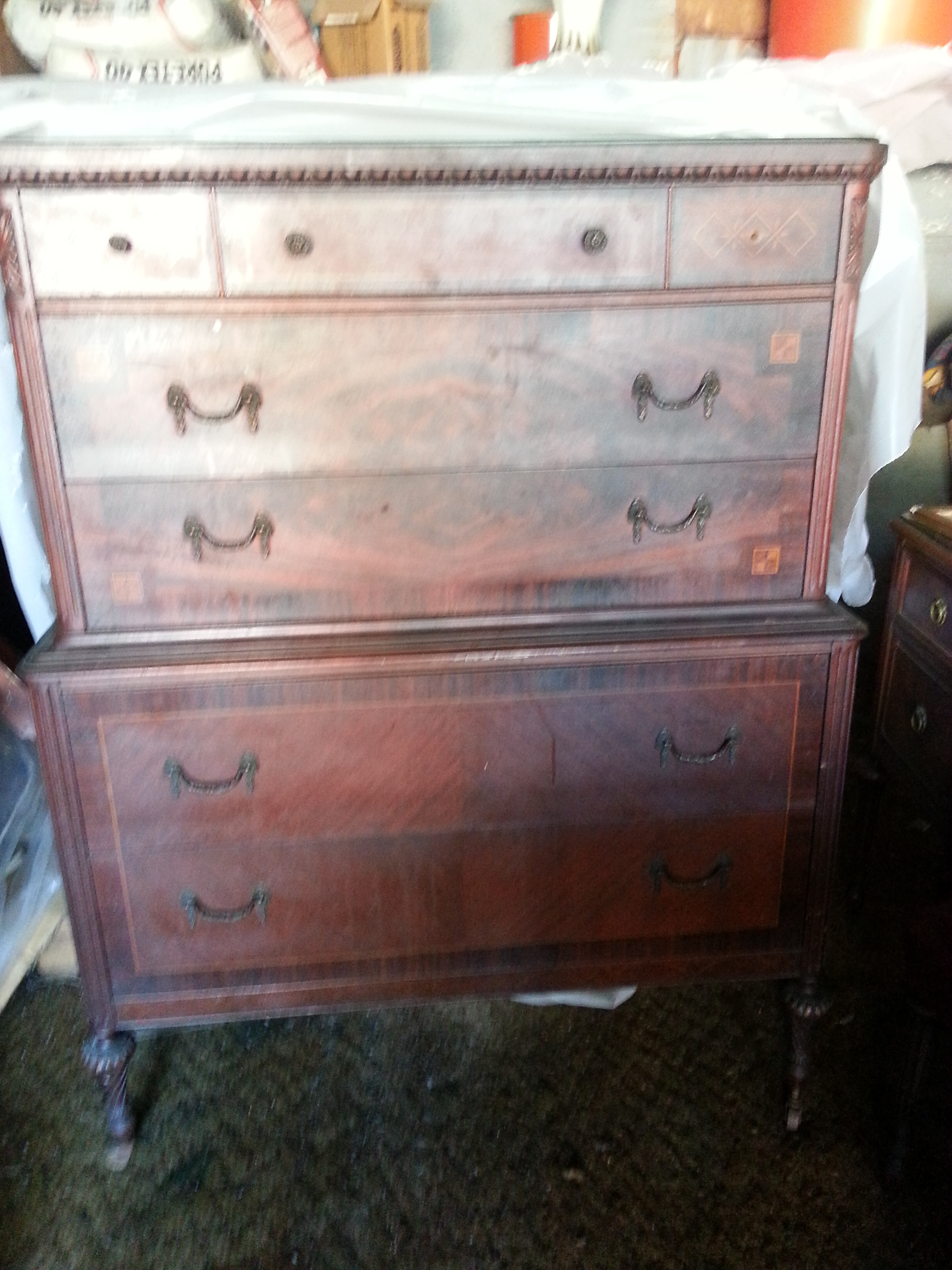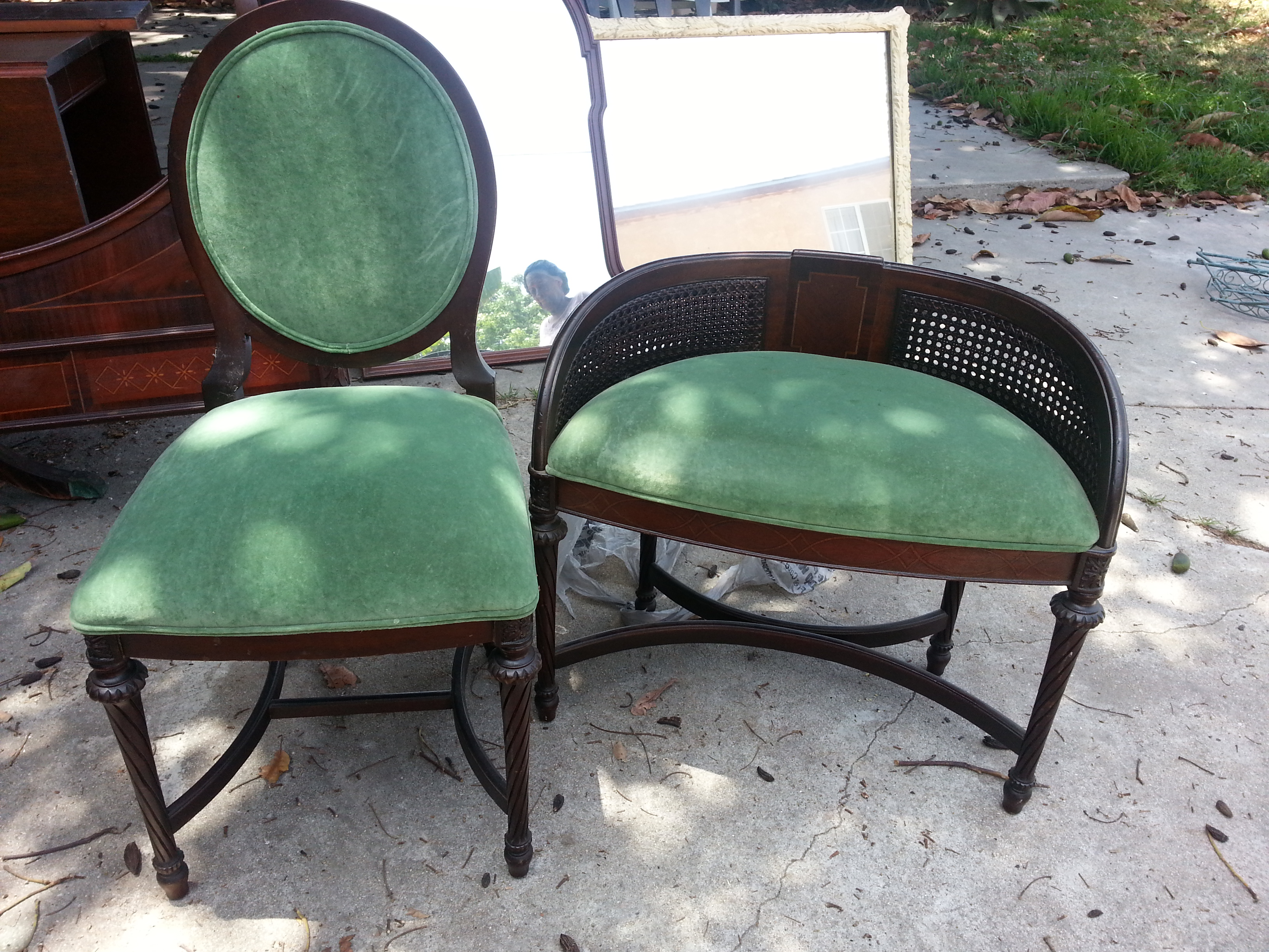 antique chest of drawers with matching vanity and chair