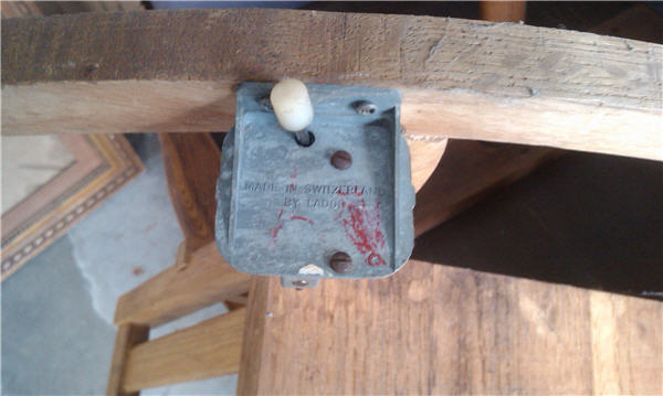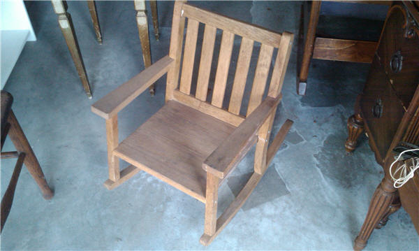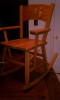 Very interesting old childs rocking chair. Overall in very good condition. Does not appear to hav emuch use. The music box attached to the bottom plays when the chair rocks pushing the button down on the music box which turns its cylinder. The music box is marked Lador Switzerland. Would be interested to find out how old it is and how much it might be worth.