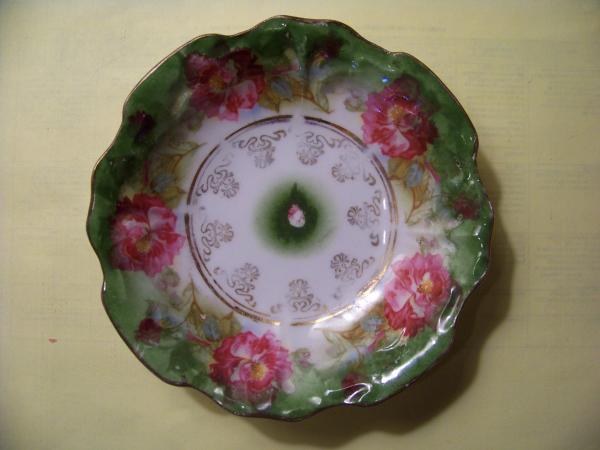 Believe this to be a Berry Bowl Flower pattern made of china with what looks like gold decorations and gold edges