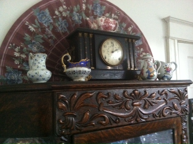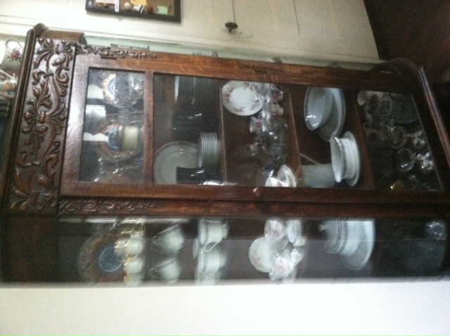 Wooden antique china cabinet with curved glass.  I don't have much information as this was passed down from a deceased family member.