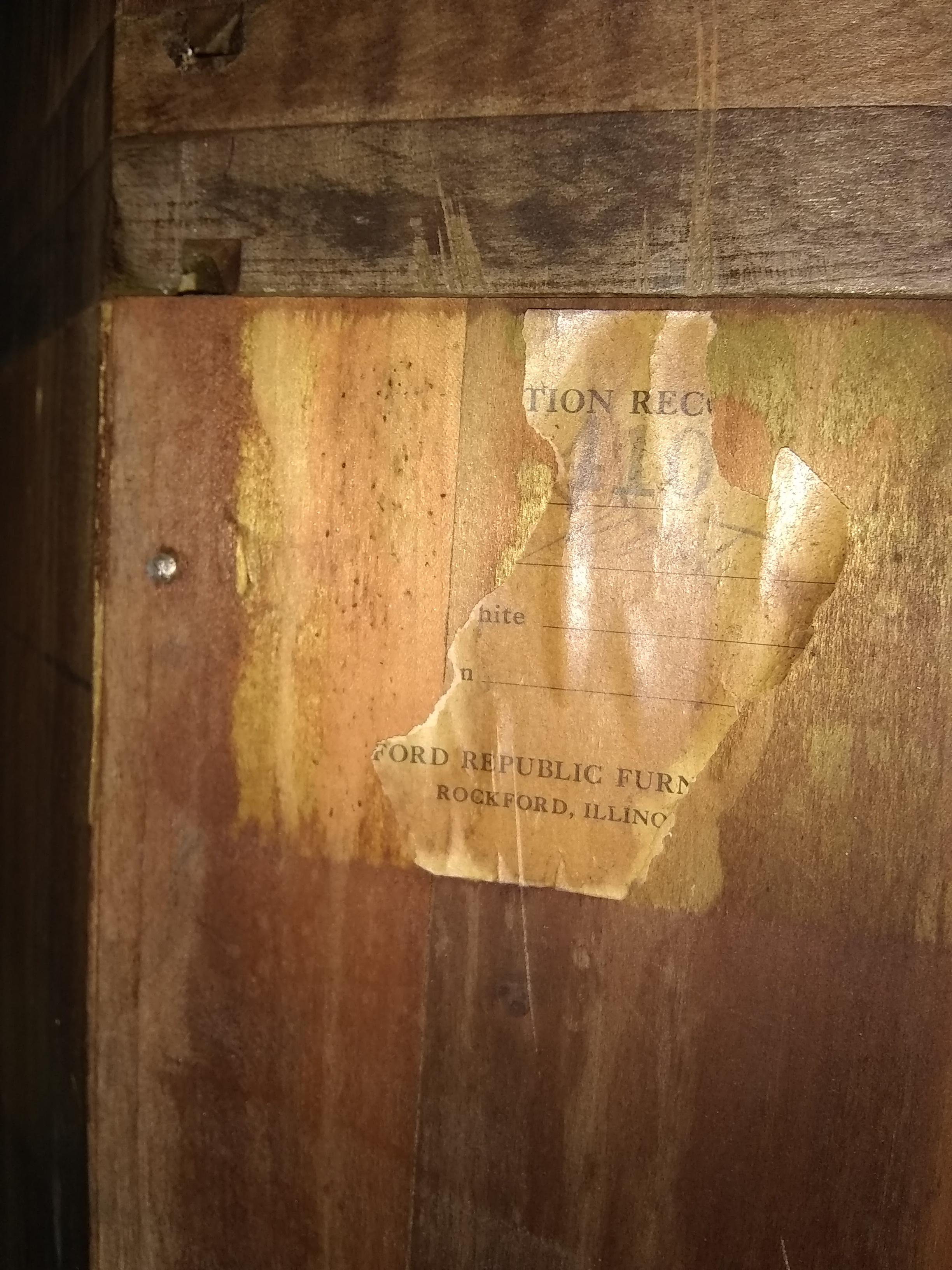 This cabinet was from my great grandmother. In a couple of photos, you can see that there is a partial old label. All I could make out is "Ford Republic Furniture" and the numbers 410.