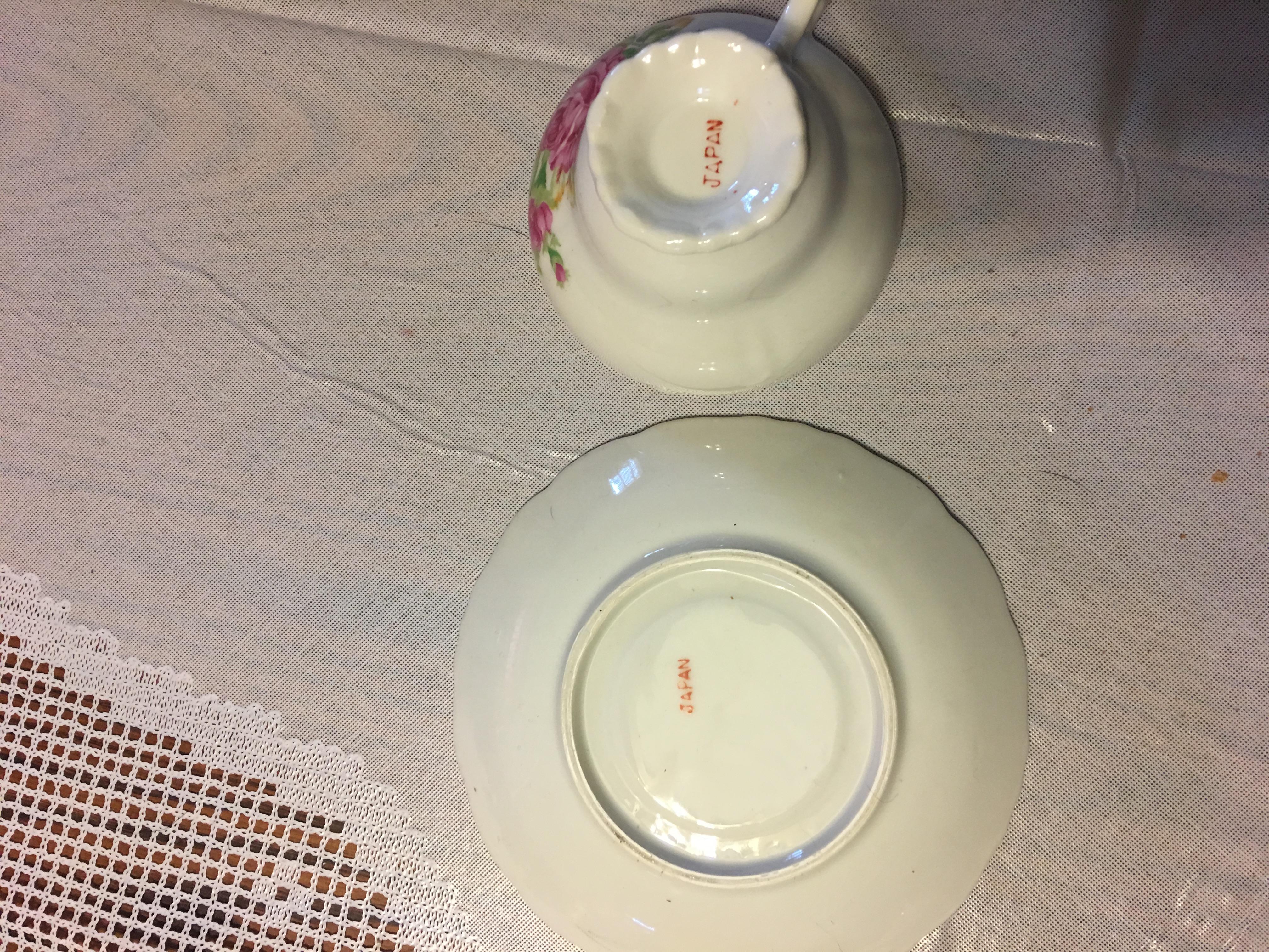 A set of china tea cups and saucers marked japan