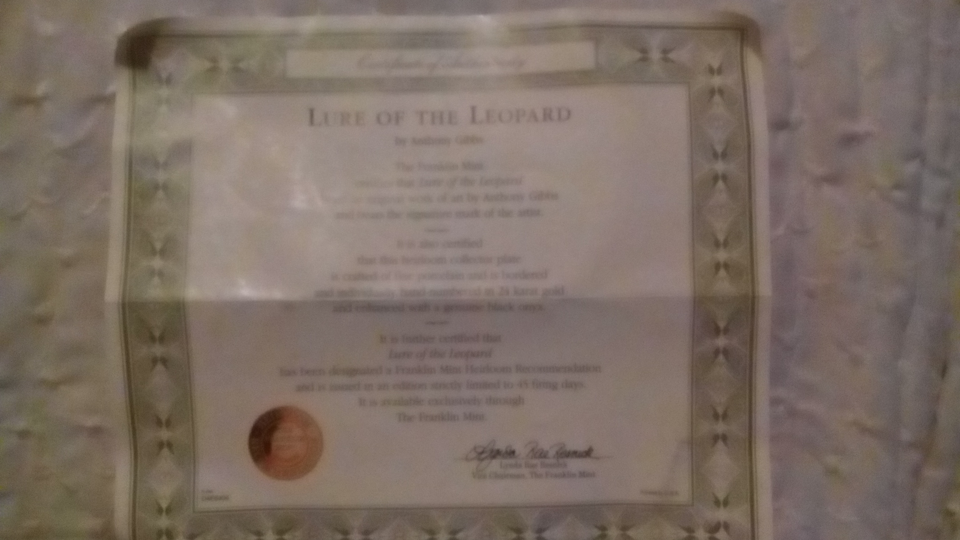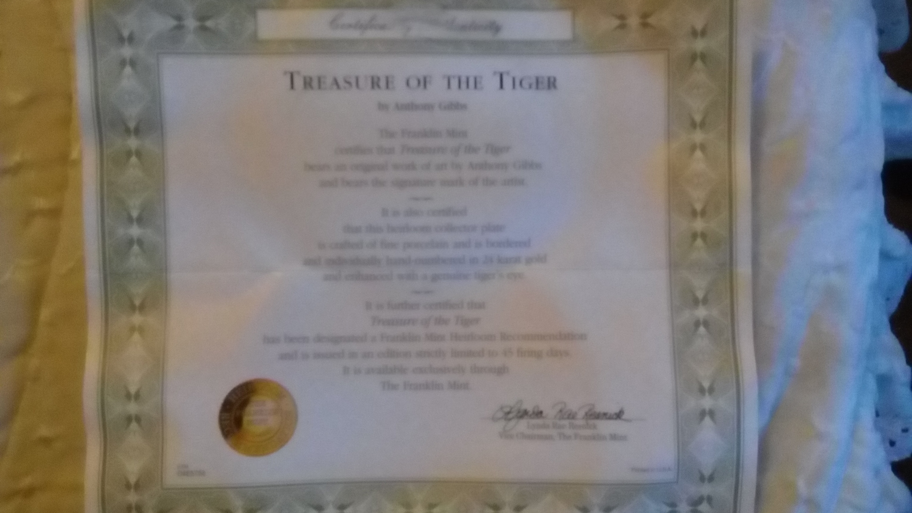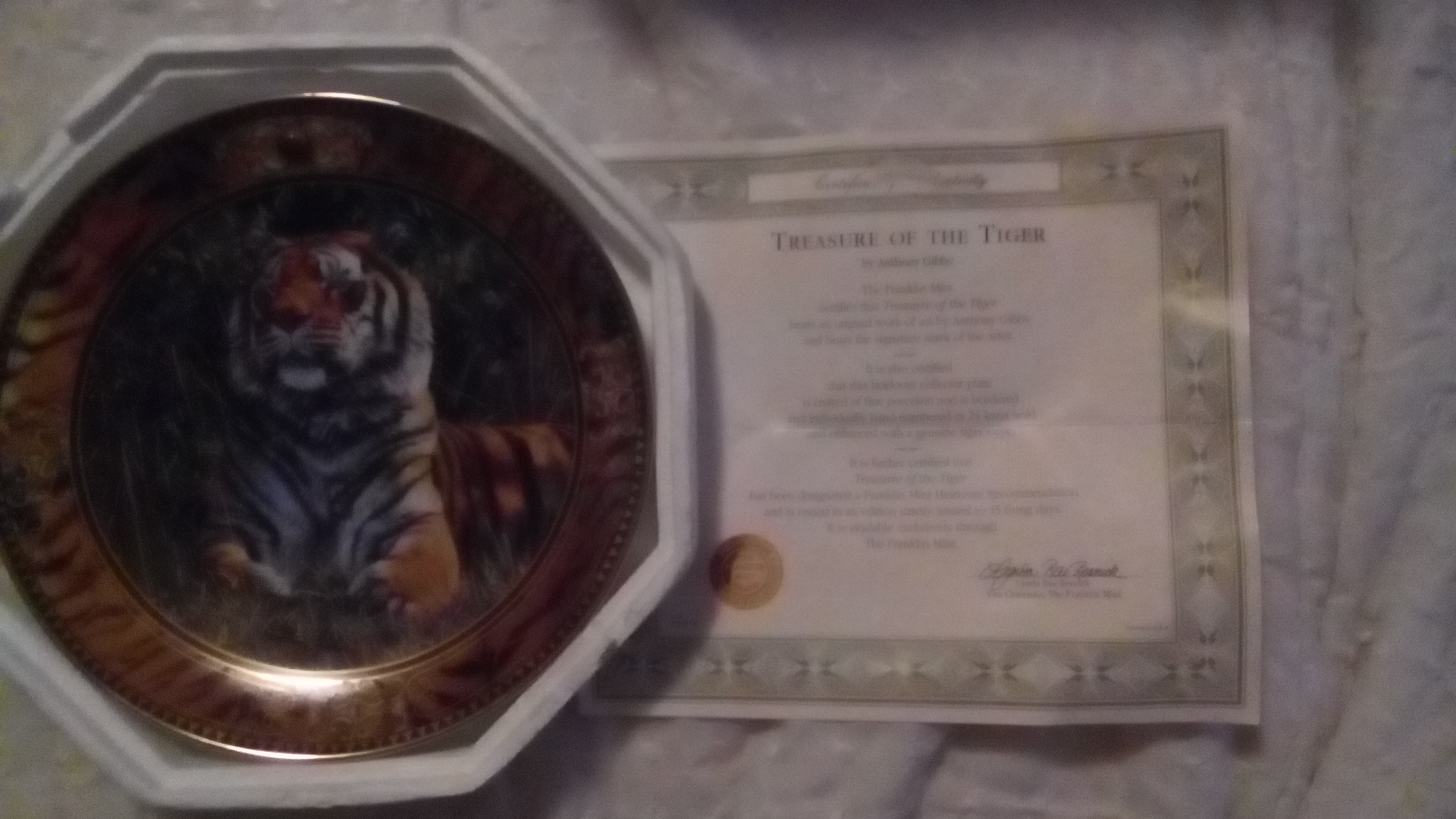 These plates have 24k gold going around them and they have different pictures of tigers and panthers. They have the certificate of authenticity.