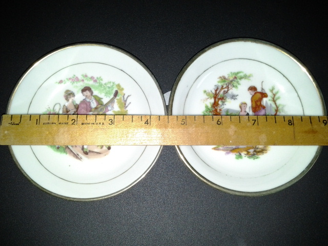 Two China Tea Saucers. About 4.5 inch diamater each. Date that it was orginally made is unknown, but were aqquired over 30 years ago.