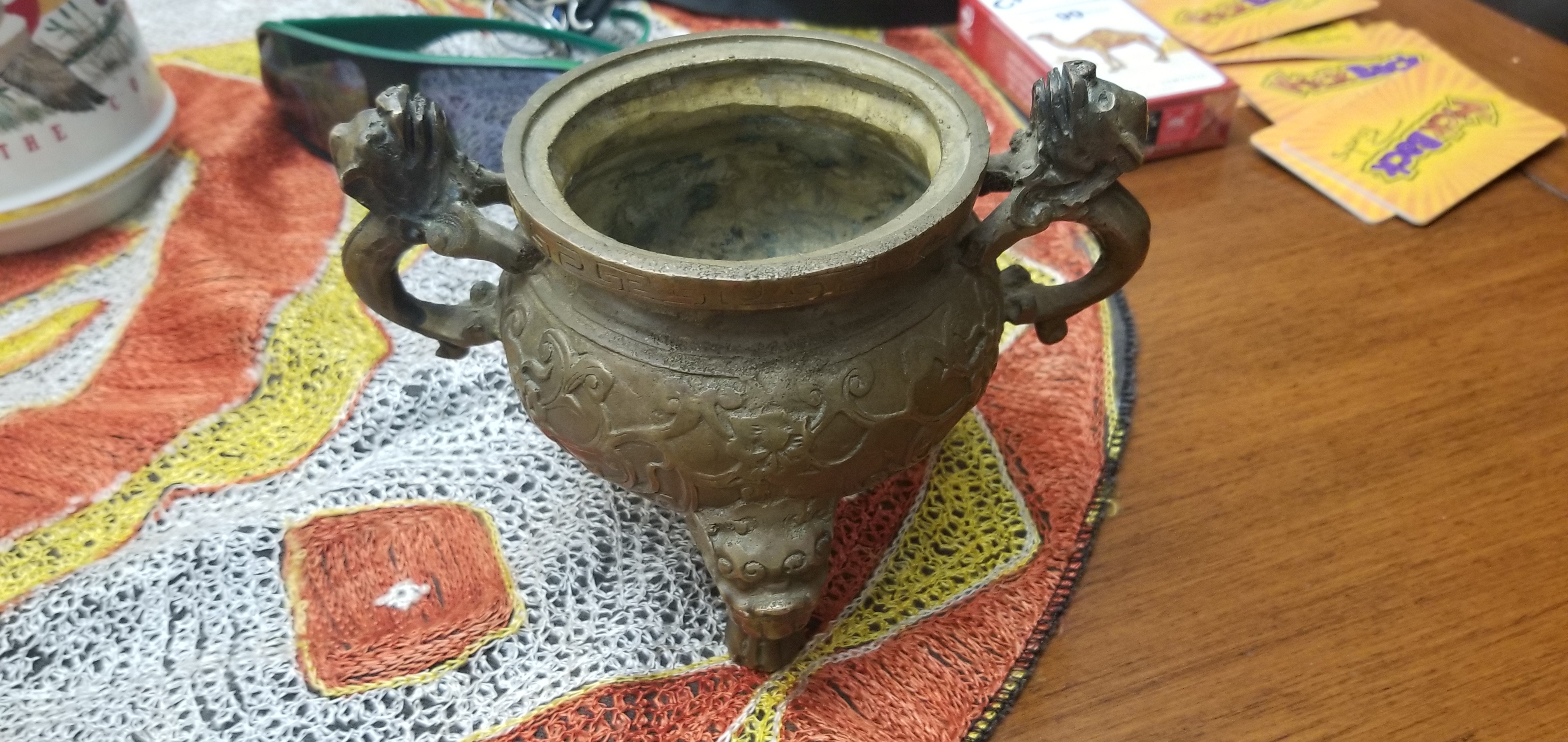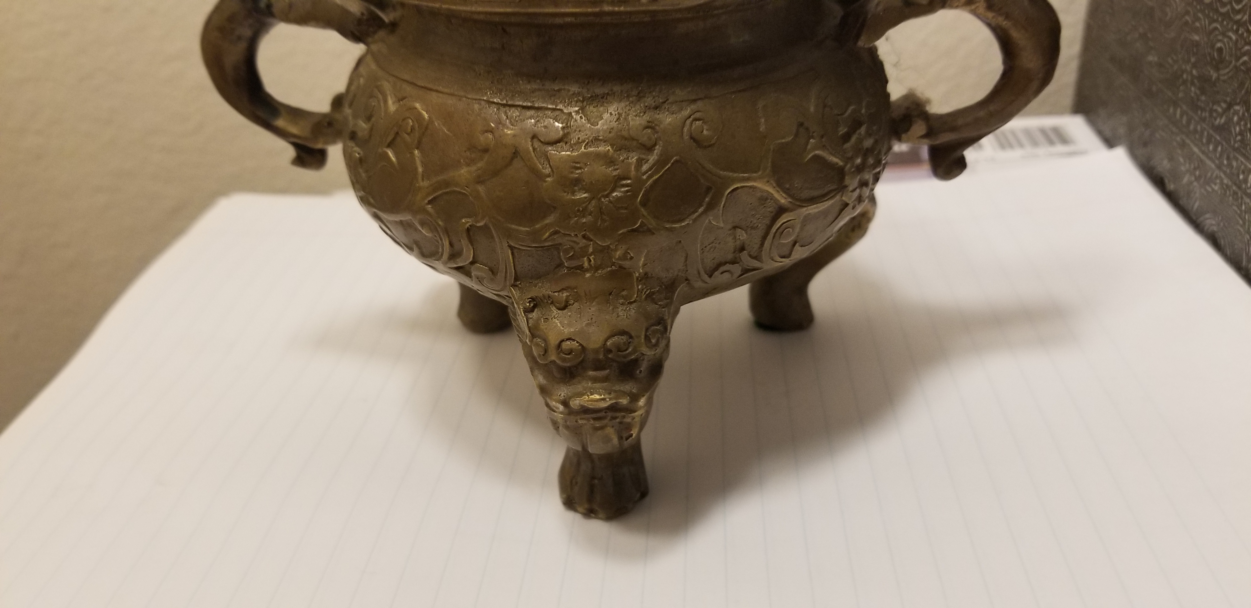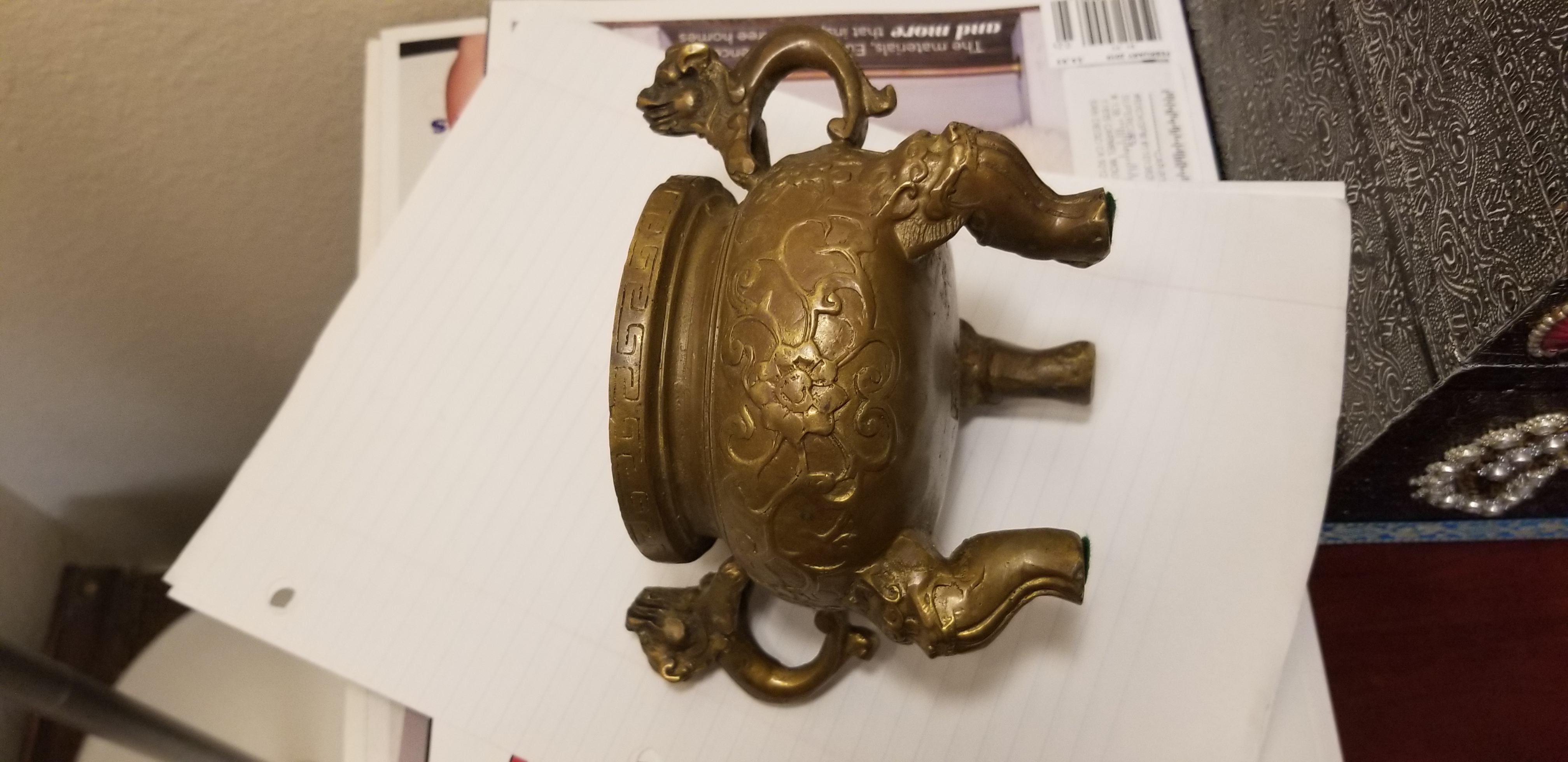 Hi, I am trying to figure more about this piece I really don't CD know anything more than it is a Chinese Brass cast Censer. I do not know what the markings mean and am also trying to figure out the era's well. Thanks