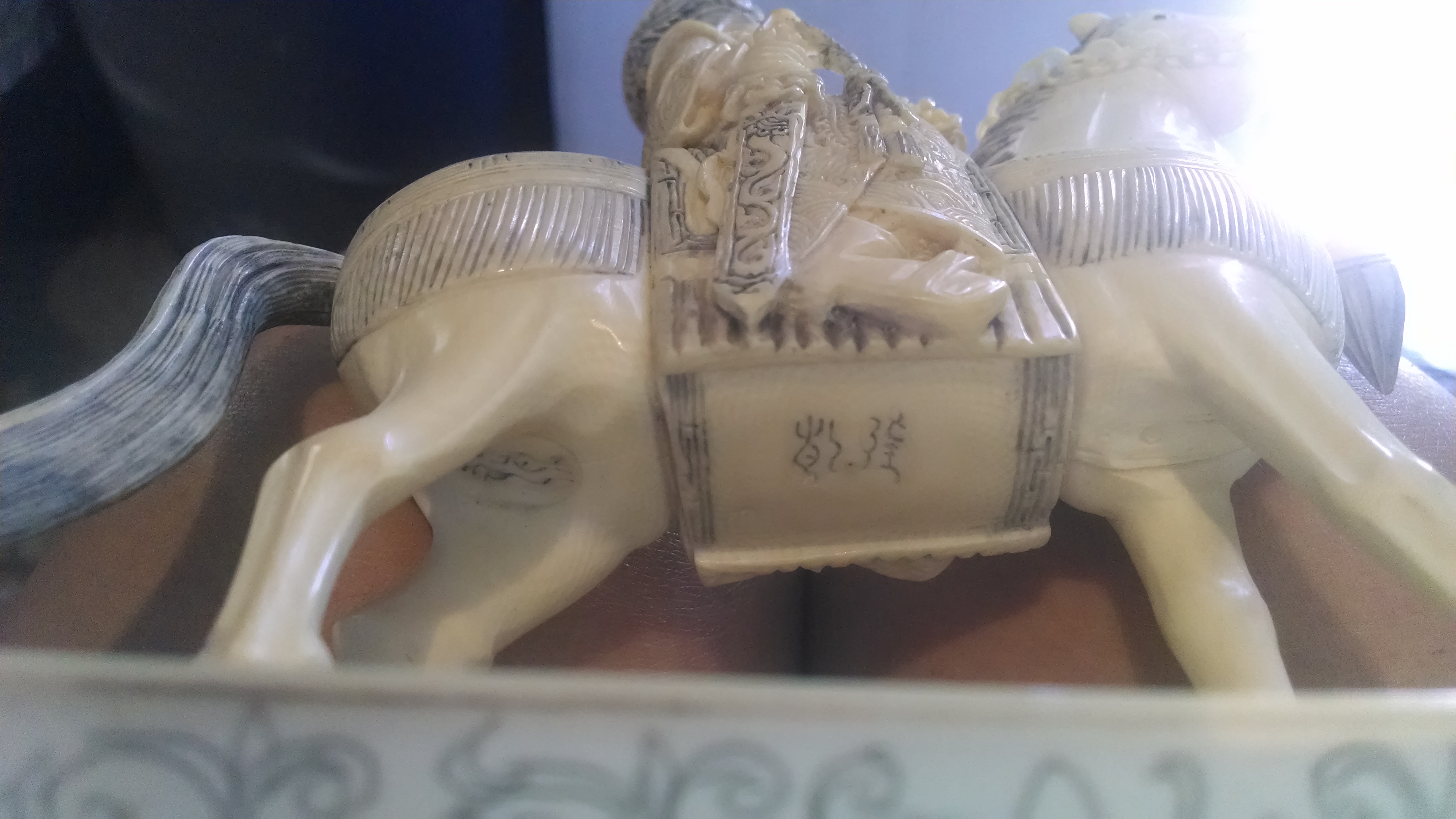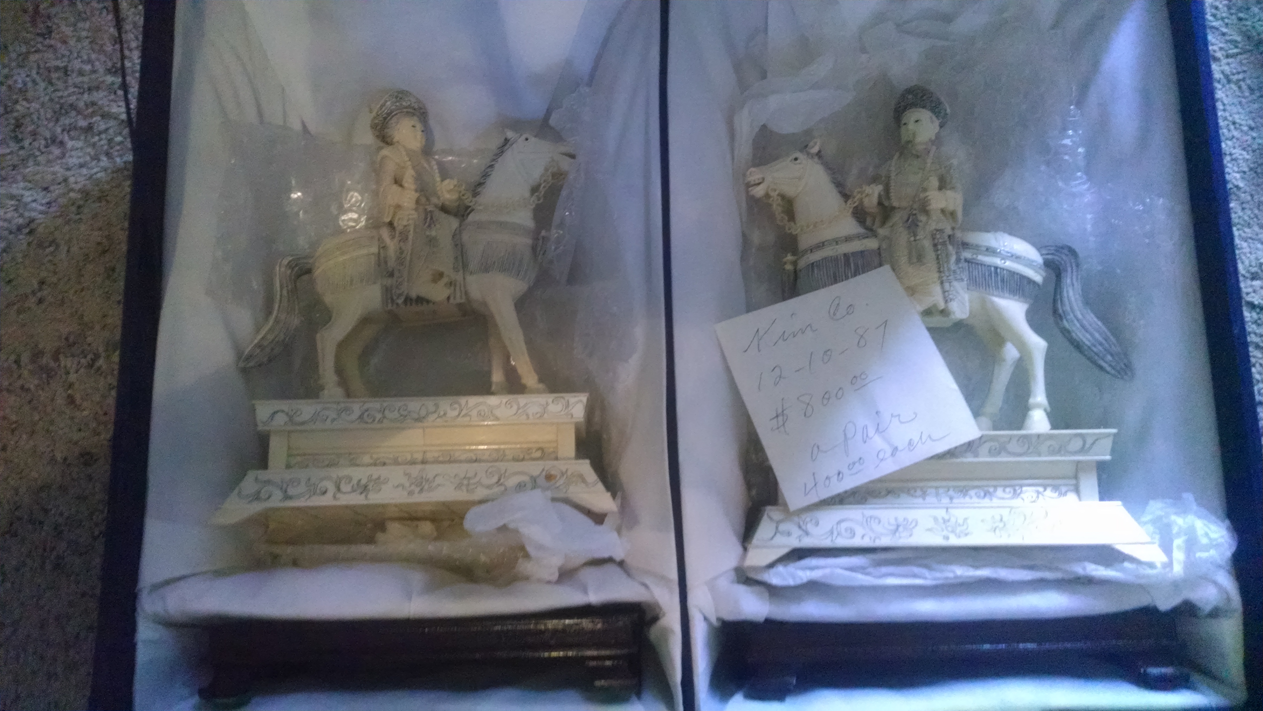 Ifound a piece of paper inside saying KIM CO BOUGHT IN 1997 $800. PAIR. CHINESE SCROLL WRIGHTING ON BOTTOM . MAYBE CARVED FROM BONE