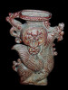 This antique Chinese vase looks very old. It is made of some sort of ceramic pottery (earthenware, stoneware, some sort of ceramic clay, etc..). Unfortunately someone used this vase for a lamp or something else, and there are three holes in it. One hole on the top of the vase's lid, one hole at the bottom side, and one hole in the bottom of vase right through some of the Chinese markings. Other than that, this vase is in very good condition. And the detail on it is amazing. It was definitely hand painted, and all of the art on it was done one dot at a time, and you can feel each dot. I'm not sure what this type of art is called. It also has several blue and red flowers on it done the same way. I did a little research, and the top right Chinese letter on the marking represents either the Ming or Qing Dynasty. Again, being this detailed, with millions of bumps or dots on it for the artwork, it was must have taken a long time to make, and I would think it was made for someone important. I was just wondering if anyone knows how old this piece is, and it's value, with and without the holes in it. It's a very beautiful ceramic vase, and I will be happy either keeping it or selling it. Please let me know if anyone has any info on this. Thank you. I tried to add pics and even resized them on here but it won't allow me to add any. So please click on this link to view pics I have of this vase.