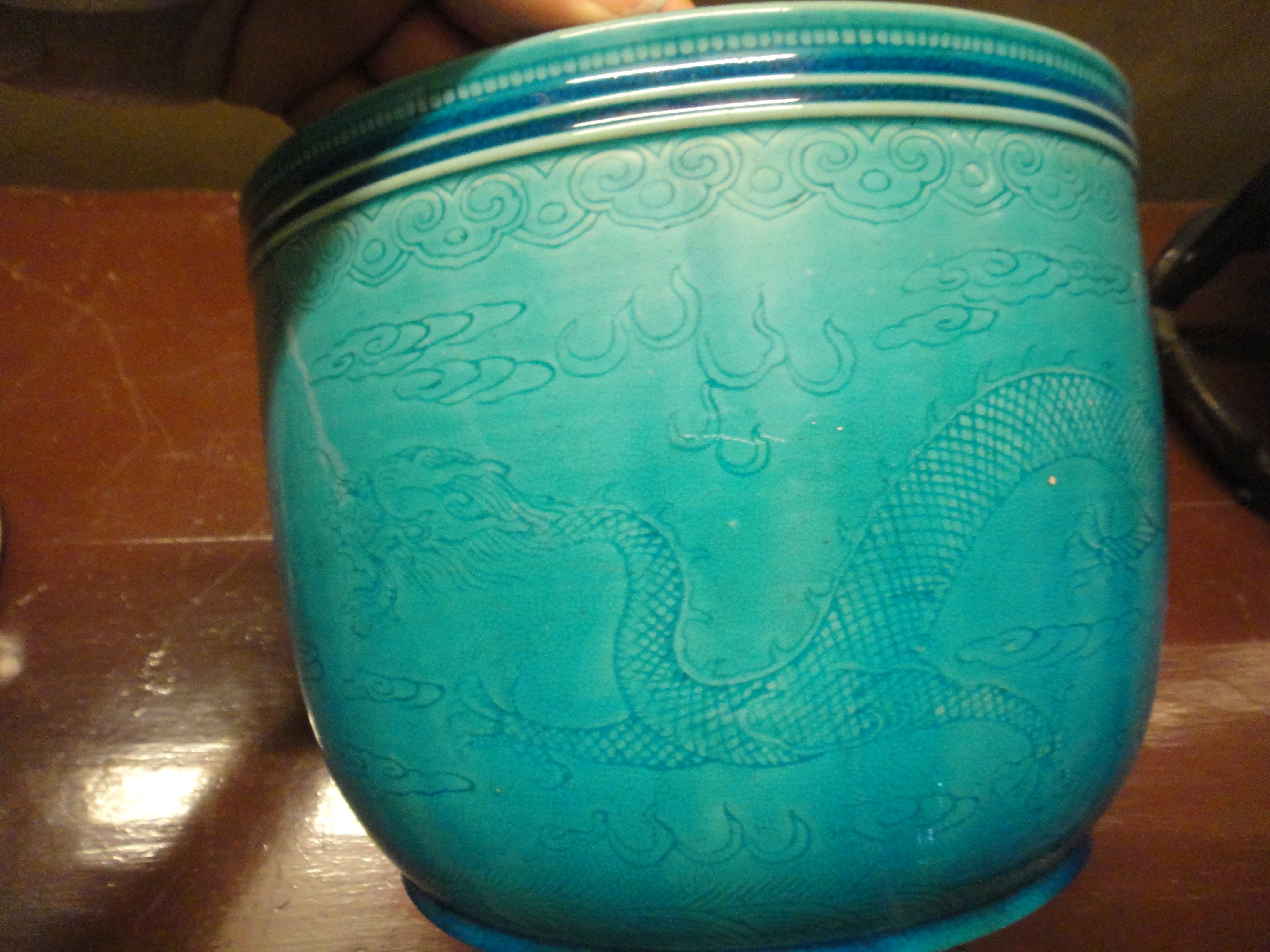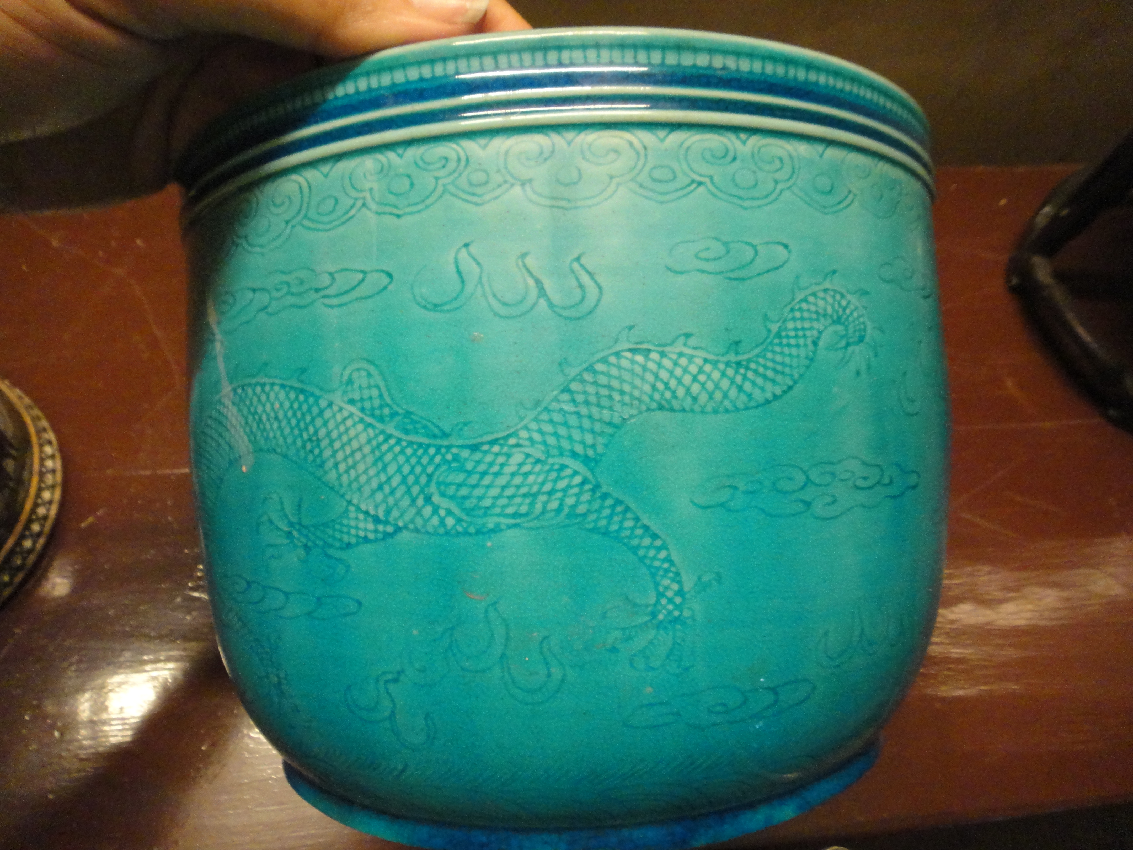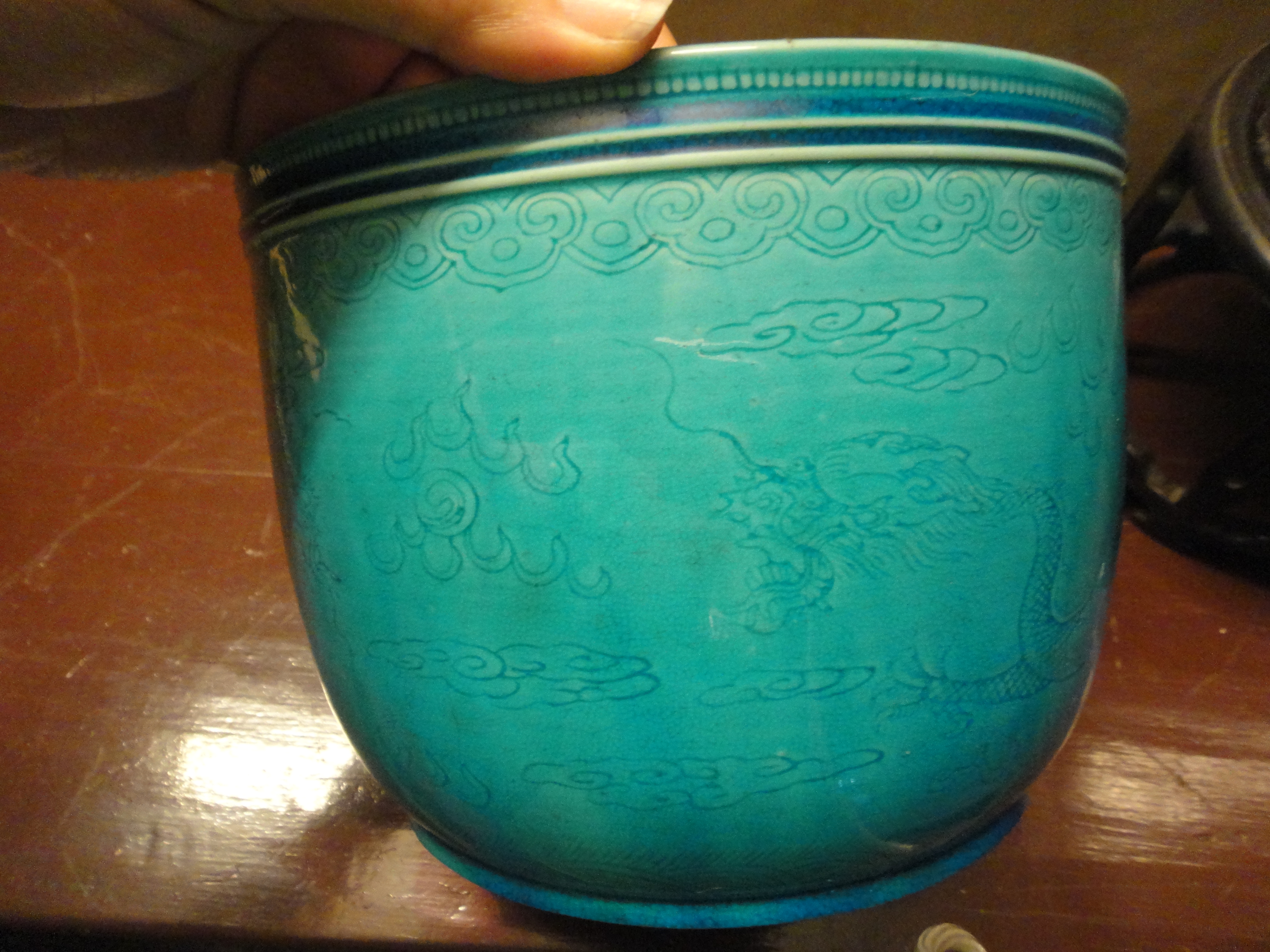 Contemporary from China. Your photo with the markings is upside down! Decor: Dragon in the clouds.