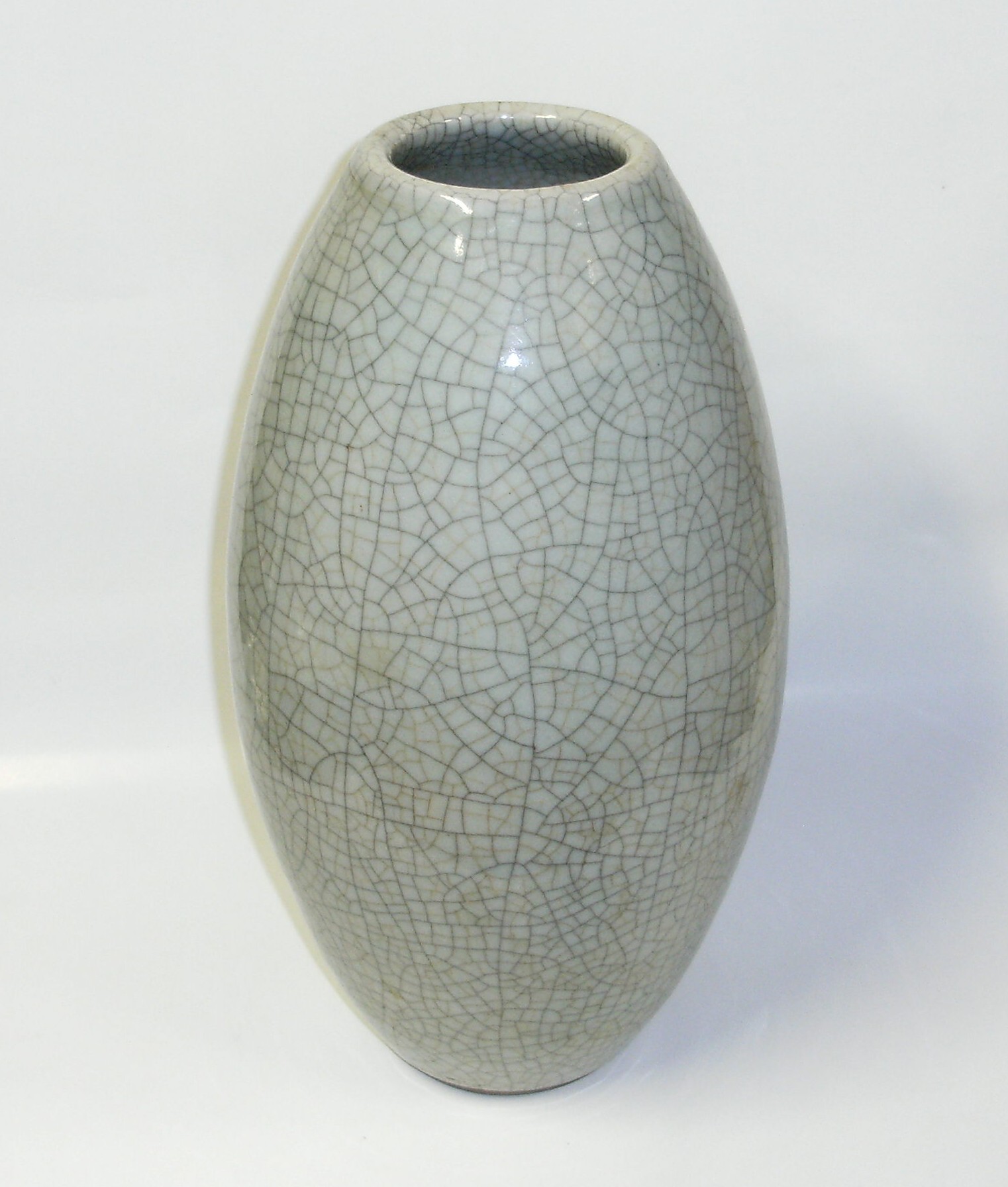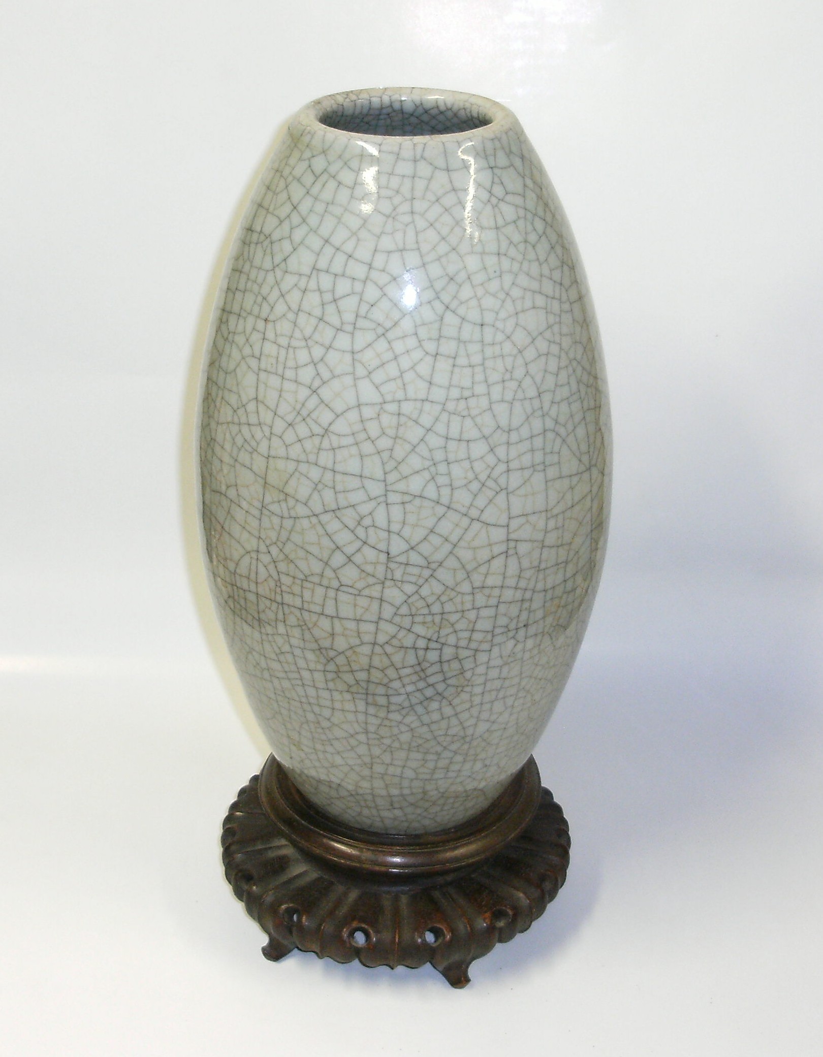 My grandfather was in the U.S. Navy and stationed in China right after WW2. When the Communist Party took over and chased us out around 1949, my grandmother brought this vase back with her. It had been converted to a lamp, but easily dis-assembled back to just the vase. It is 14" tall with the widest diameter at about 7". It's sorta white with 2 different color crackles in the glazing, one darker and one lighter. Does anyone have any info about this type of vase and perhaps an approximate value?