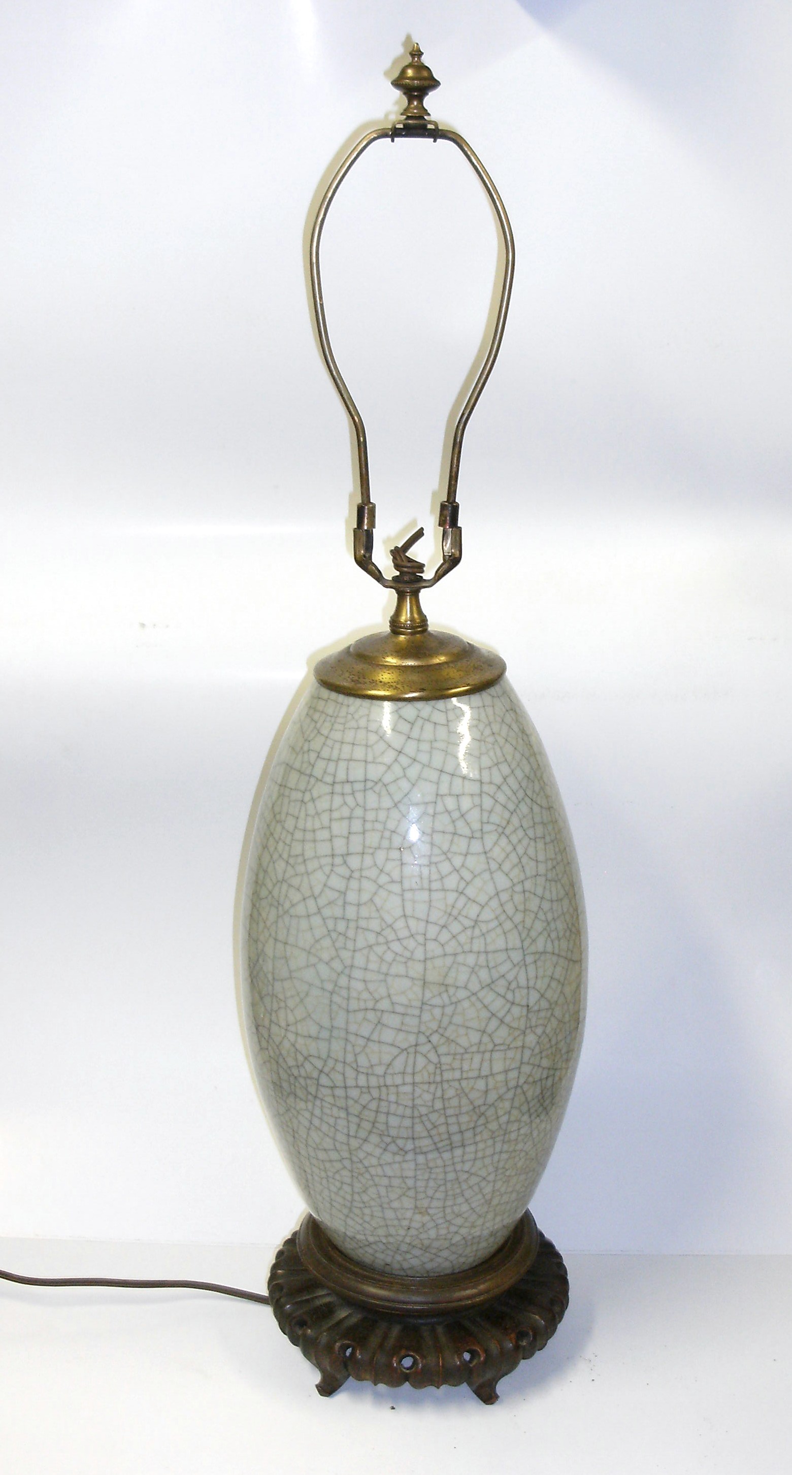 I personally enjoy the look and the feel of these crackle glazed objects. And I know reputable dealers who offer similar objects at a dear price, so I appreciate the value for such an object on several levels. The issue, for me, with an altered object like this vessel converted to a lamp, is that the section removed, when drilled may, or may not have had a mark to assist identification. A mystery here. So, NOT an instant appraisal, but a note from a collector who appreciates the object you have shown and is will to send a note of appreciation for sharing, thanks.