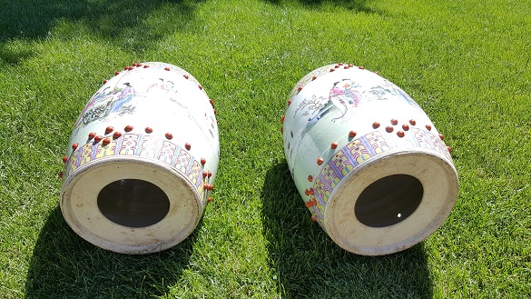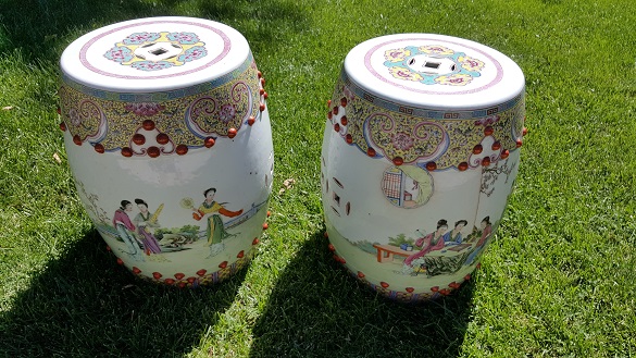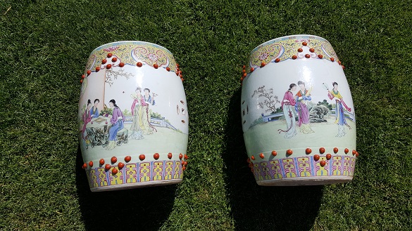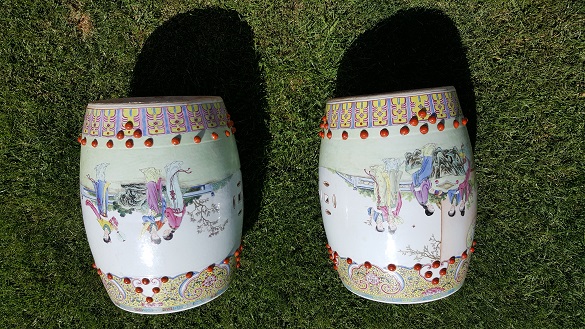 Please advise how I can determine if this pair of Famille Rose Chinese Garden Stools are antique. What is the value for the pair?  They are extremely heavy and do not have any cracks.  Thank you.