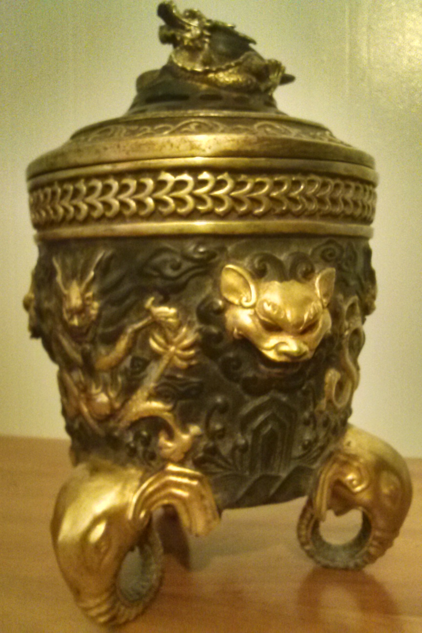 This is an antique chinese incense burner i got from a collector who lives in palm beach florida. It is approx 17 inches tall and weighs approx 15lbs. It is a very interesting piece and i would really like to know the background of a piece like this and an approx value. If any has any knowledge about this type of piece please email me at [email protected] thank you