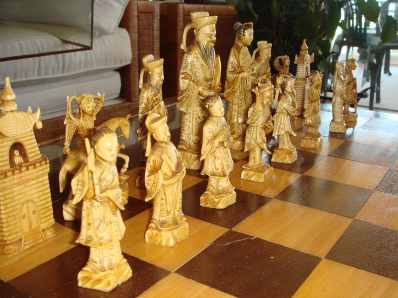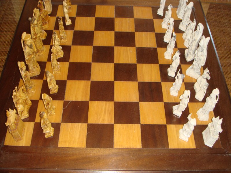 Antique chinese hand carved ivory chess set. Excellent condition. Supposedly some 200 or 300 years old. Board was made to measure recently.
