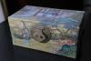 Round antique wooden container. Its is hand painted and hand made. It is stitched together. It is very old. See pictures and help identify it. My email is [email protected] What god or goddess is on the cover and flying carrying what? What country is the origin? Help