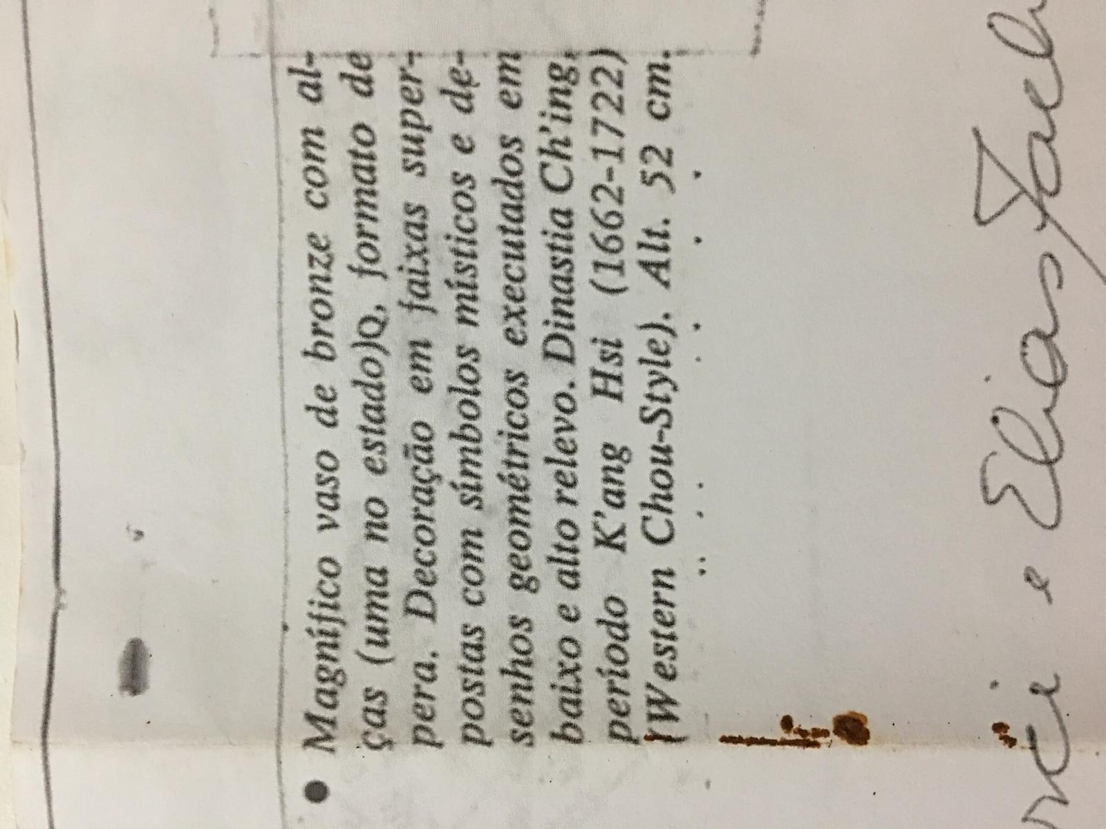 My father gifted me an antique bronze Chinese Vase from the Ch'ing Dinasty - H'ang Hsi period (1662-1722), Western Chou-style, 52 cm height. Before I have it transported all the way from Brasil, I would like to have an idea of the value of such a vase. Any help would be great!! Thank you!