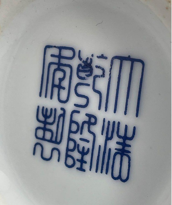 The vase appears to be made by a Chinese artisan, likely from the late 20th century, based on the signature and style. The signature on the bottom is a crucial identifier, which may correspond to a specific artist or manufacturer known for high-quality porcelain work.