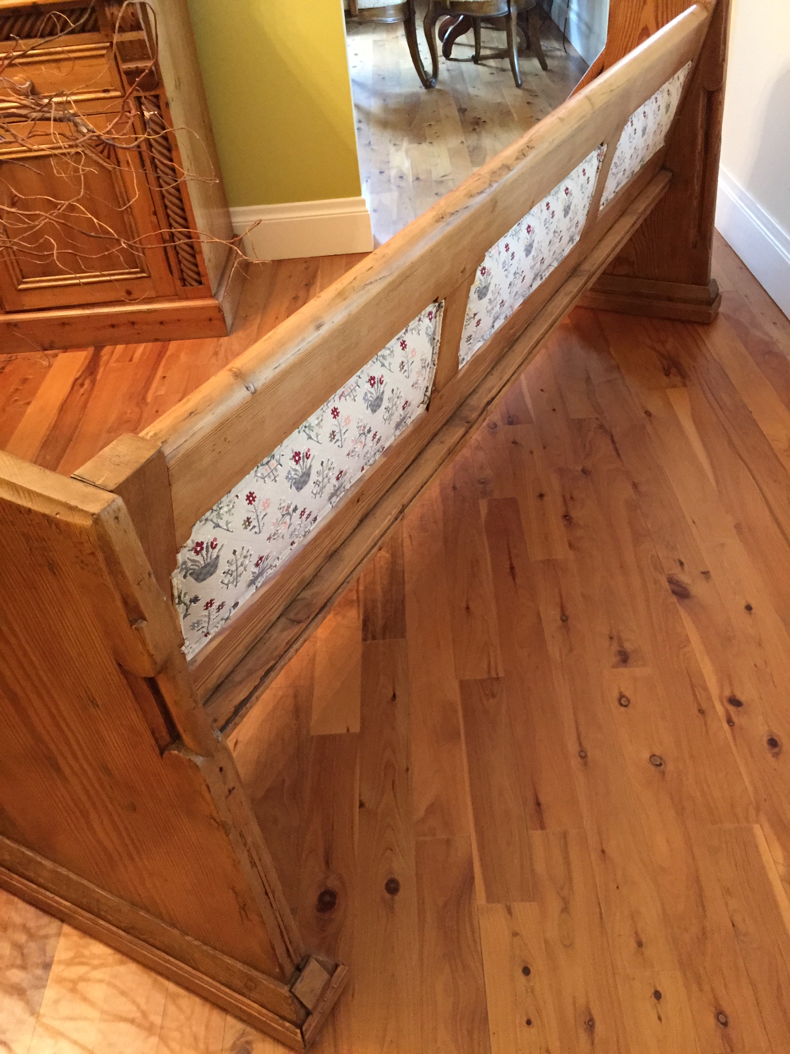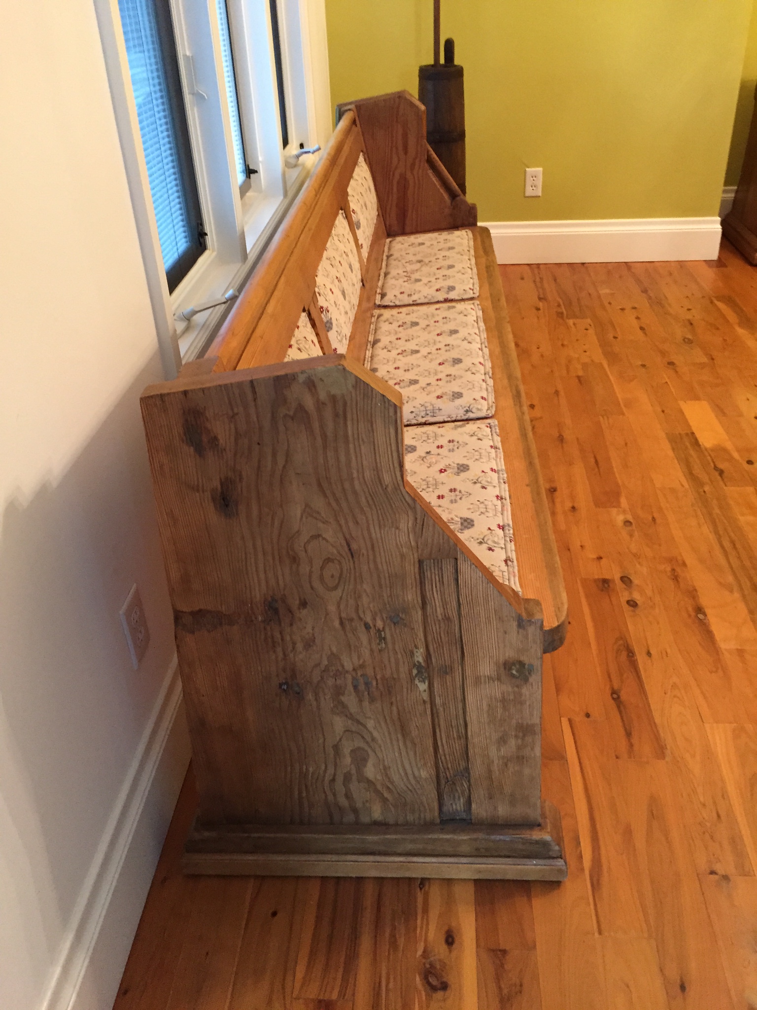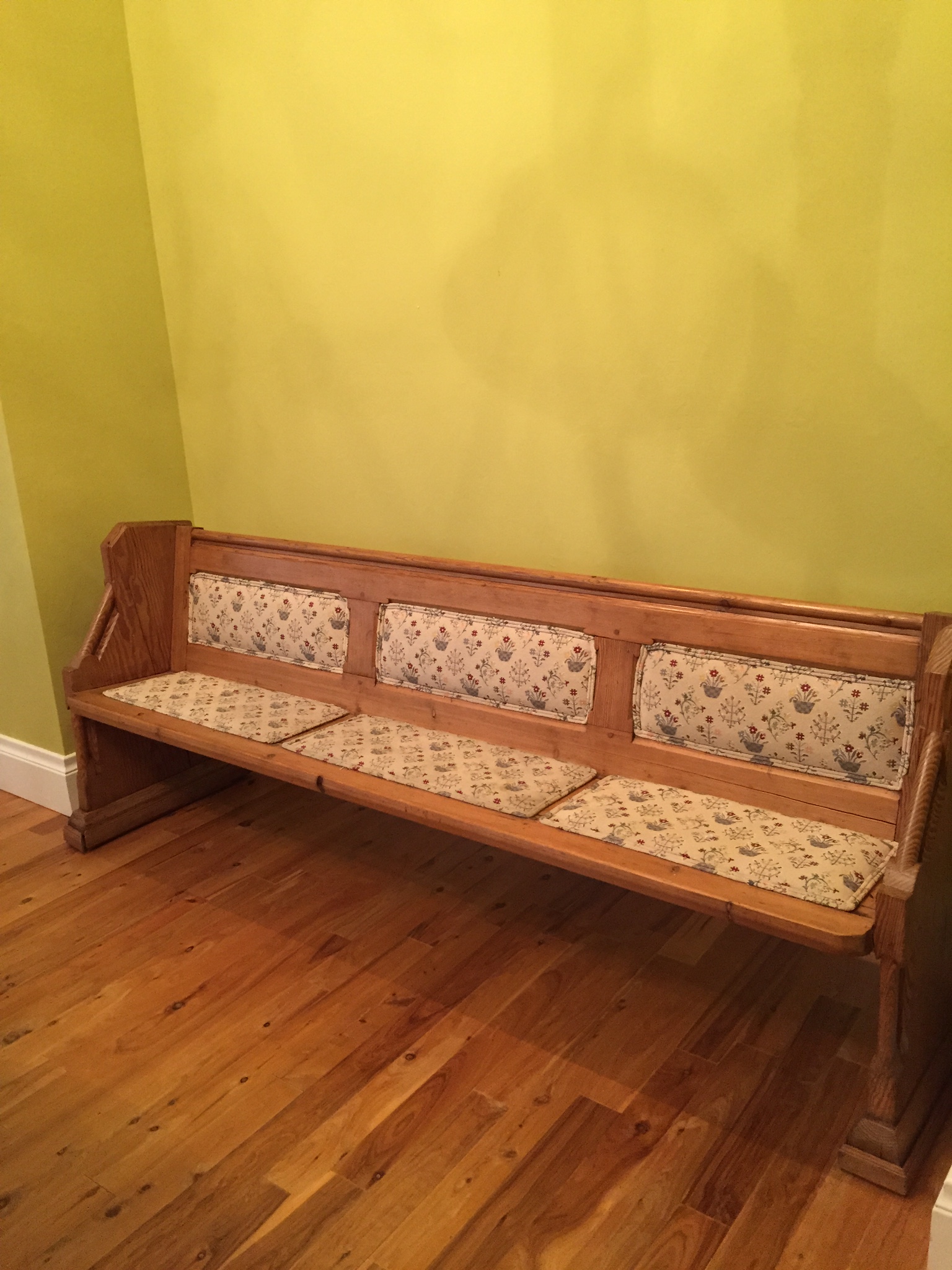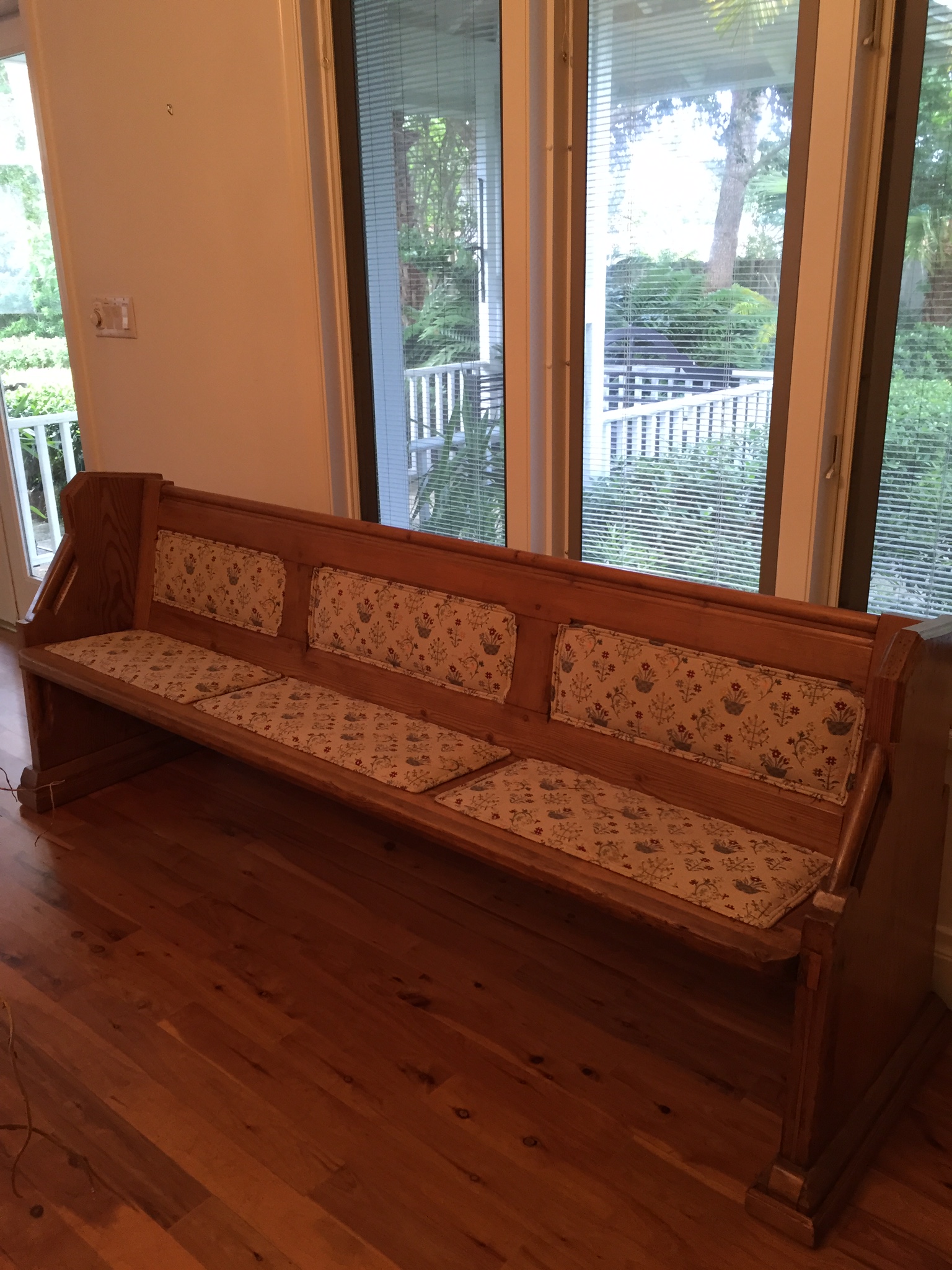 My father purchased these 2 church pews from an antique furniture store in Miami, Fl . He doesnt rember much about them. they were reupholstered some time ago. Any information would be great Thanks