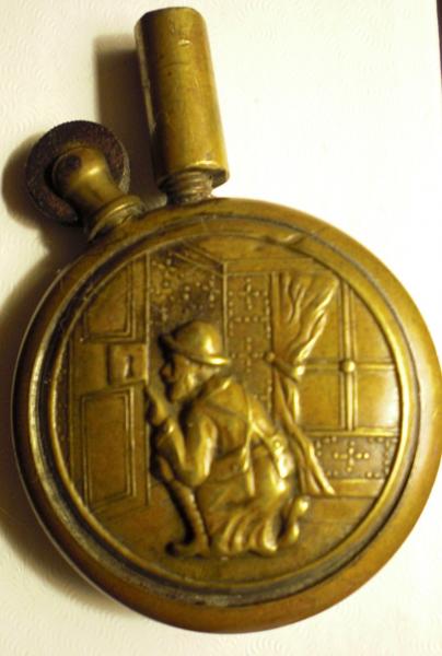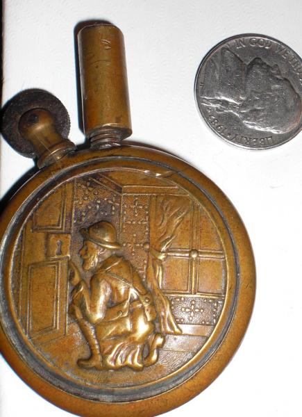 This has been passed down from my great-grandparents, it either comes from Italy or the Mediterranean area. It is made of solid copper and all of it is original besides the brass cap wick. One side has a man looking through a keyhole, and the other side is of a naked woman. Is this a piece that is worth something significant?