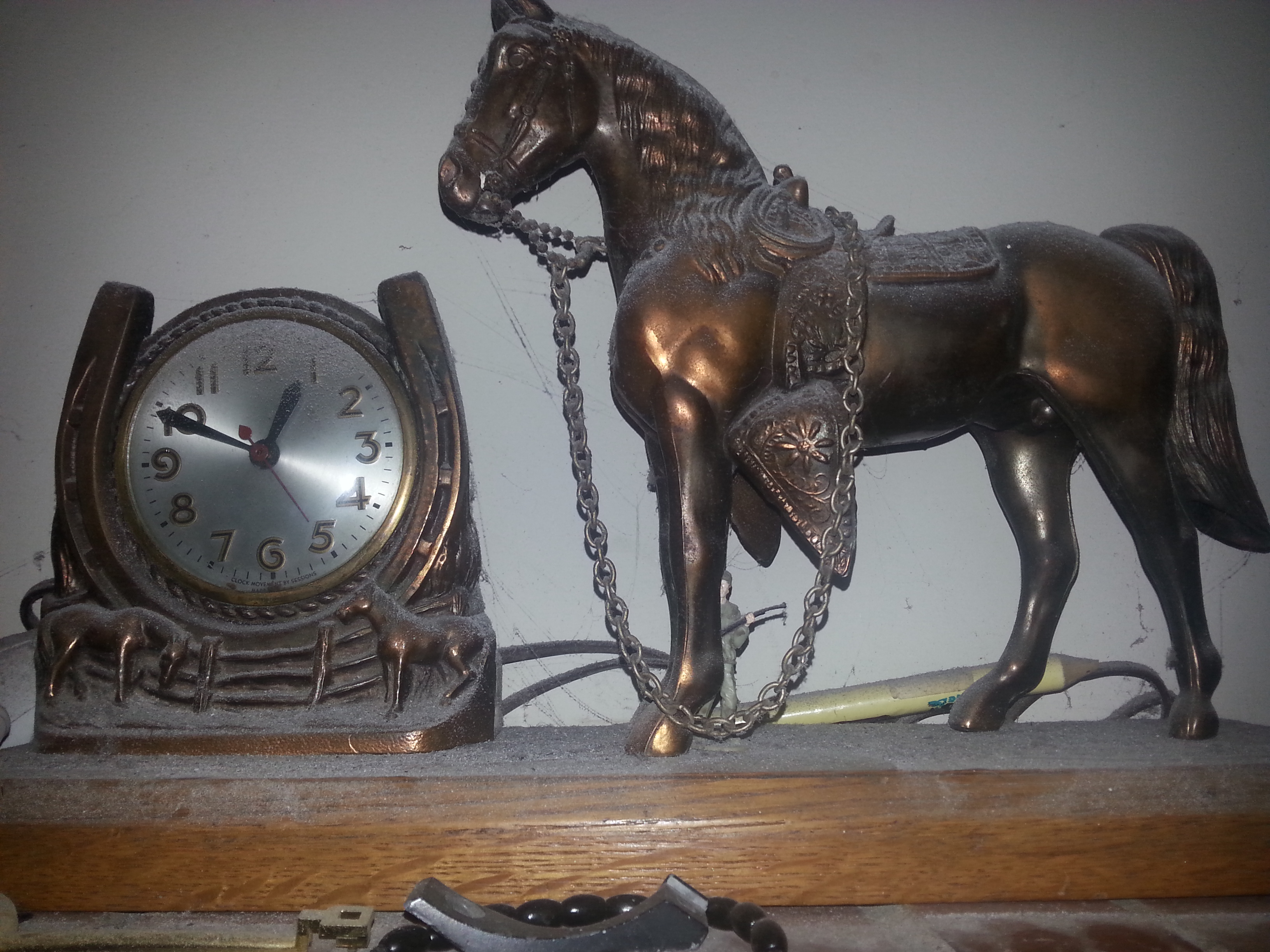 SESSIONS Horse and horseshoe mantle clock 1940's to 1950's... The 40's had a key wind.( in some).