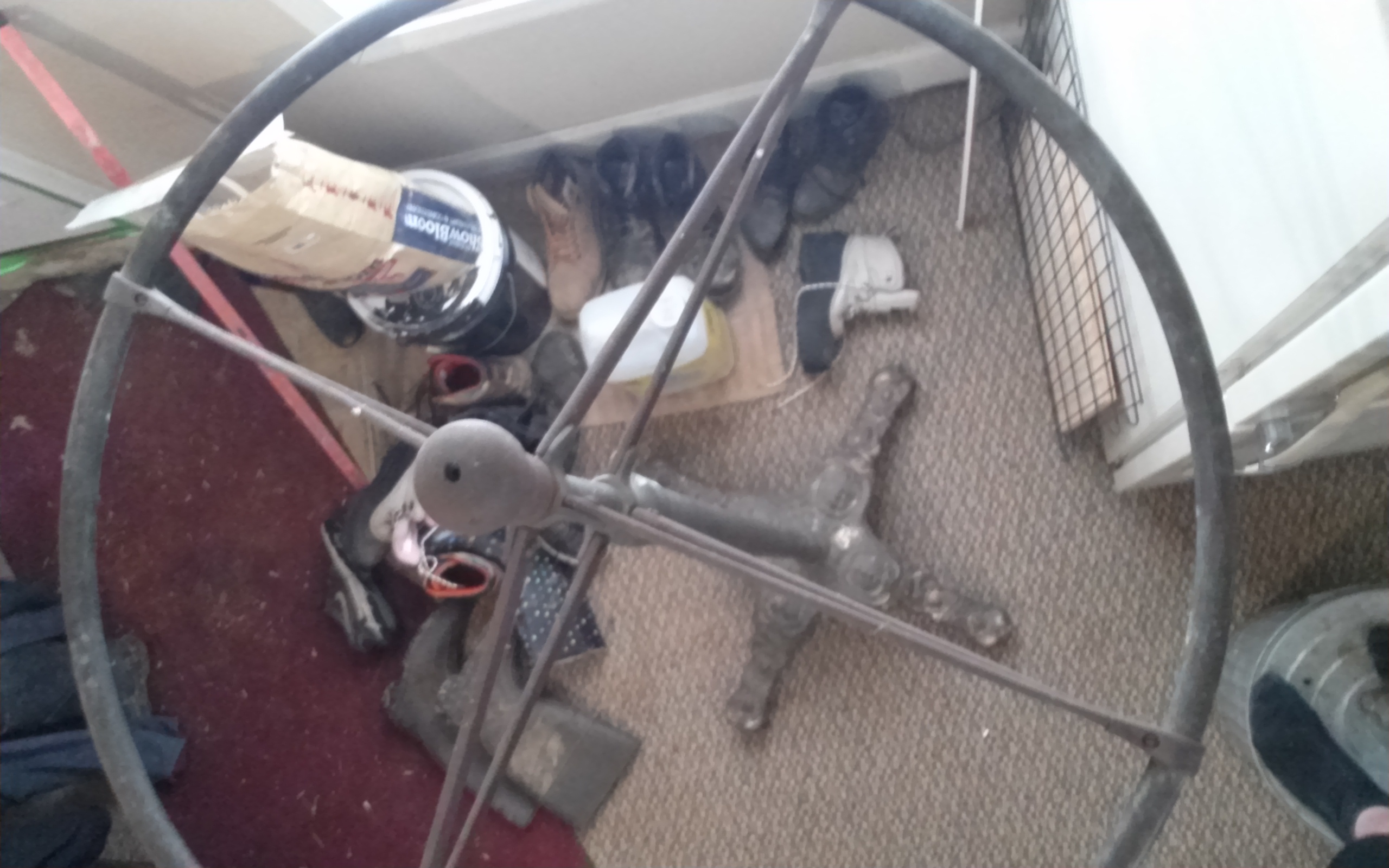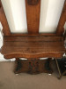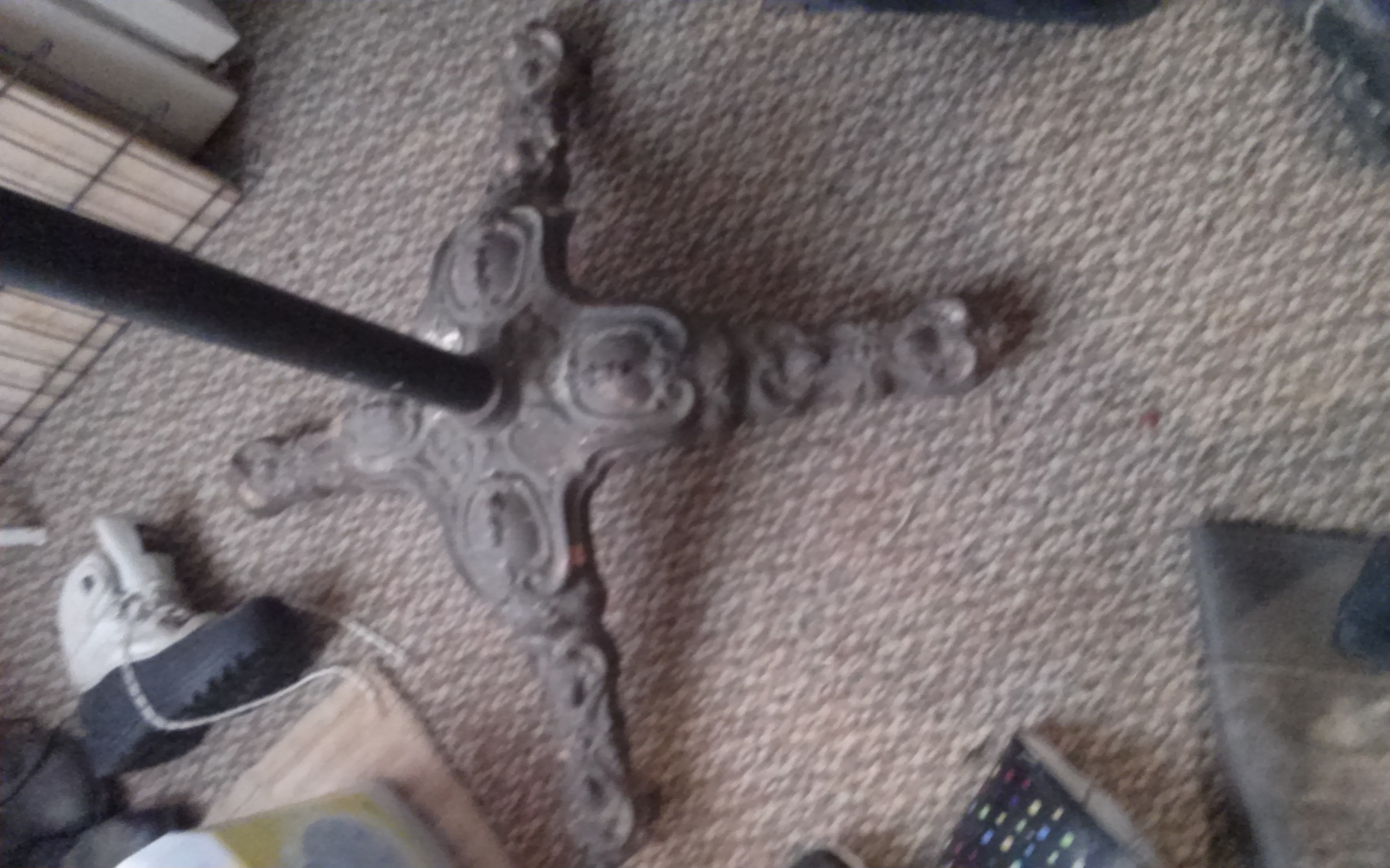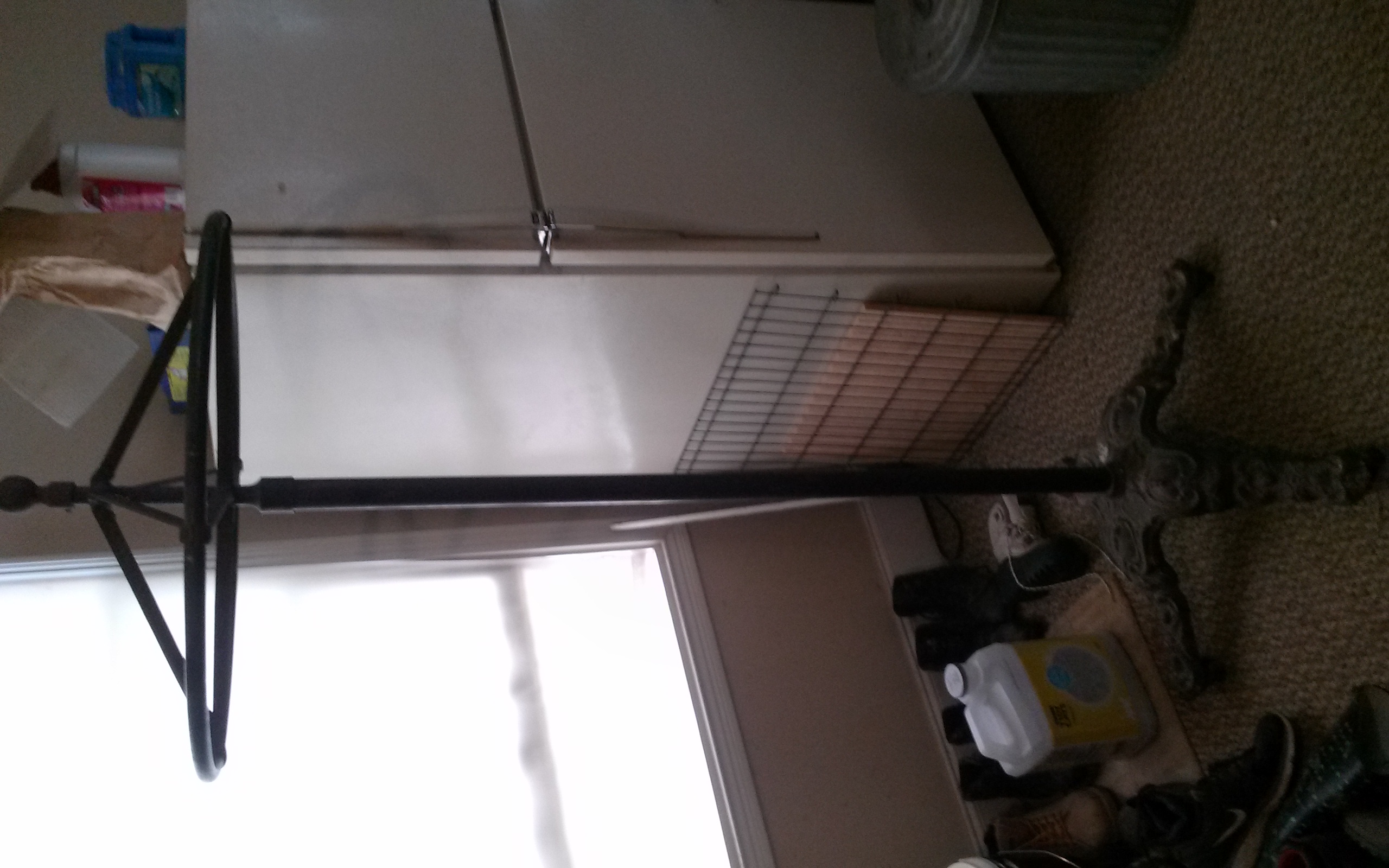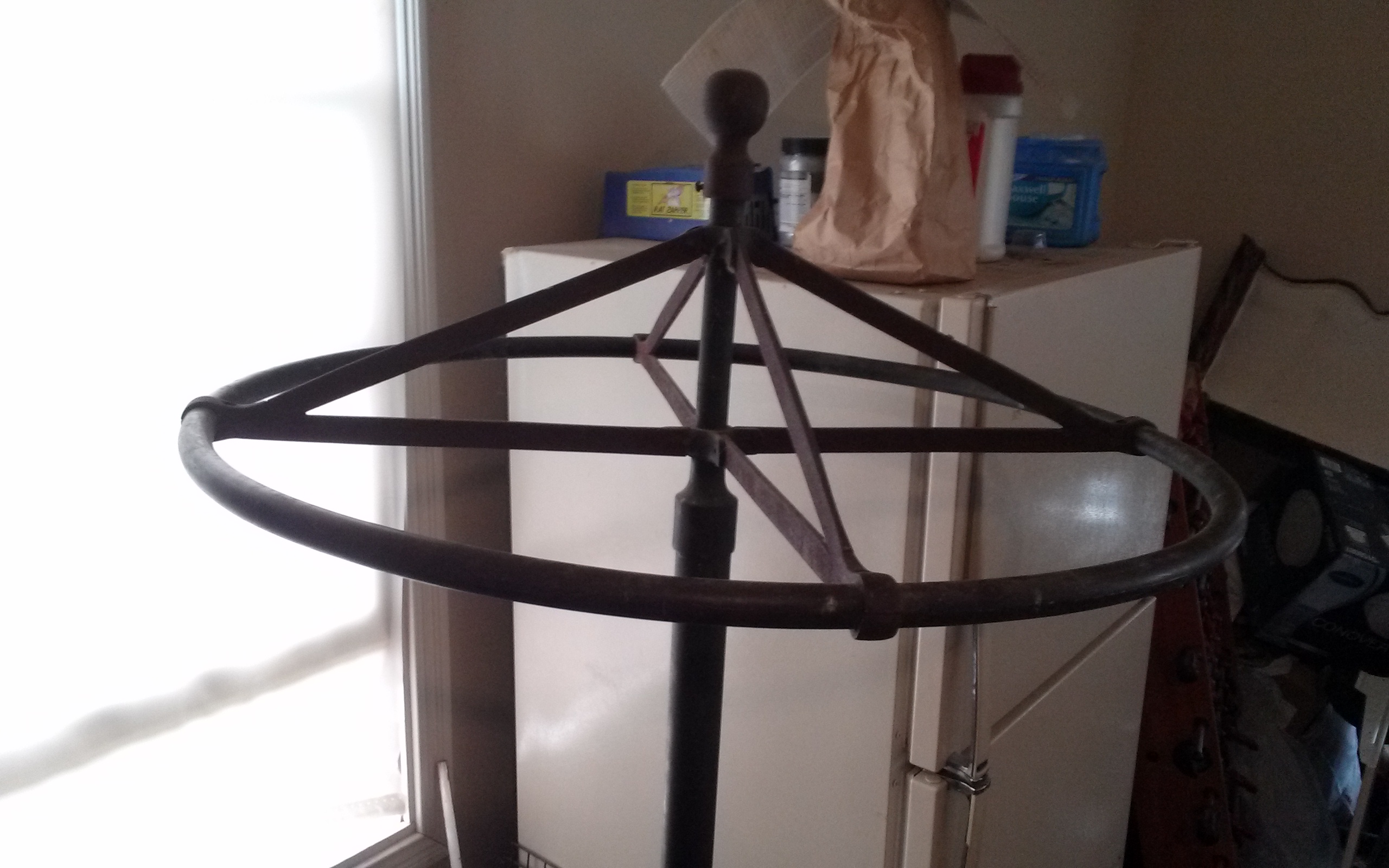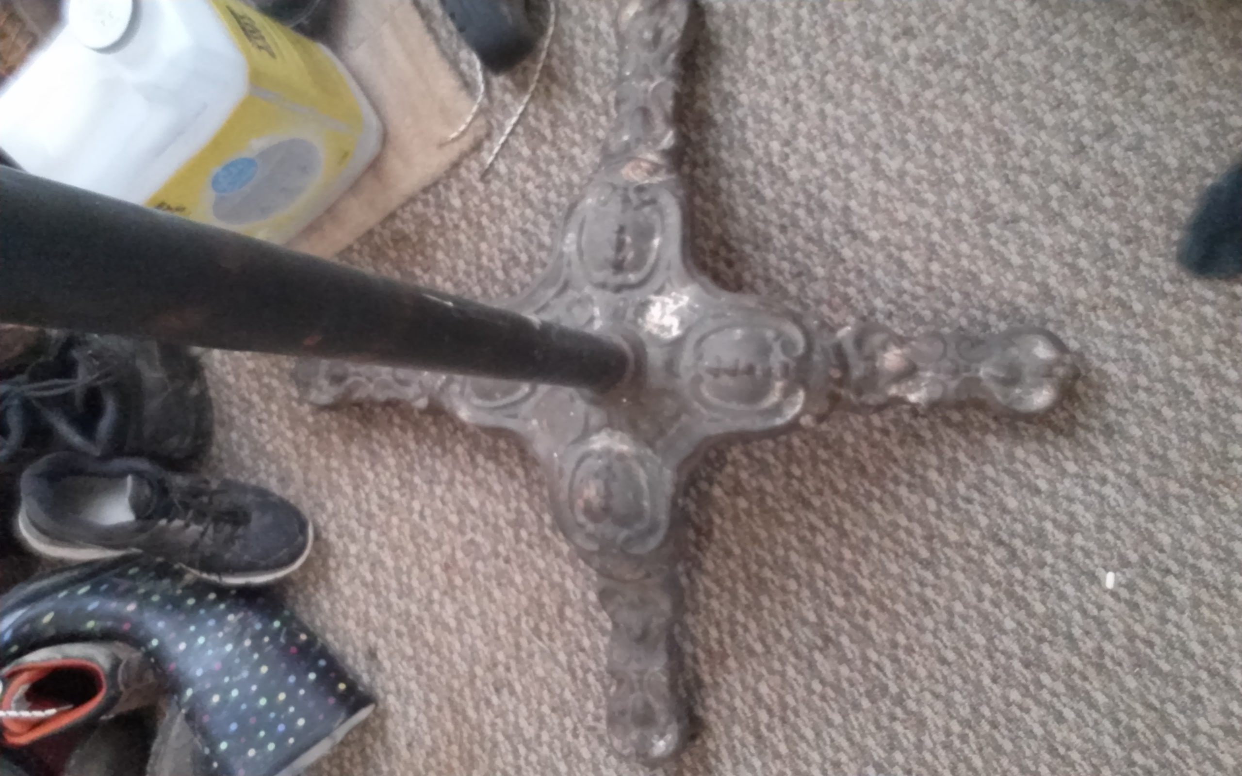 Hand carved stone bottom, 5 foot brass pole in the middle, and a round brass top