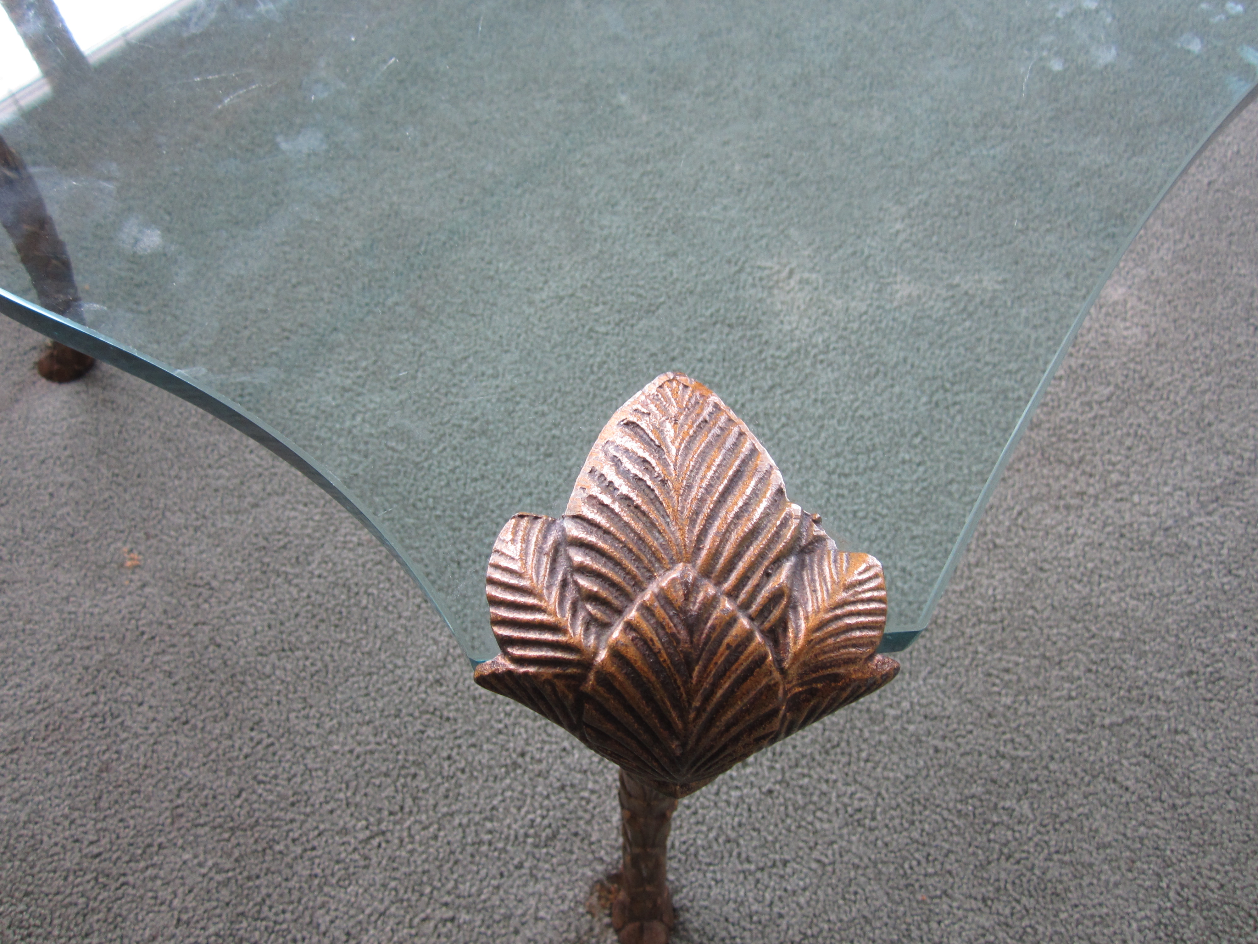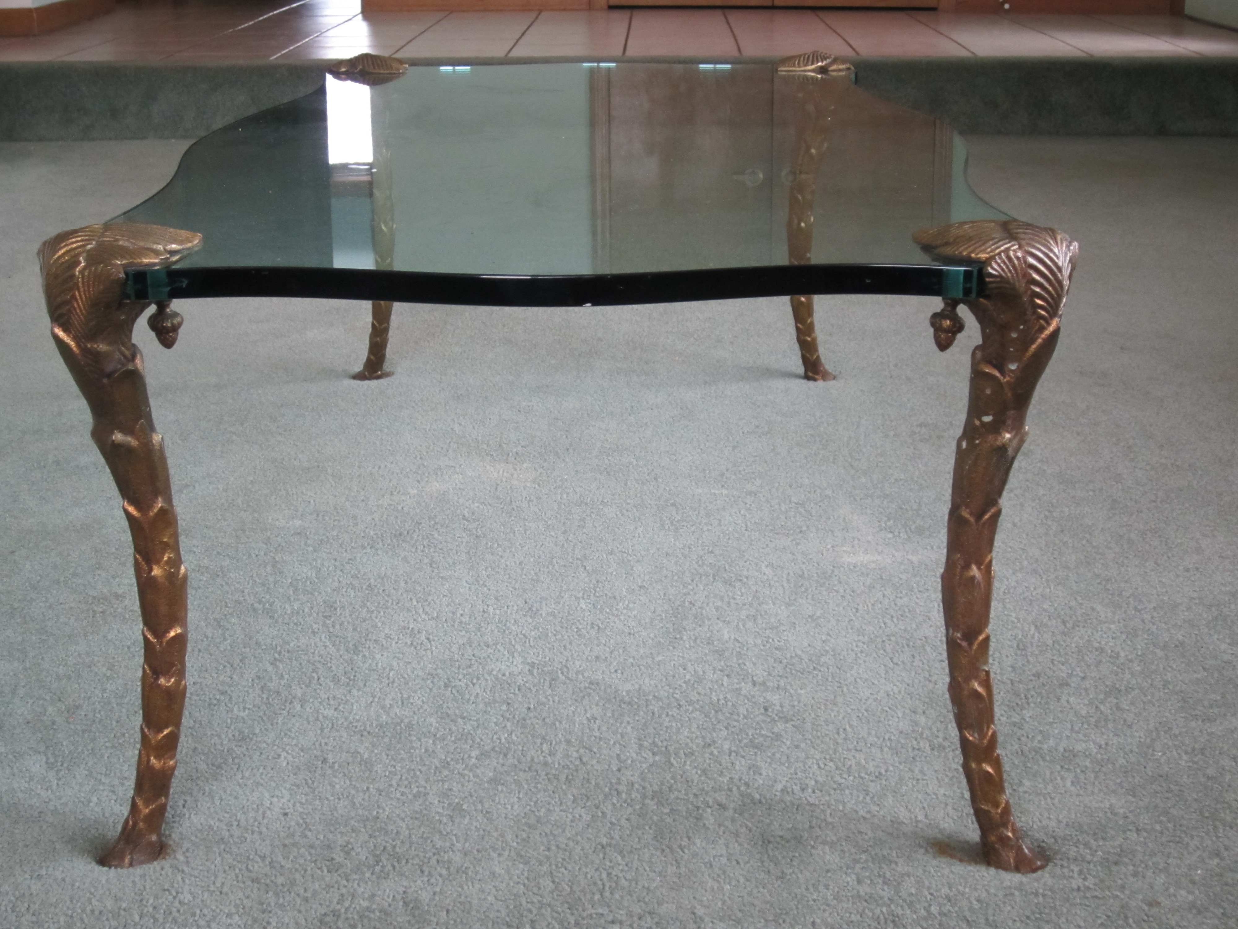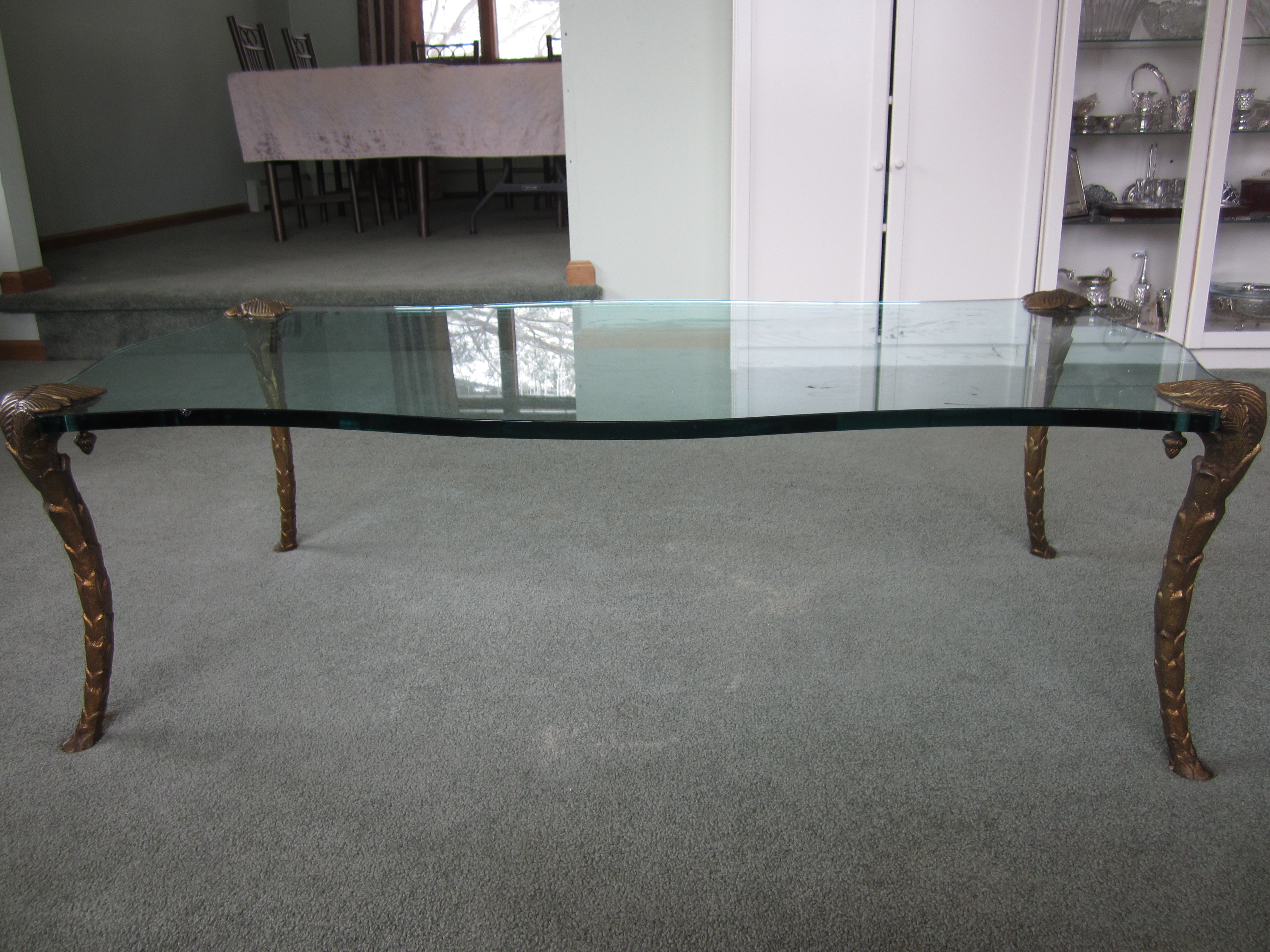 Coffee table with 1" thick glass. Approximately 4.5 feet x 2.5 feet. Great condition, one tiny chip on side of glass.