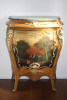 This is an antique commode that has been in our family for at least 20 years or so. It is made of wood, although I am not sure what type.