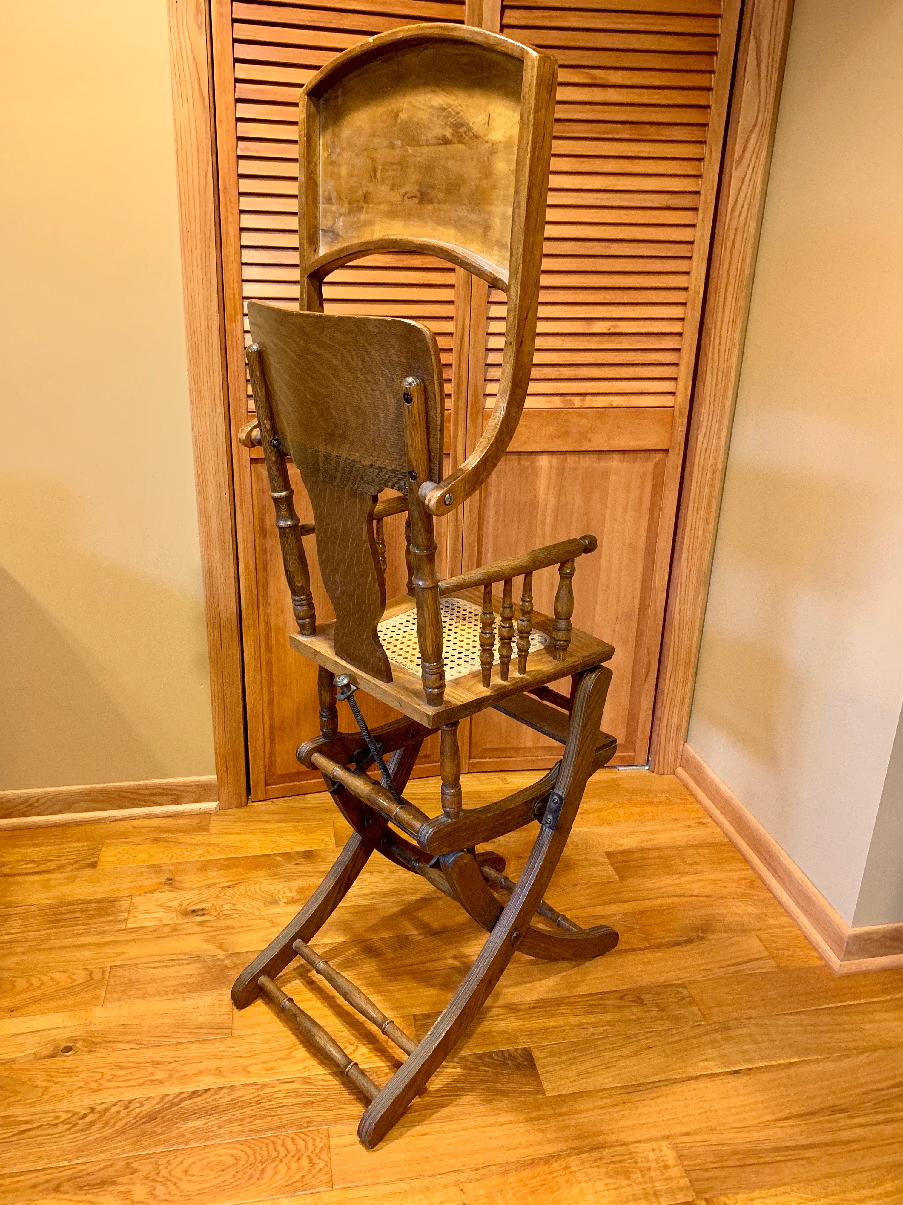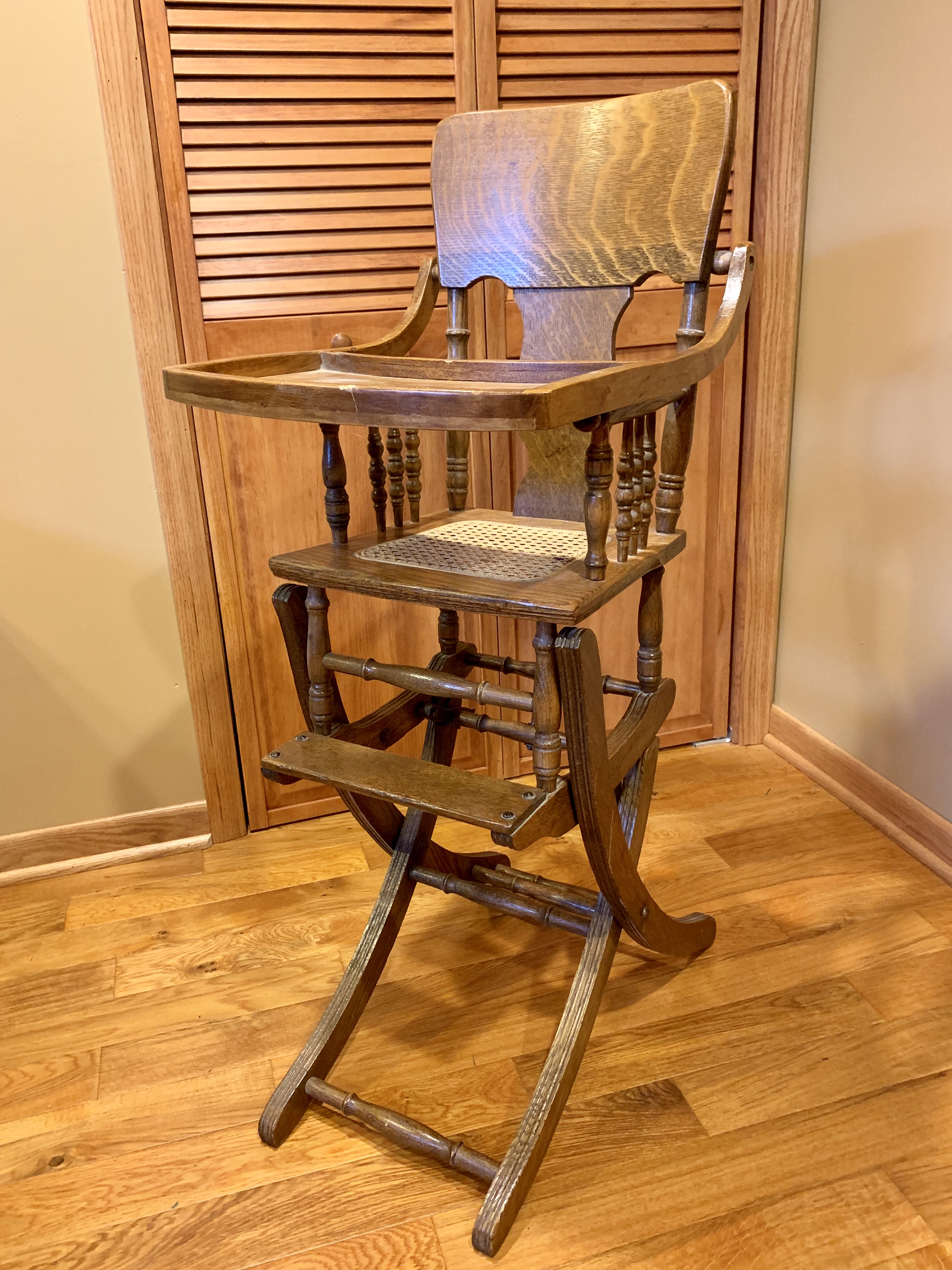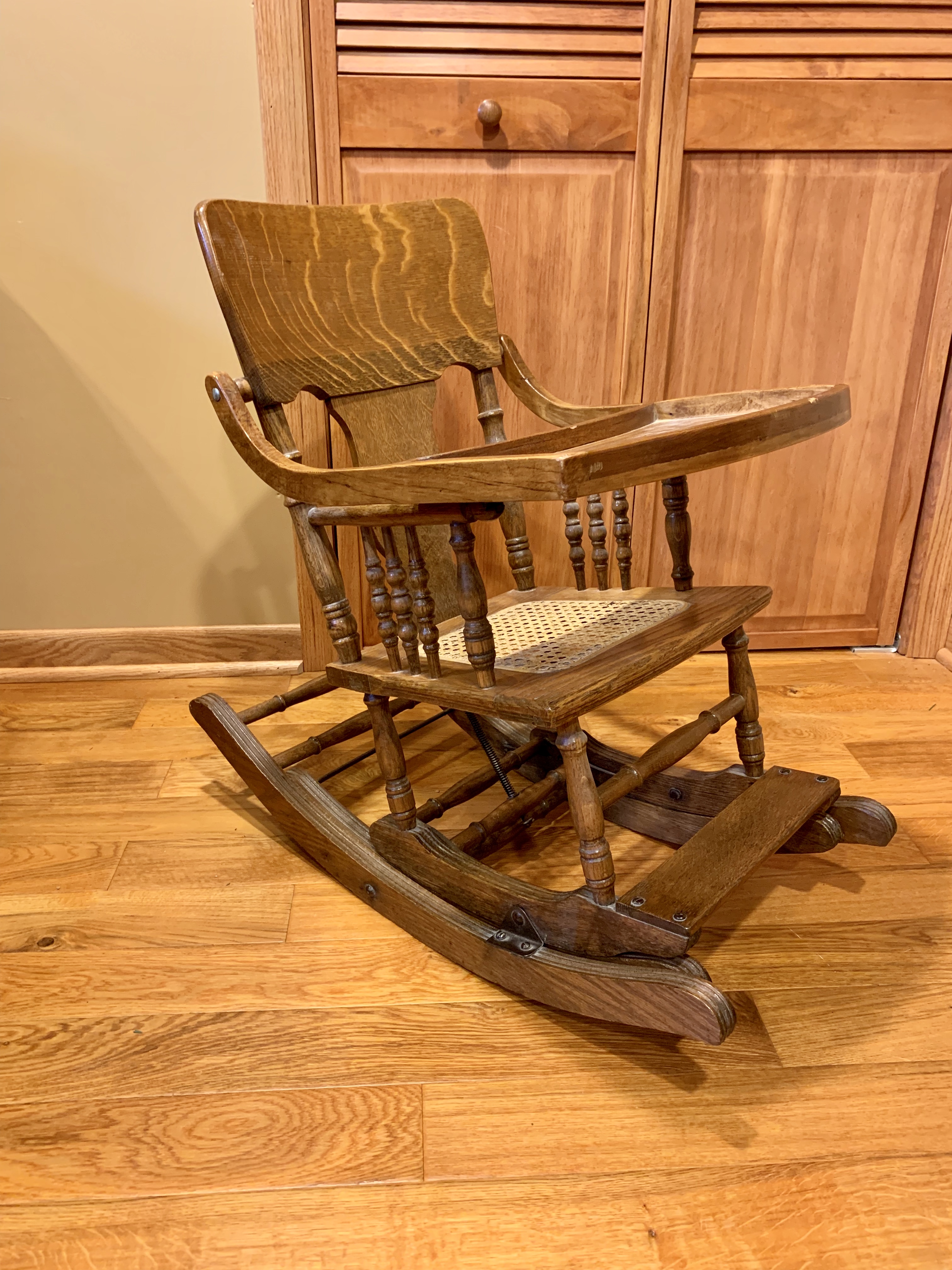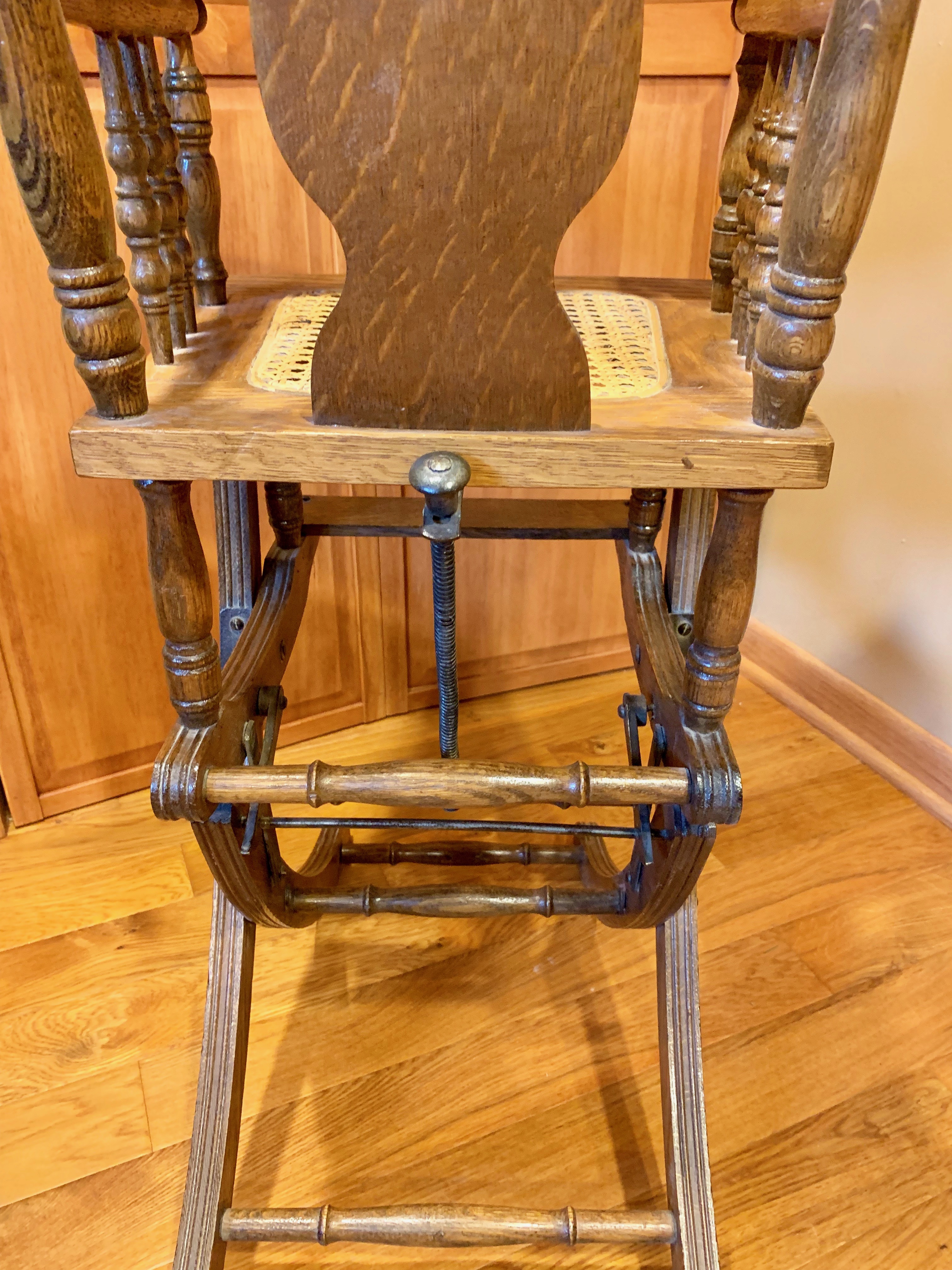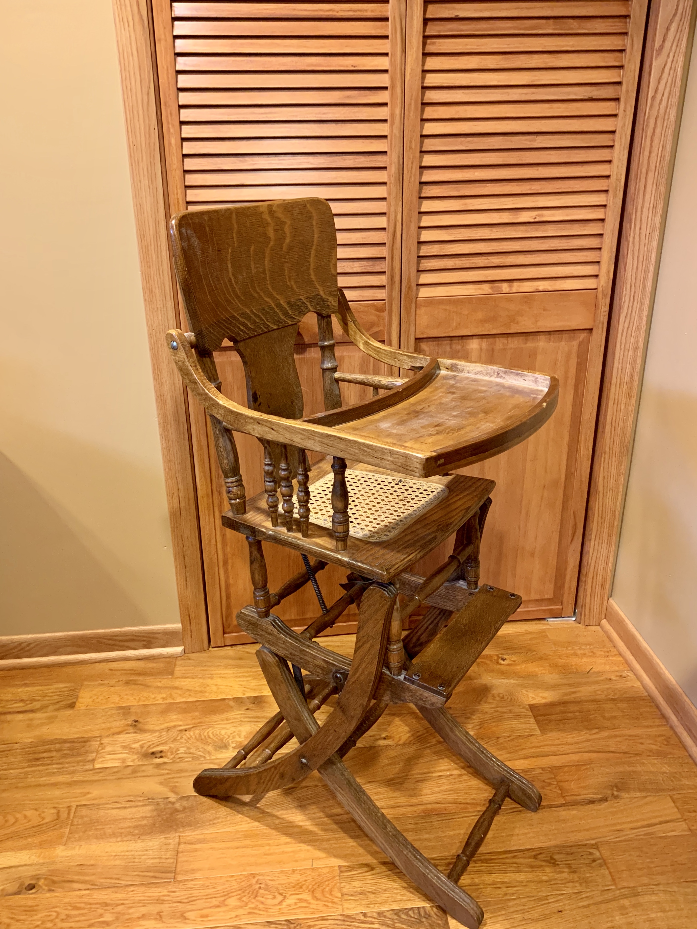 This is a late 19th/early 20th century high chair that converts into a rocker, received from a family member's estate. It is in very good condition. No broken parts. The wicker seat is intact. The mechanicals work well to raise and lower it. Any help assessing its value would be appreciated. Thanks.