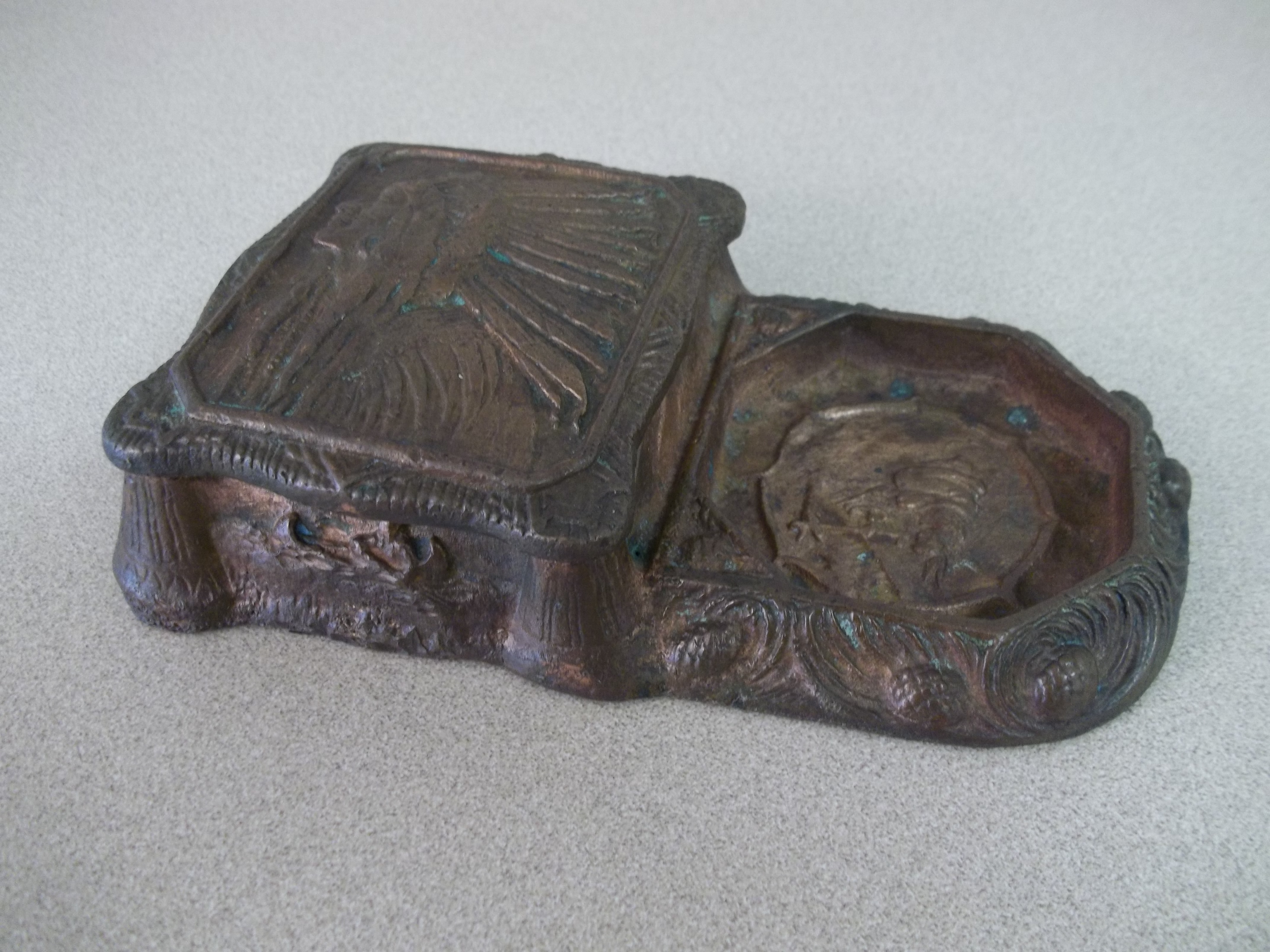 Re: Antique Copper Native American Chief Head Ashtray with...