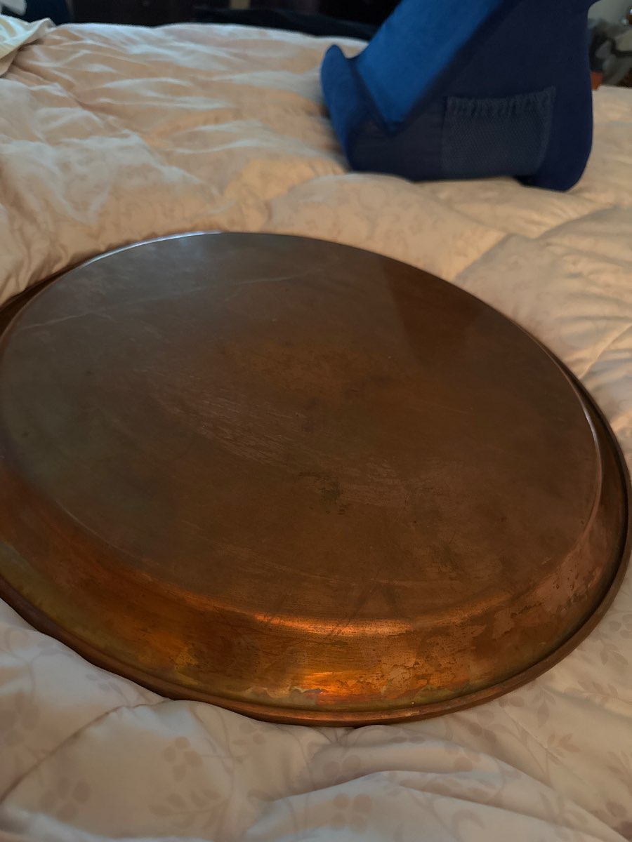 Valuation Range: Based on the condition and comparable sales, the estimated value of this antique copper serving tray is between $80 and $150.
