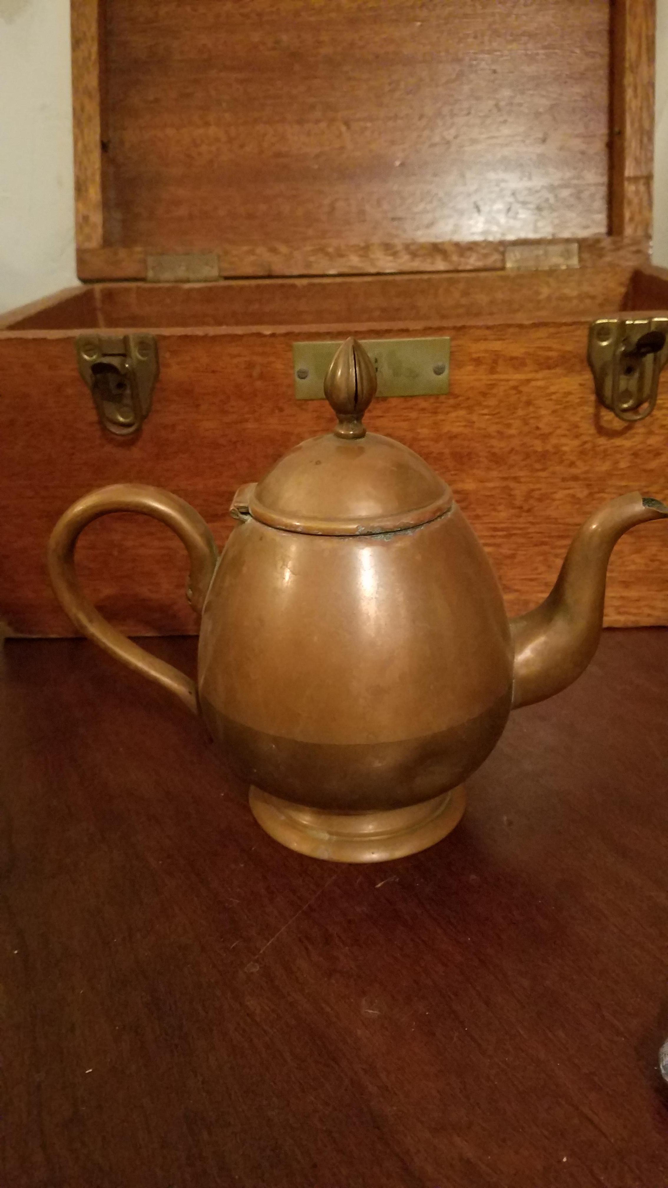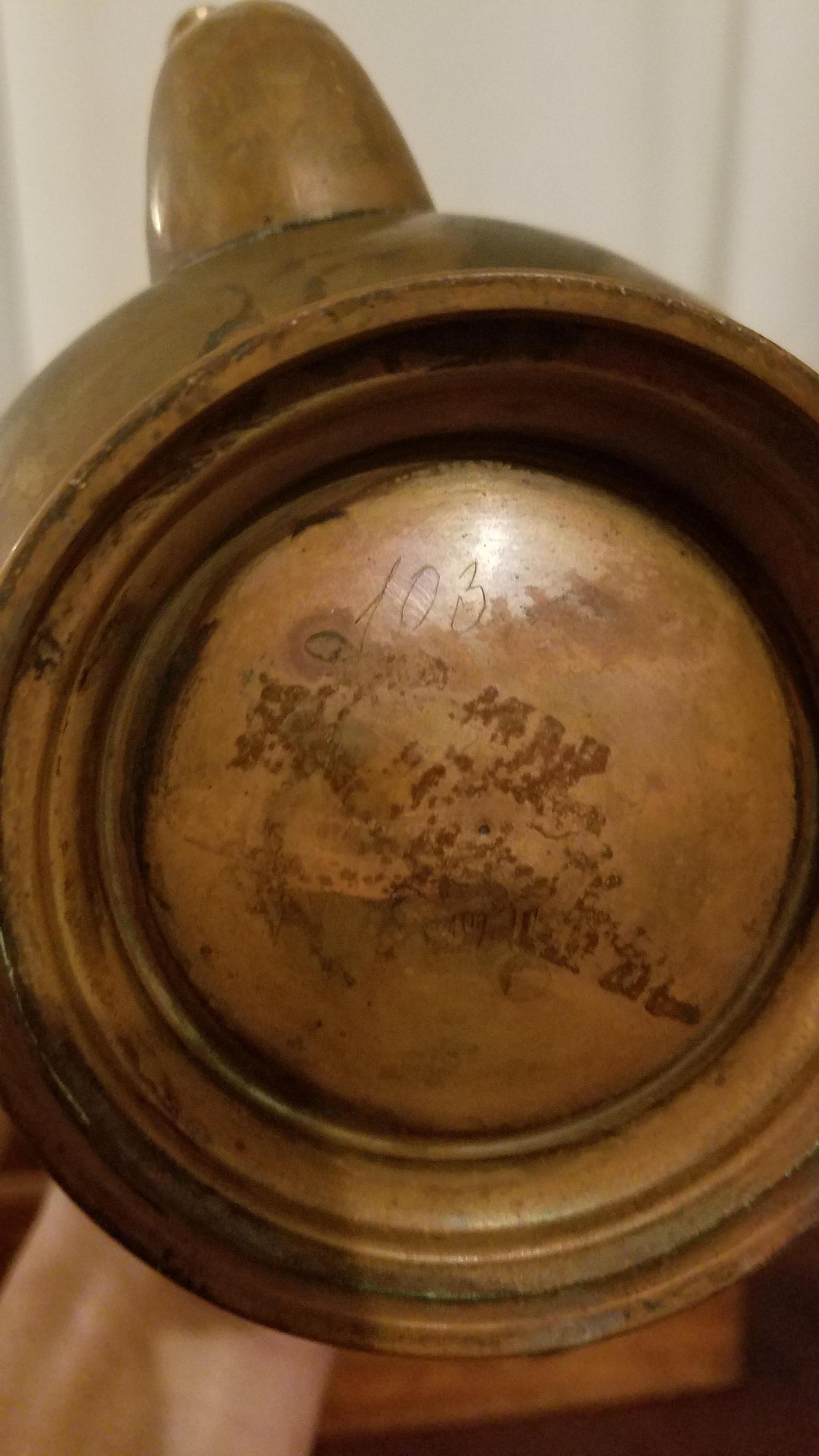 Antique copper tea kettle has what looks like a number scribed on the bottom