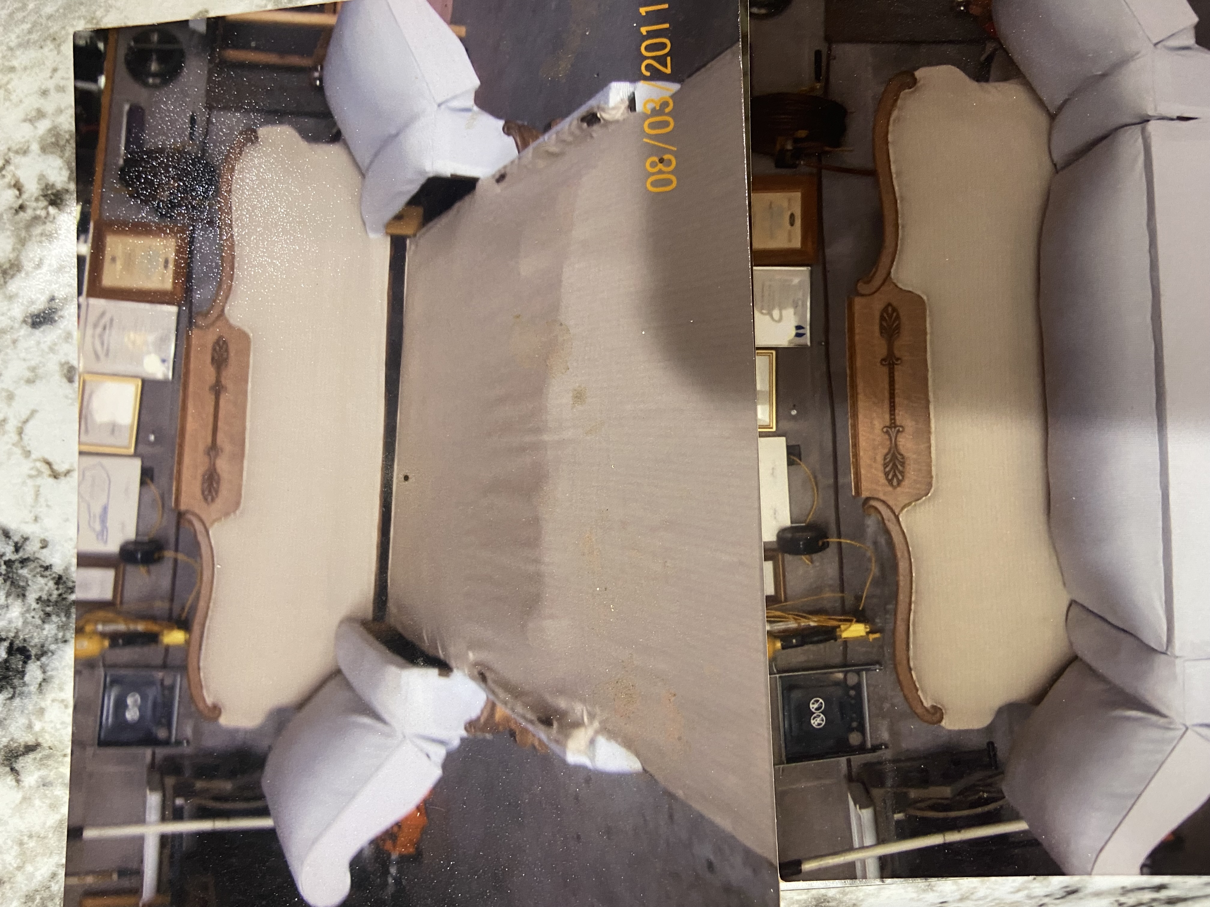 Antique Couch. Dating to c. 1960-1980. Materials: Wood frame, upholstery (specific fabric not identified). Estimated value: $300 – $450. Condition: Good. The market for vintage furniture is currently stable, with moderate demand for well-maintained pieces. Prices are generally holding steady, with some categories seeing slight increases.