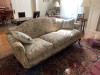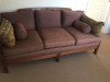 It's not quite antique yet, couches like this tend to date from the 1930's and are a mix of Rococo and Art Deco. Values for them tend to be quite low in the secondary market, the cost of reupholstery can exceed the cost of a new couch. We comparable pieces go at auction quite often for less than $250.00 , even if in very good condtion.
