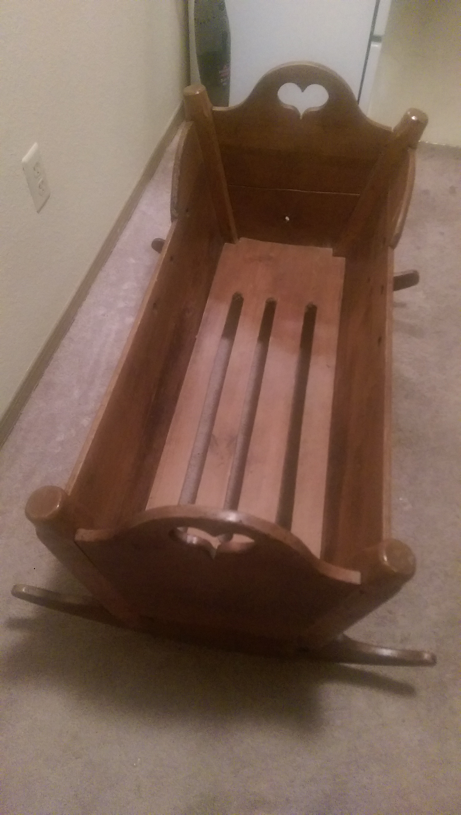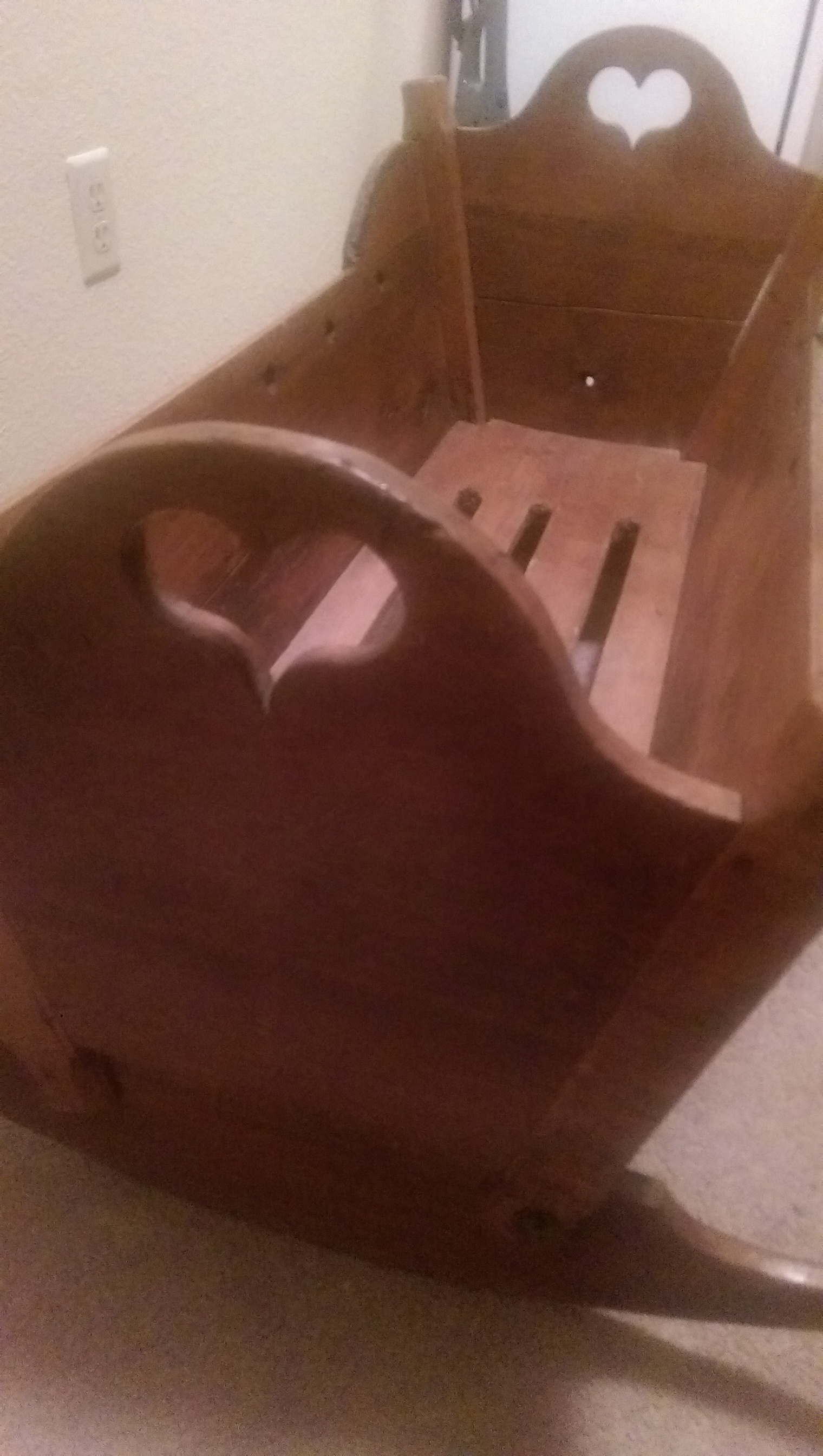 My father gave me this cradle when I was pregnant and he bought it from a garage sale in Illinois or Indiana for $100. He was informed that it was made between 1890 and 1910. I've seen pictures that look just like it that say it's from 1845. I'm just trying to learn more about this beautiful piece I have.