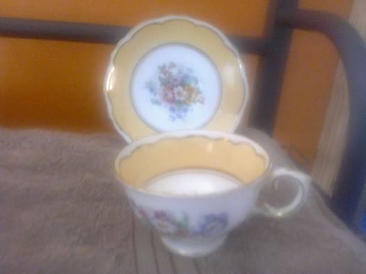 These are some pieces of the teaset that my grandmother gave to me about 30 years ago that was handed down from her mother as an engagement present to her. Just for some enlightenment my grandmother passed on in 2002 at the age of 91. I have in my possession the 6 teacups with saucers, teapot, sugar bowl, milk jug and cake plate as well as 5 side plates, the other unfortunately is missing. They all have the trademark at the bottom as well as it looks like to me a small gold bird of some sort. What value if any, is this and what could I get for it if I decided to sell it.