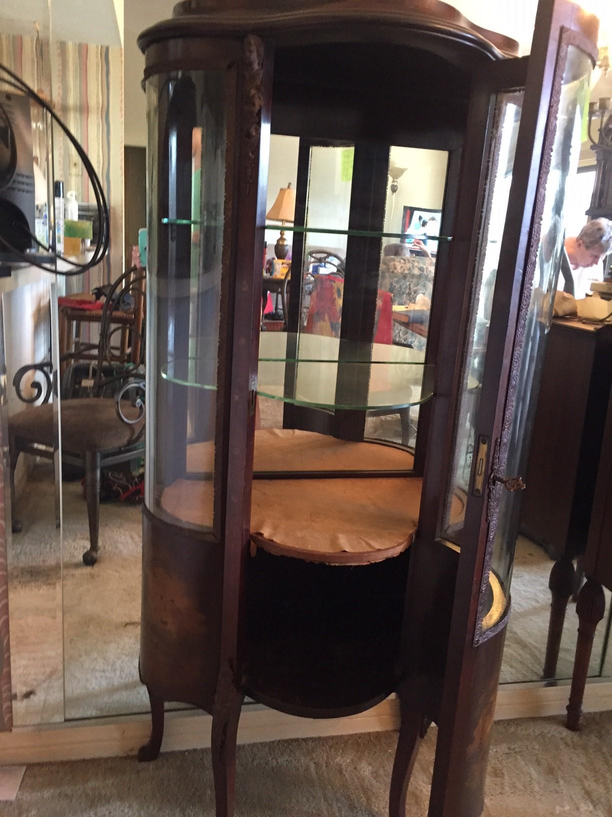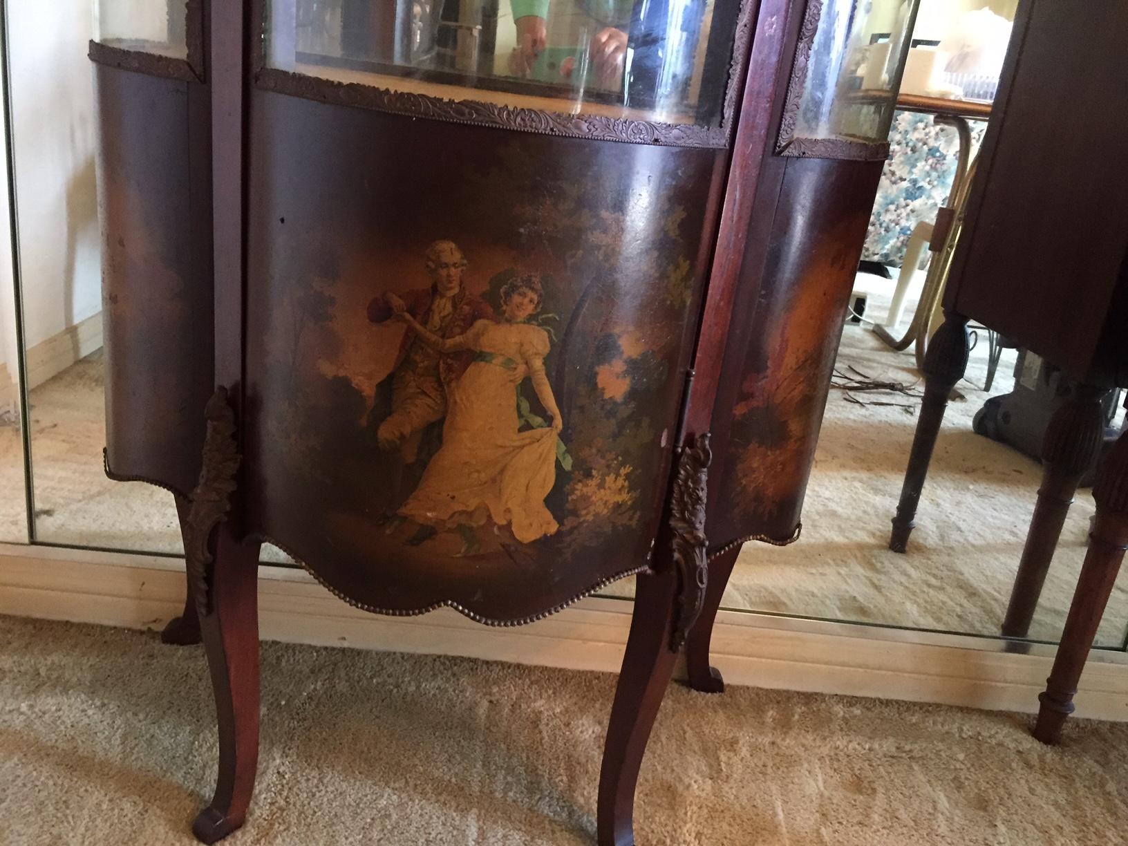 Very pretty with painted panels about 6' tall. Three curved glass pieces about 3' wide and deep.