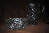 Antique beautiful cut glass pitcher and 6 glasses with gold trim at rim. Also matching candy dish. All in mint condition.