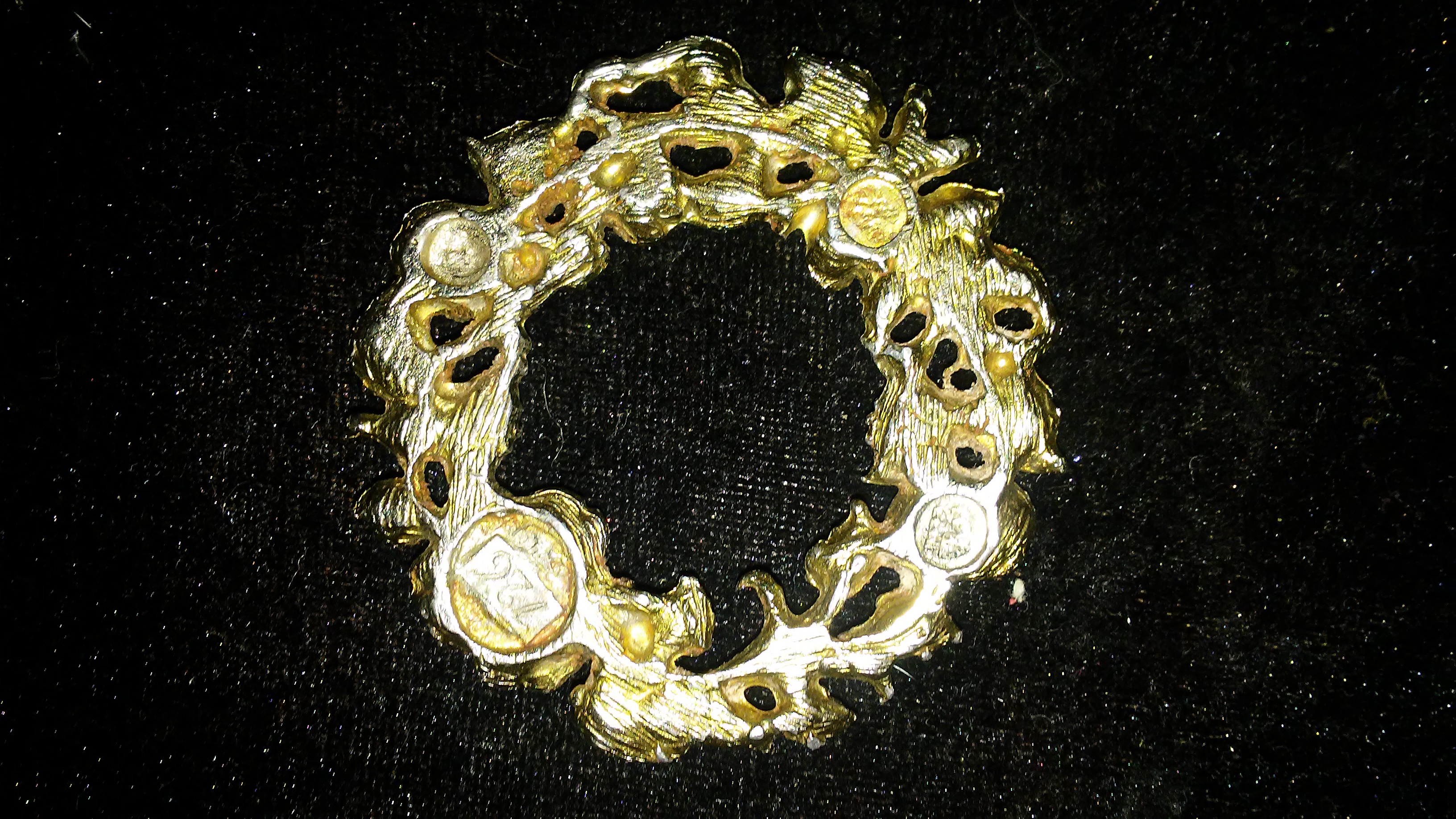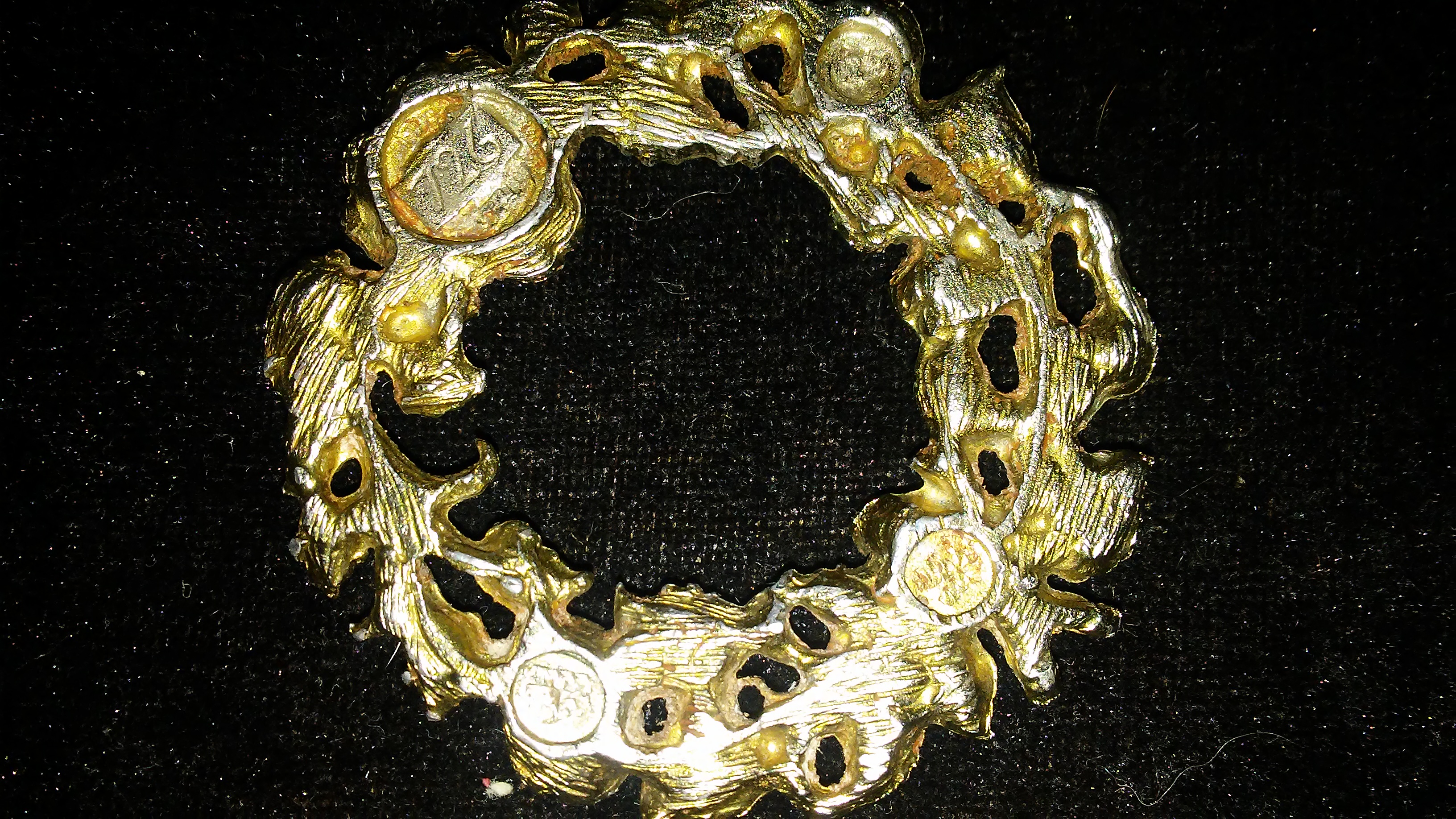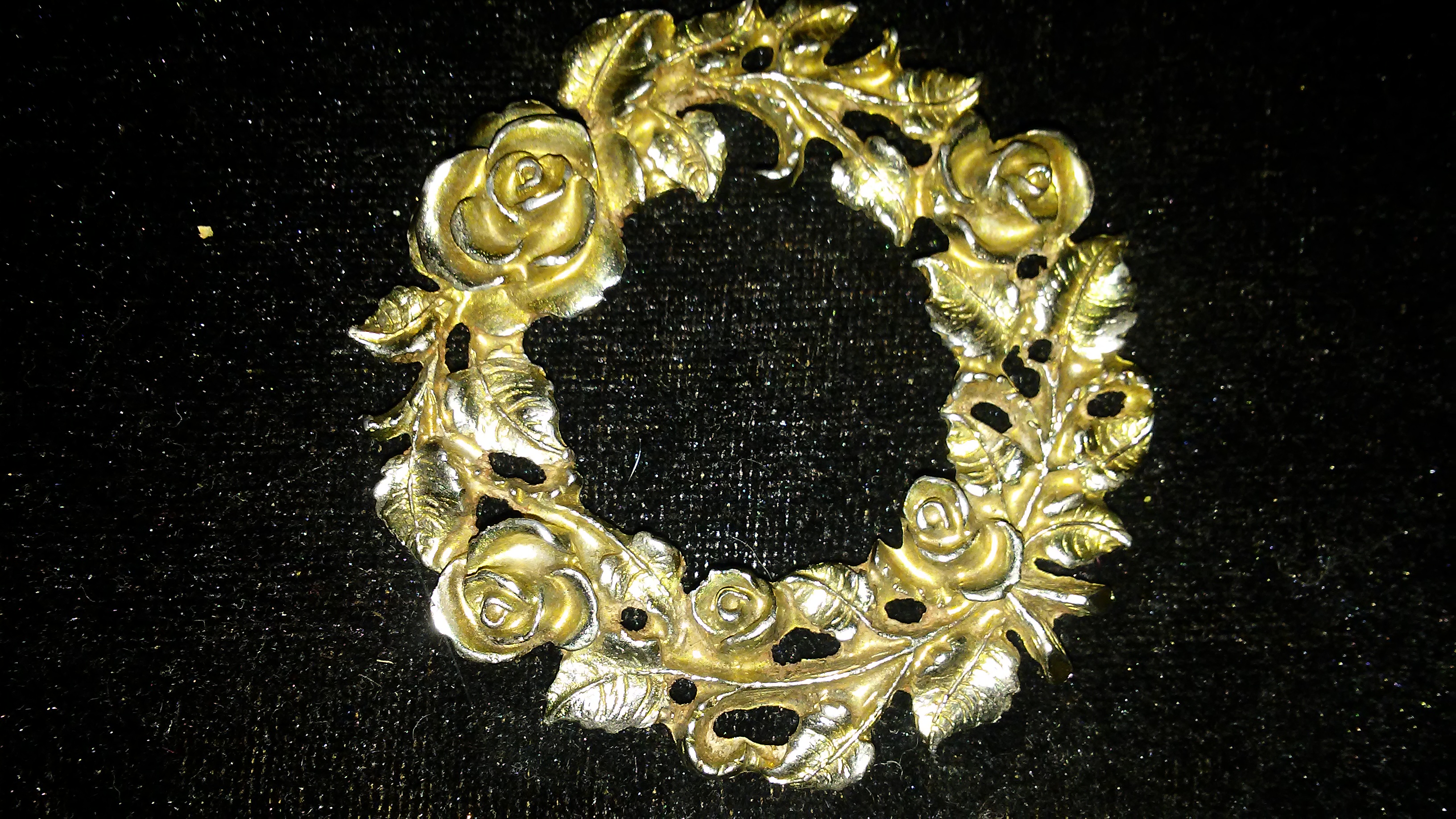 Antique decorative rose wreath medallion with the numbers 726 engraved on the back
