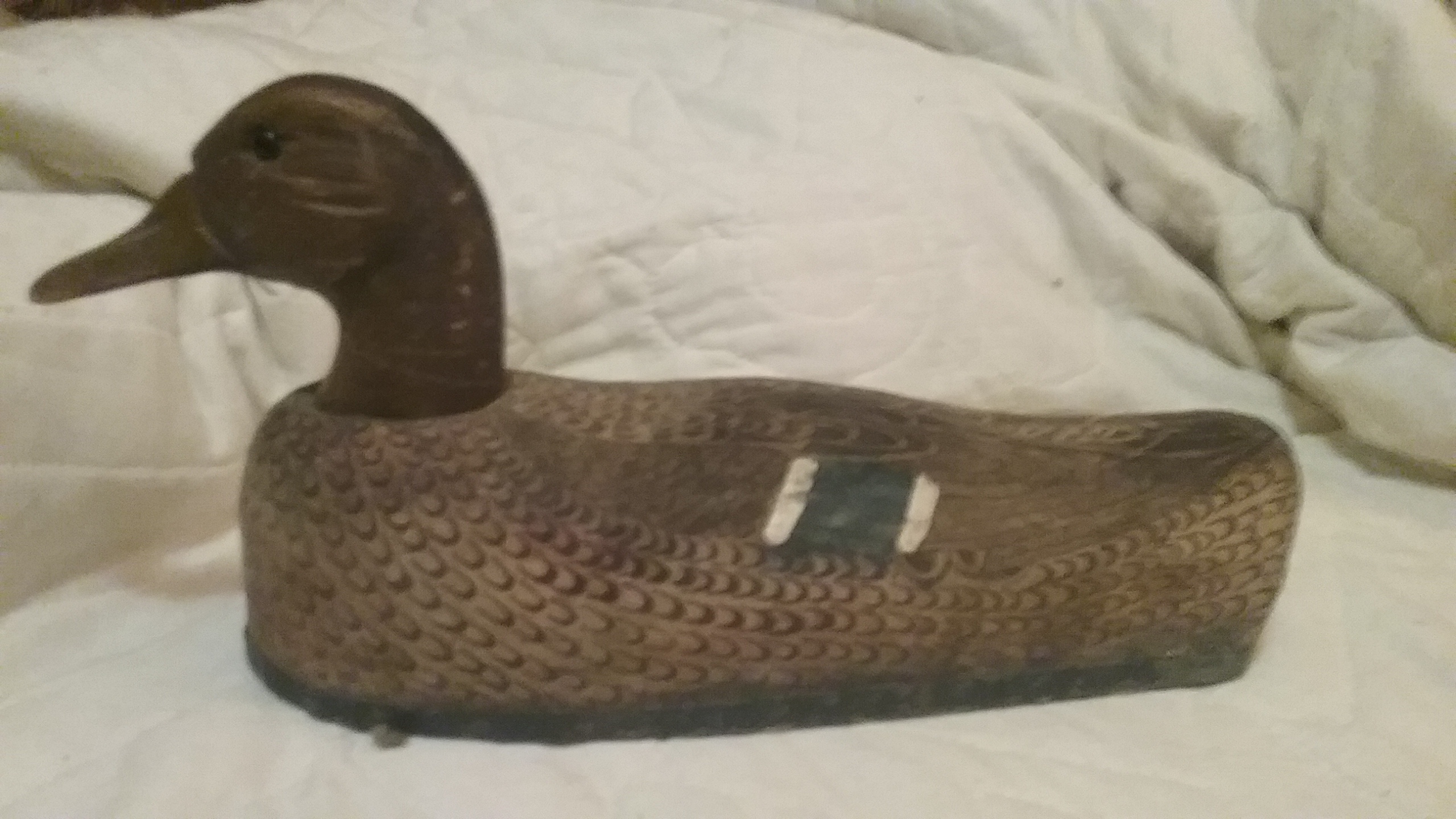 When my grandfather passed away he left me a box of his belongs with some random effects. Inside was this Decoy Duck, I remember him telling me long ago that is was valuable, but he didn't tell me how old it was, where he got it from, or who made it. It doesn't seem to have any identifying markings at all.