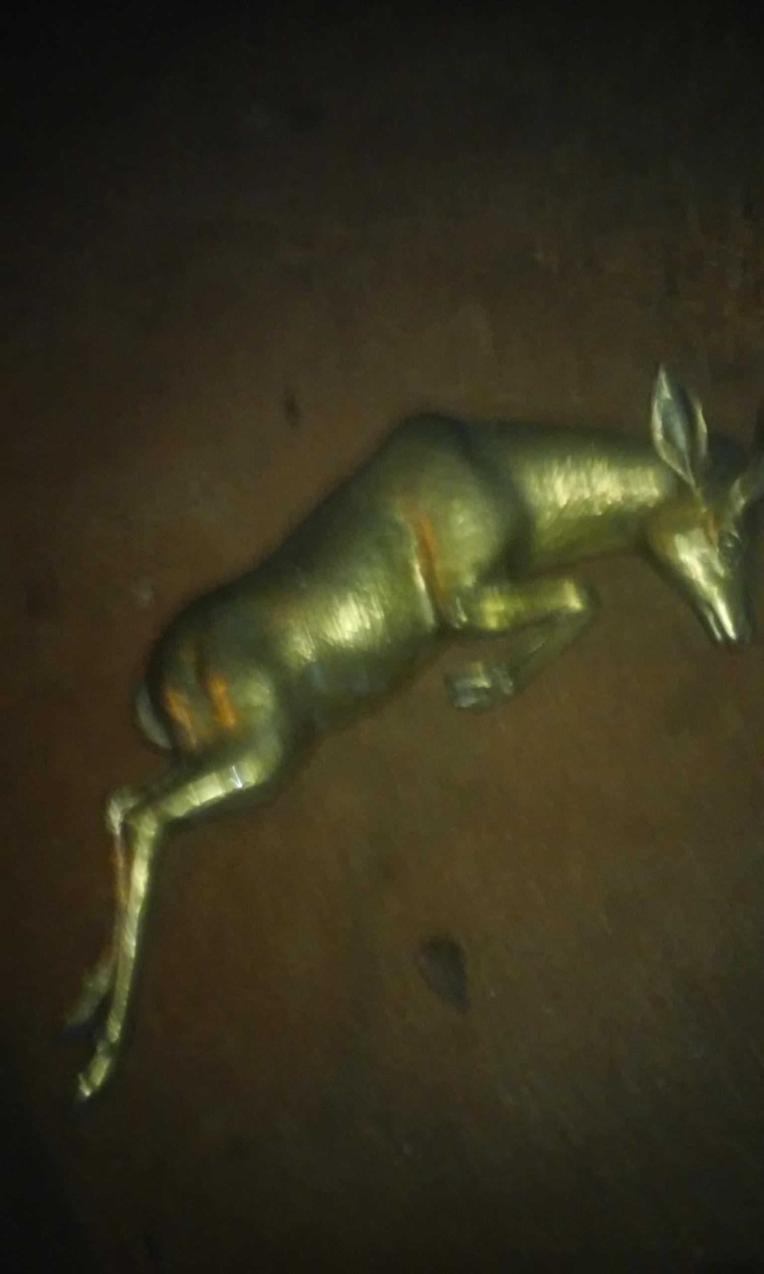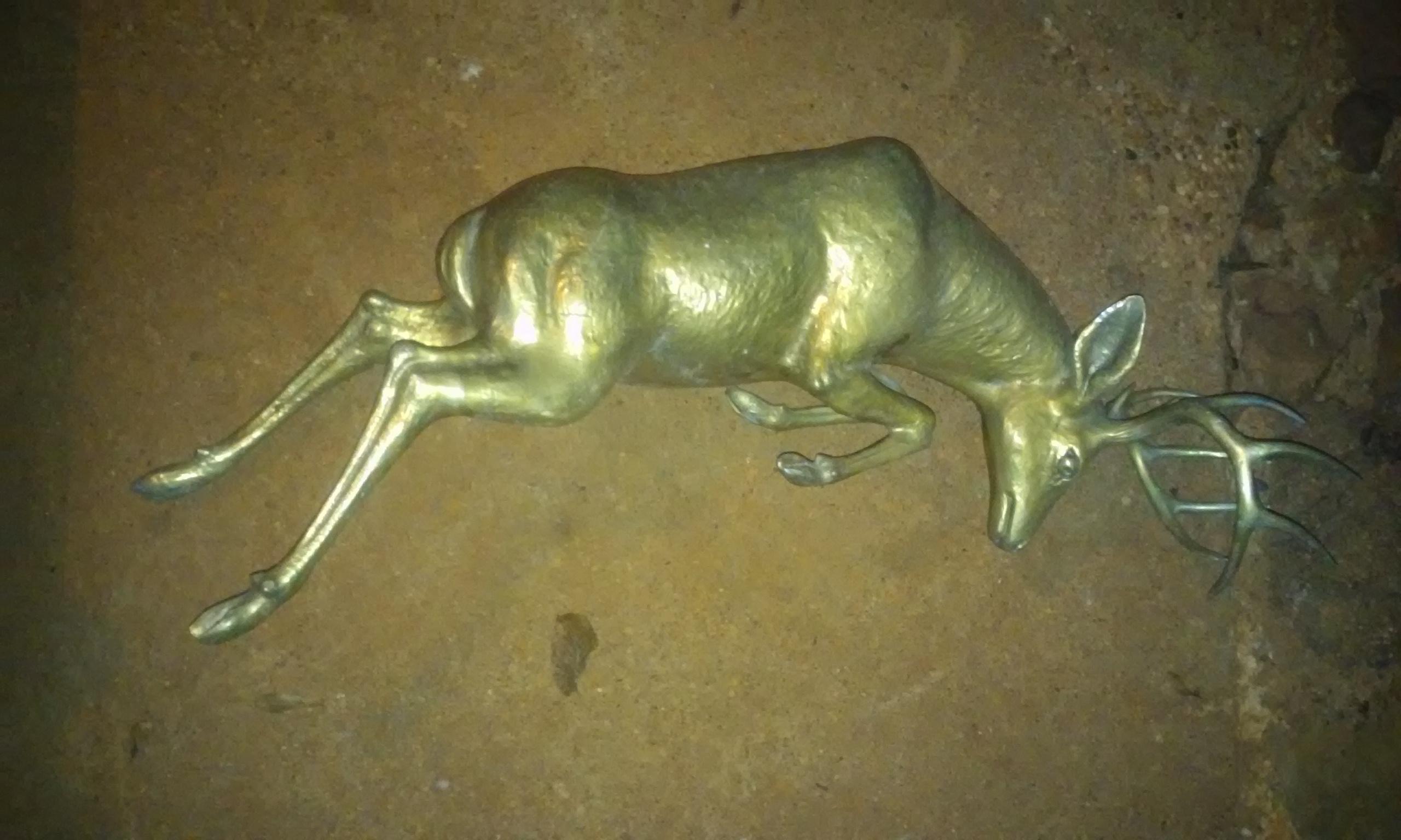 2buck deer in fighting stance both are about 40 in. long they appear to be brass but are aluminum .in good shape very unique