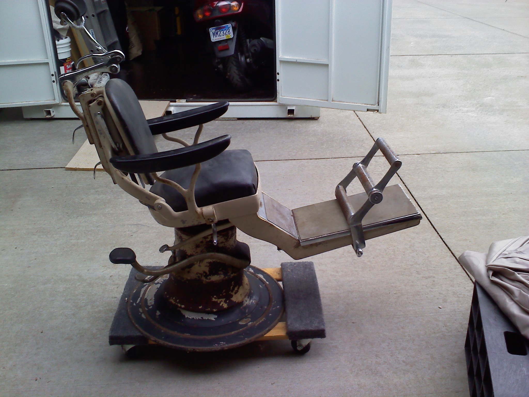 Antique dental chair, I believe it is a Ritter from possibly the 1930's. It is a child-sized chair, with the seat being only 13 inches wide. The leather seat and back are in good condition with no tears, and the headrest is also in good condition. The mechanics work. The cream-colored paint finish is worn and chipped, and the chrome portions have some rust. I am considering having it restored and am wondering what it's current value is, and what it would be valued at if restored. I have seen this chair on-line, but never in this small size.