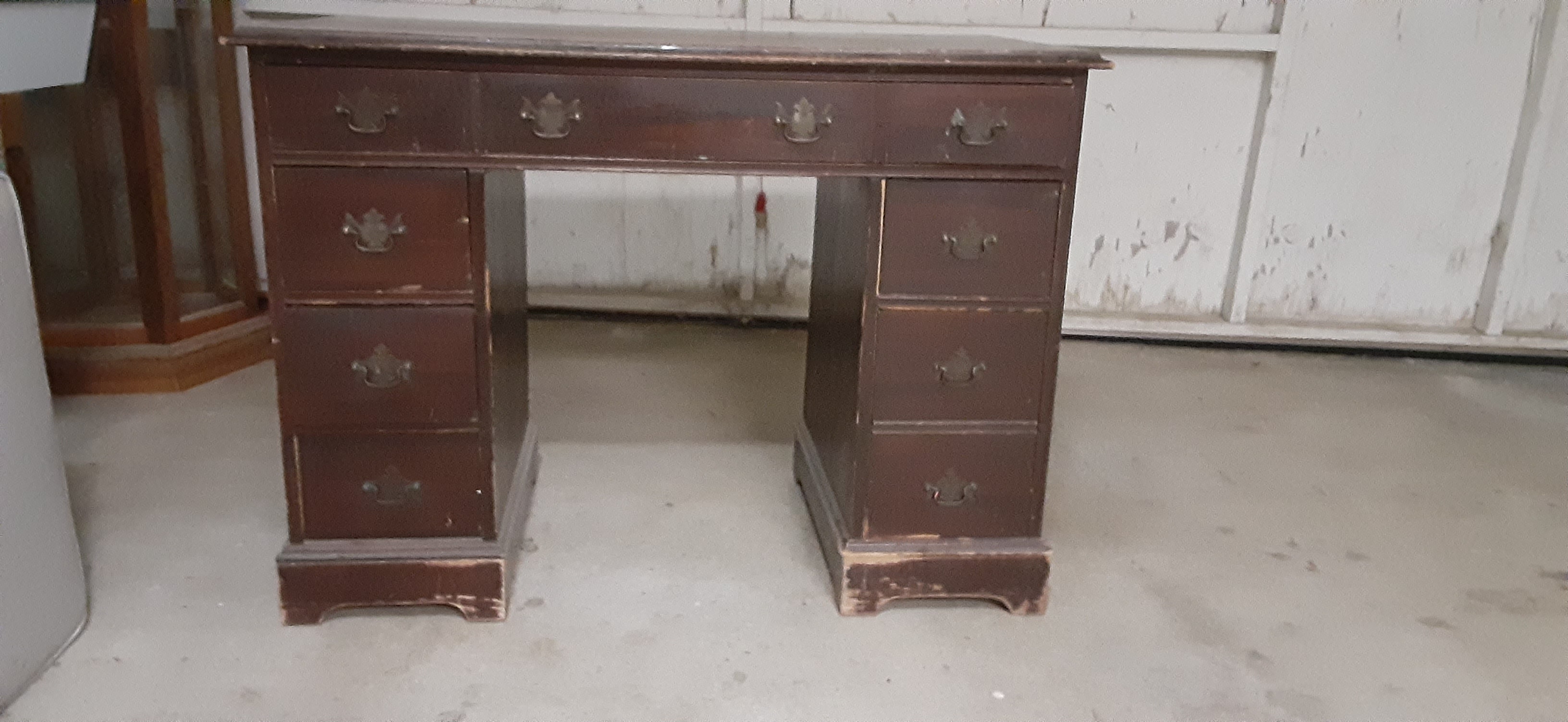 This desk belonged to a grandparent growing up. We believe it was made in the late 1800's or early 1900's. Thank you.
