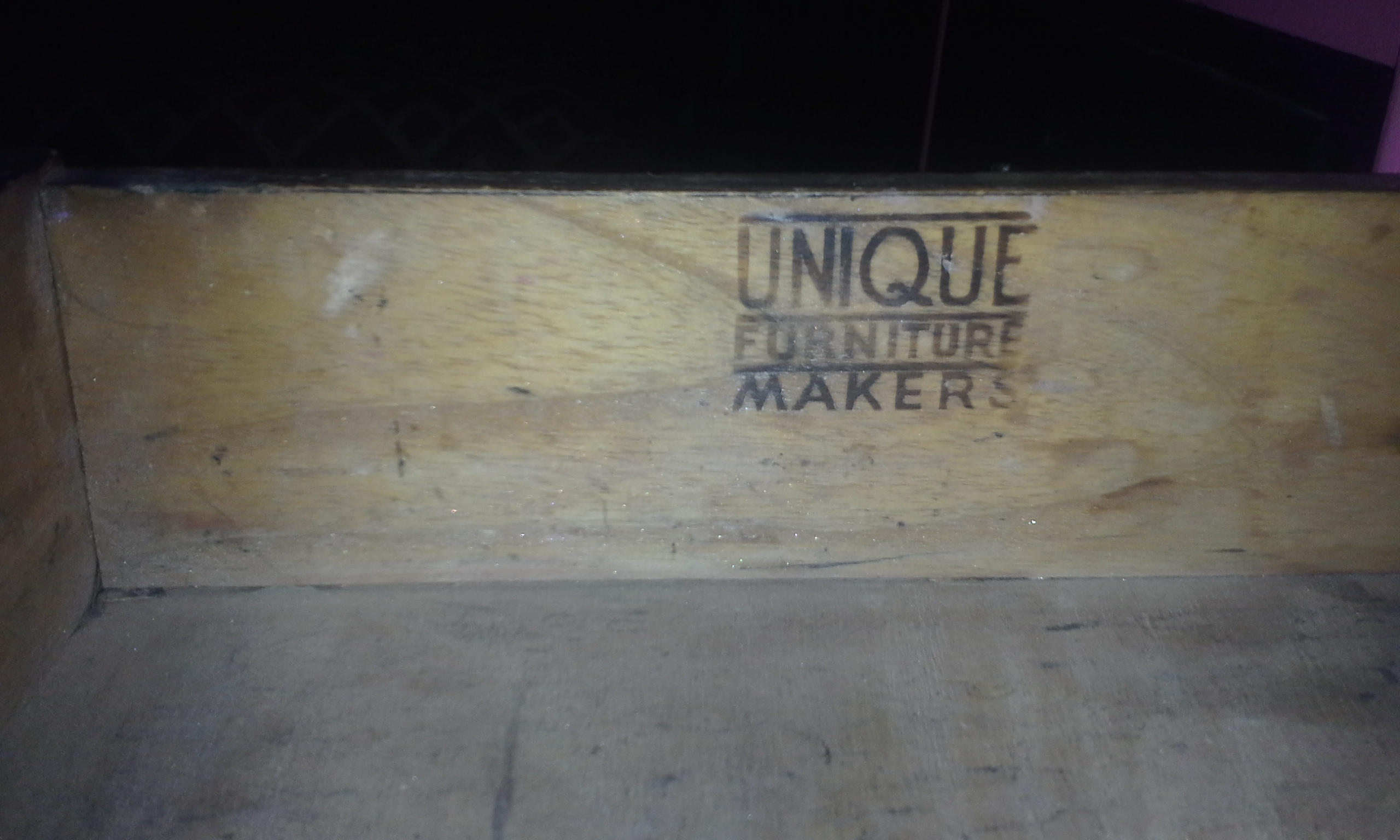 I found this desk/ vanity at a thrift store years ago. It has been painted and the only info I have is that the inside logo is Unique Furniture Makers. Not sure what other information would be of value.
