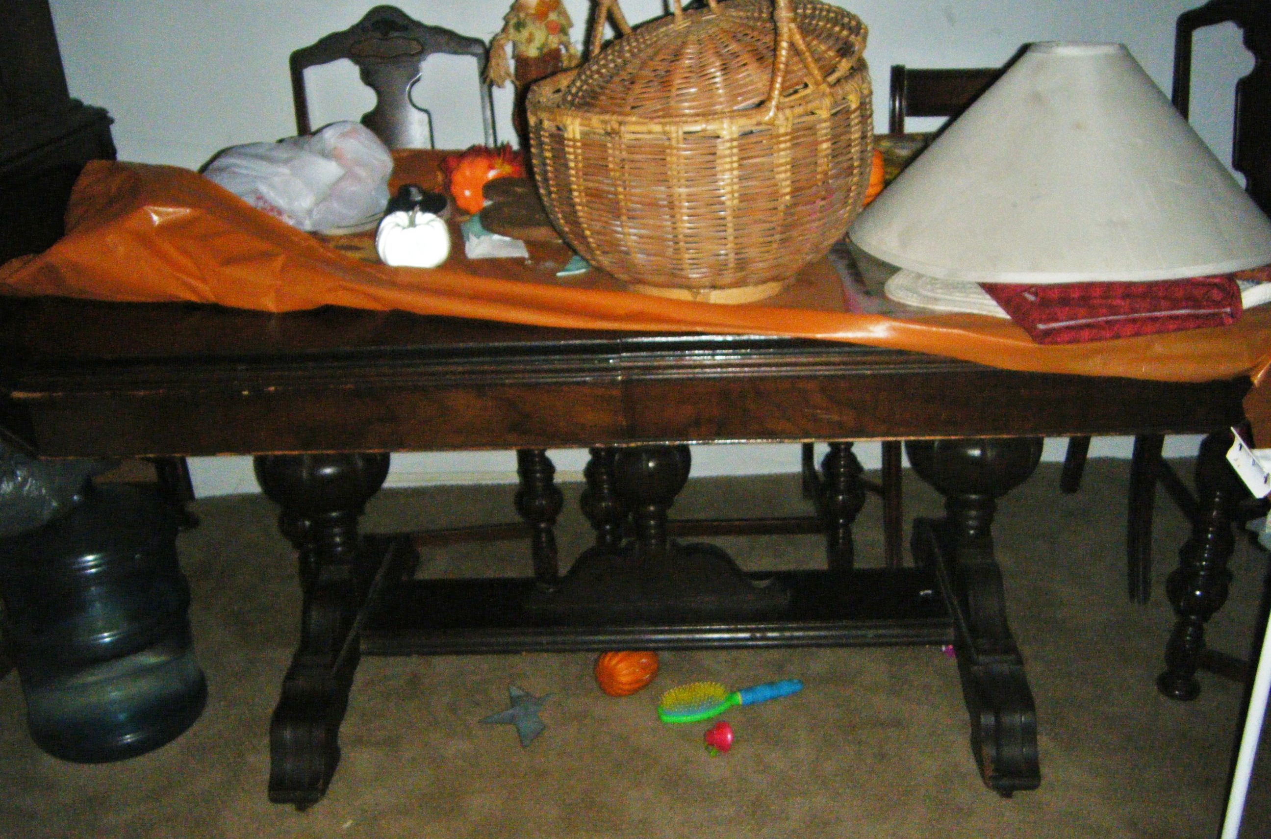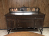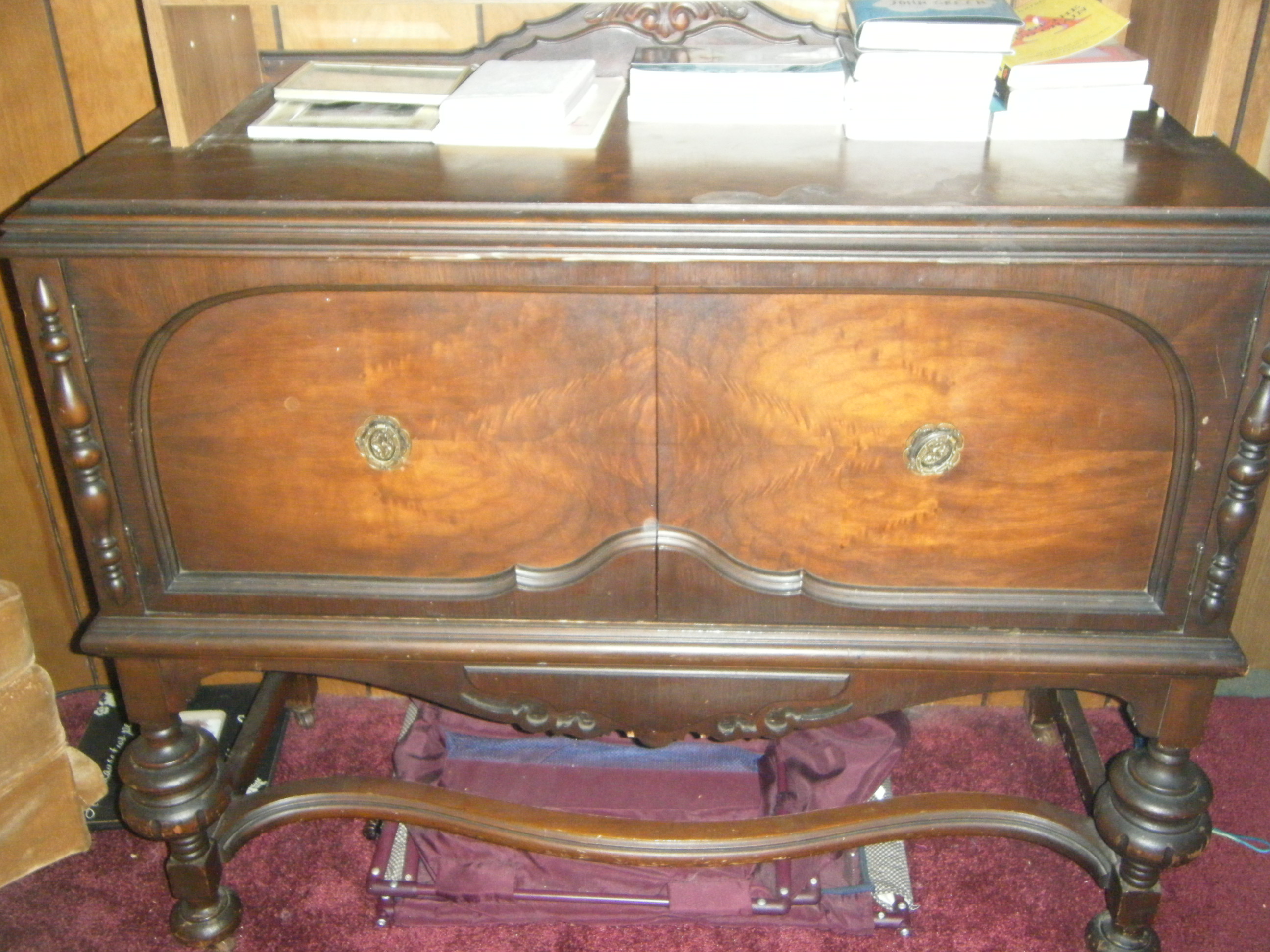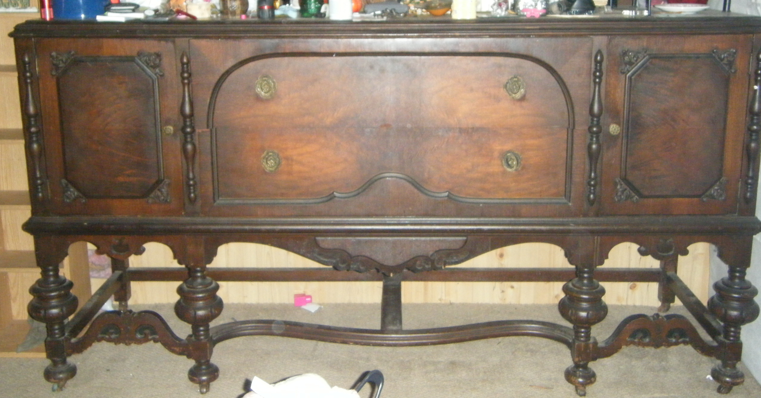 About 5 years ago, I received this antique dining room set from my grandmother. She thought that it came from an old furniture store in Western Maryland maybe around the Westernport/Lonaconing area but she wasn't positive. She also told me that she thought it was pretty old, dating back to the early 1900s or so. There is a dining table with 4 high back chairs and one small back chair, a small buffet with two doors that open outward, a large buffet with two doors, one on each end as well as two long drawers on top of each other (the top drawer has a small insert that slides across for what I would guess to be silverware), and a china cabinet with a glass door on the front and three shelves inside and on the bottom- two doors that open outward. I would like to know maybe its origins as well as how much it is worth. Its taking up a lot of space in my basement right now and I may be ready to sell it. I know absolutley NOTHING about furniture or its value. THANKS IN ADVANCE!!