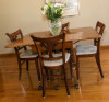 Sets like this generally date from the mid to late 1920's and are in the Colonial Revival Style, loosely based on American furniture circa 1620- 1780. Most are a mix of maple with walnut veneers, the greatest center of production being Grand rapids Michigan, then the furniture capital of the world in terms of production. Values for sets like this peaked in the 1990's, values and demand have declined a great deal since then. We now often see whole suites sell for less than $800.00 at auction.