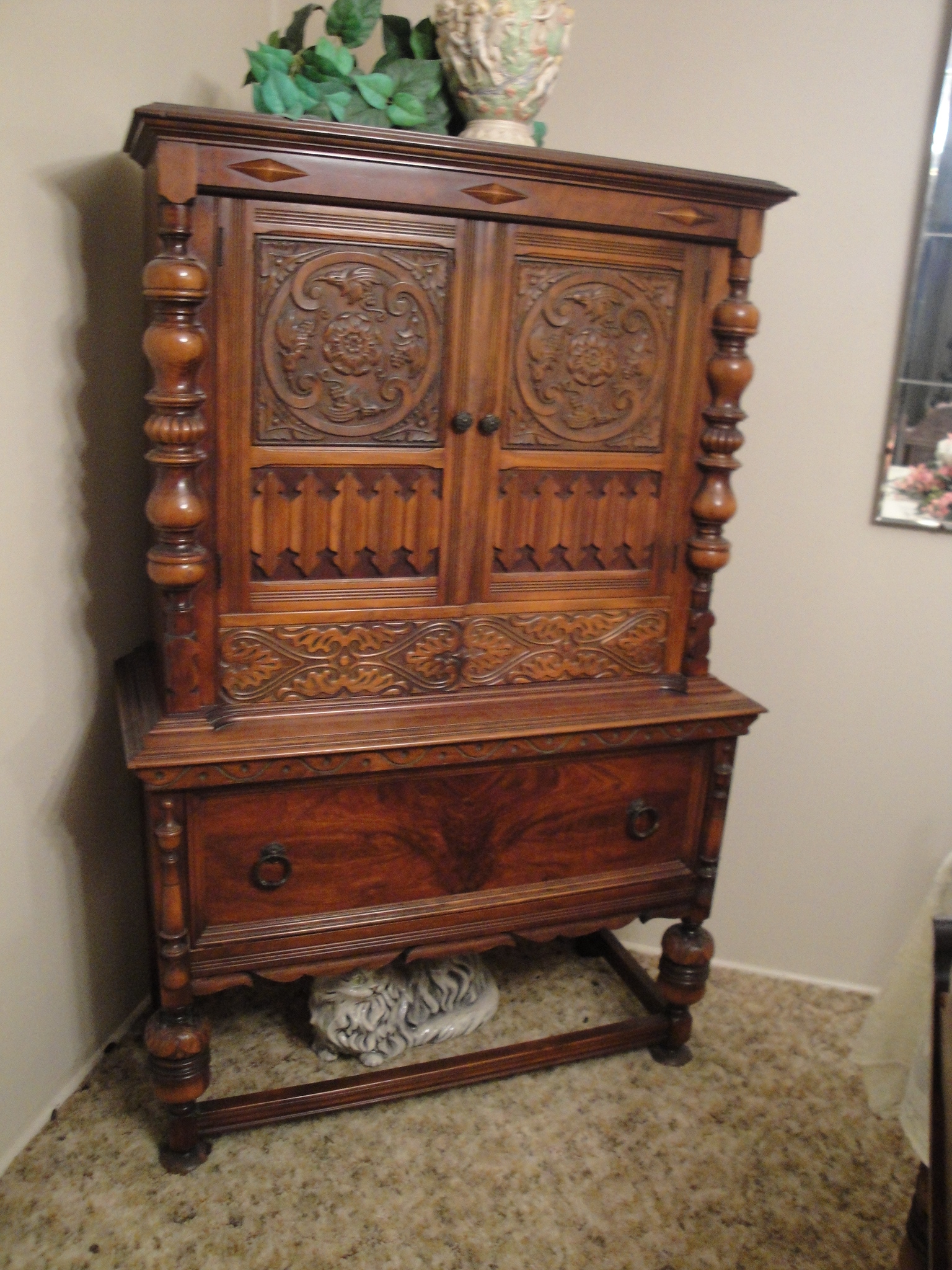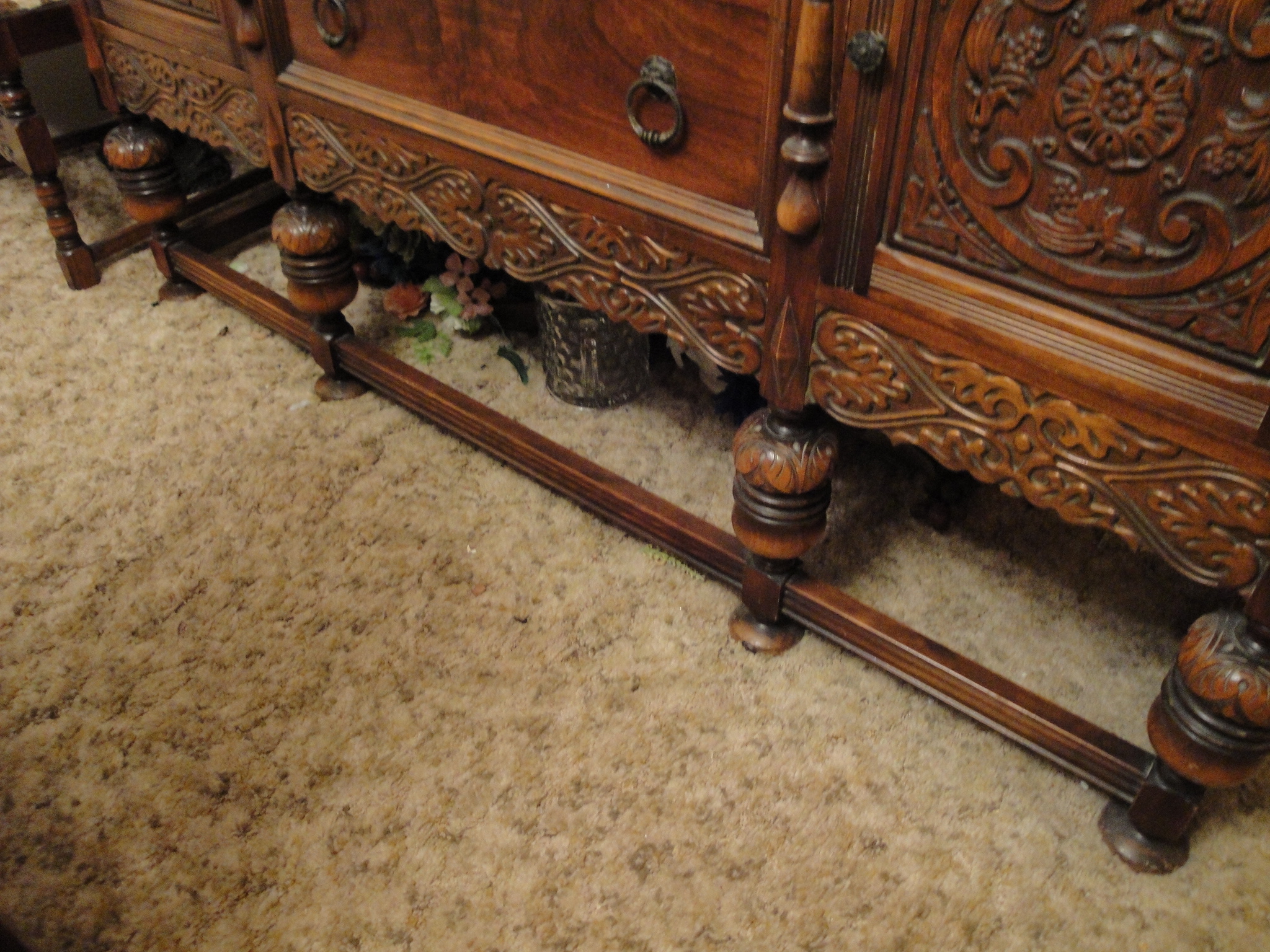 Jacobean Revival furniture has been in continuous production in both England and Europe since the last quarter of the19th Century ( Circa 1875). Values for these pieces depends more on their quality of construction and attention to detailthan their vintage, many are handmade high quality pieces, others are mass produced with a mix of hand and machinecarving. Yours is a mid range quality example, constructed of quarter sawn oak, and likely made no earlier than the 1920's. We see these go at auction for $700- $1000.00