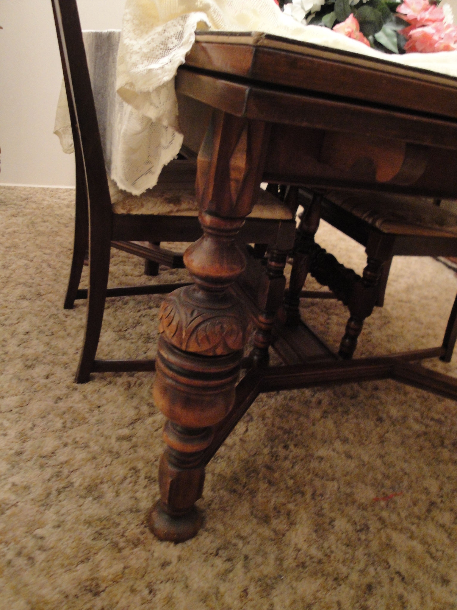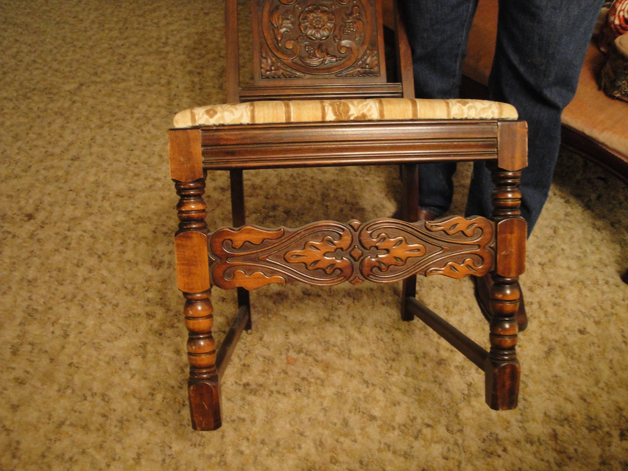 Based on your images of this set is in a style often referred to as "Jacobean Revival". The style getting it's name from the fact it was loosely designed toresemble furniture made during the reign of James the 1st ( 1603-24), but uses design elements found on furniture madeuntil the late 17th Century under the reigns of Charles I and Charles II as well.