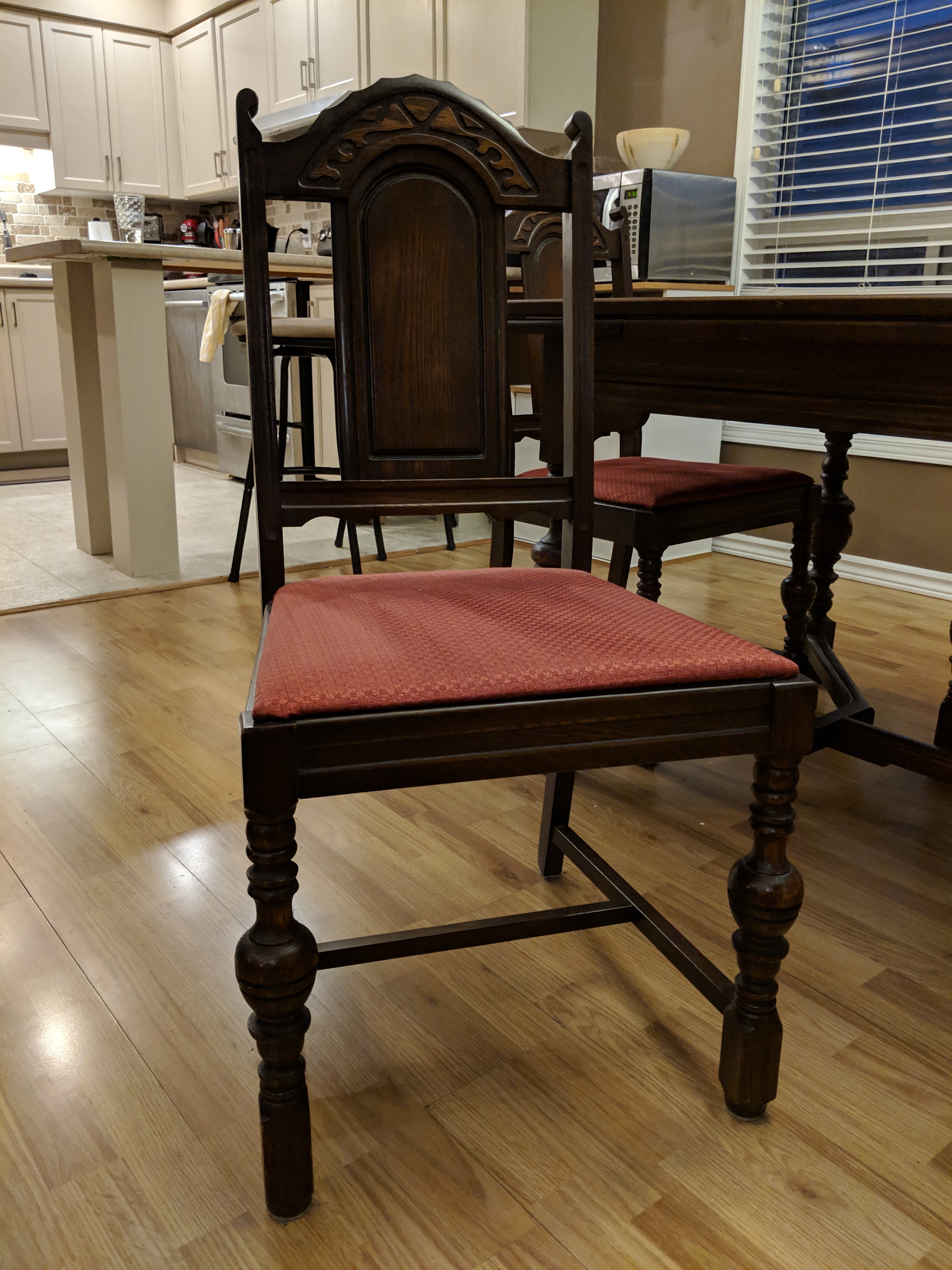 Chairs have been reupholstered twice (that we are aware of).