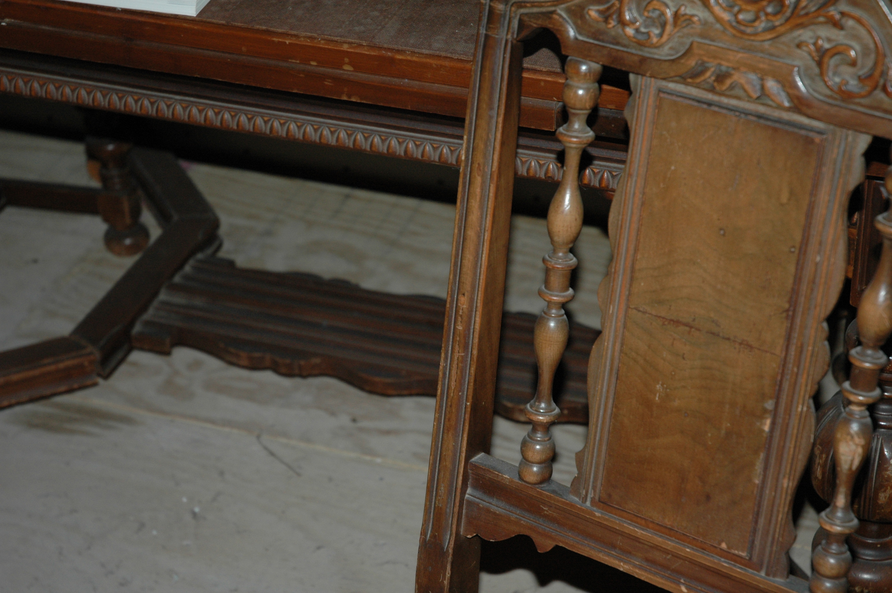 My mother had both for about 50 years and we are trying to part with them. There are some water marks and light scratches on the surface of both. Style looks to be similar to Jacobean, but we aren't really sure.