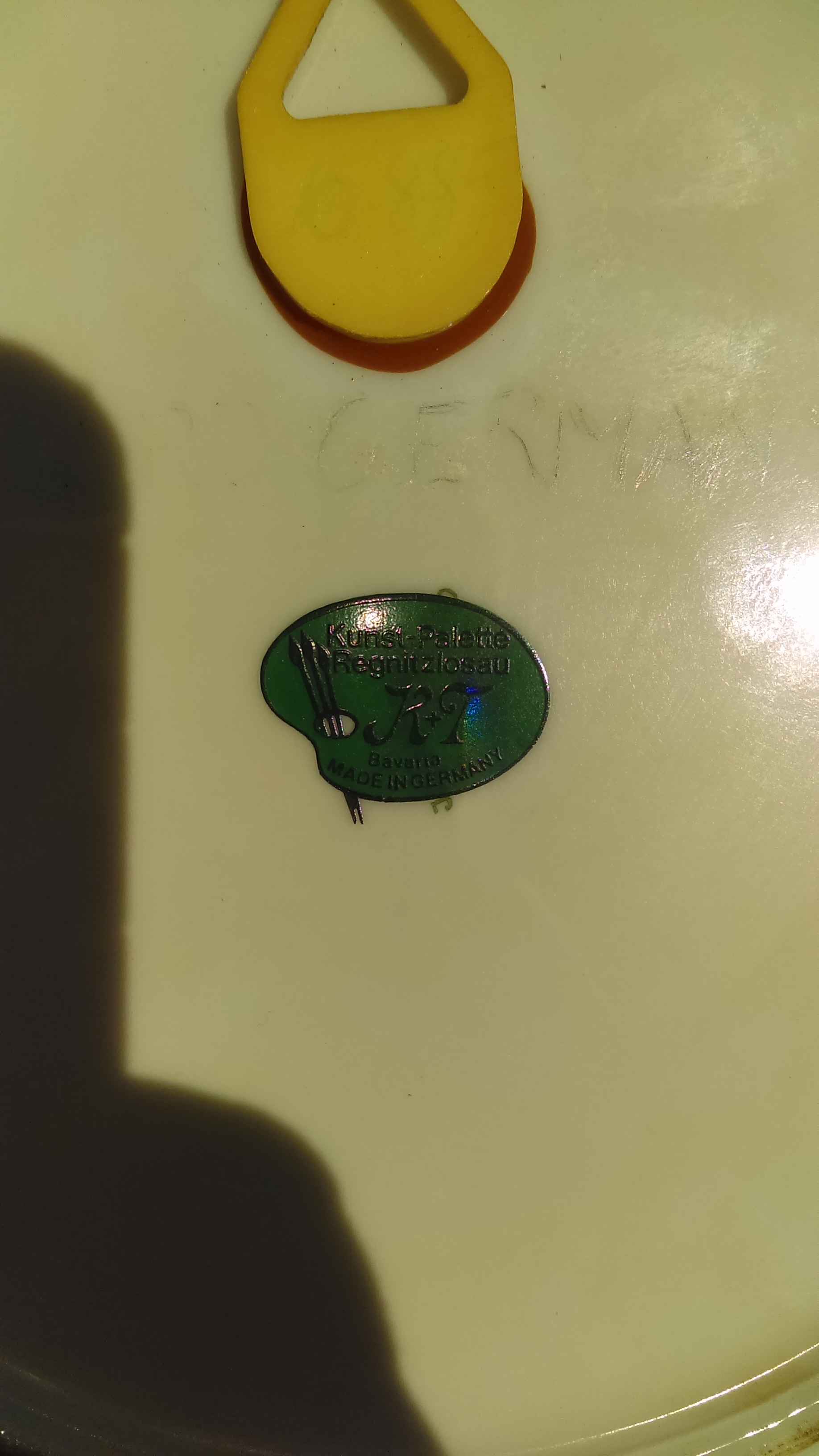 This dish has a purple be tint and gold around the edges. It has a painted picture of Der Rhein